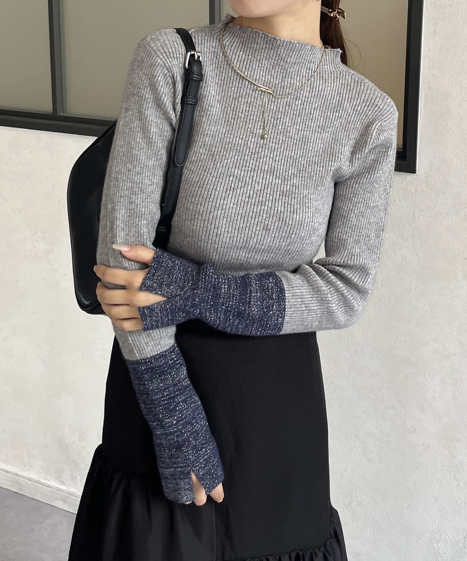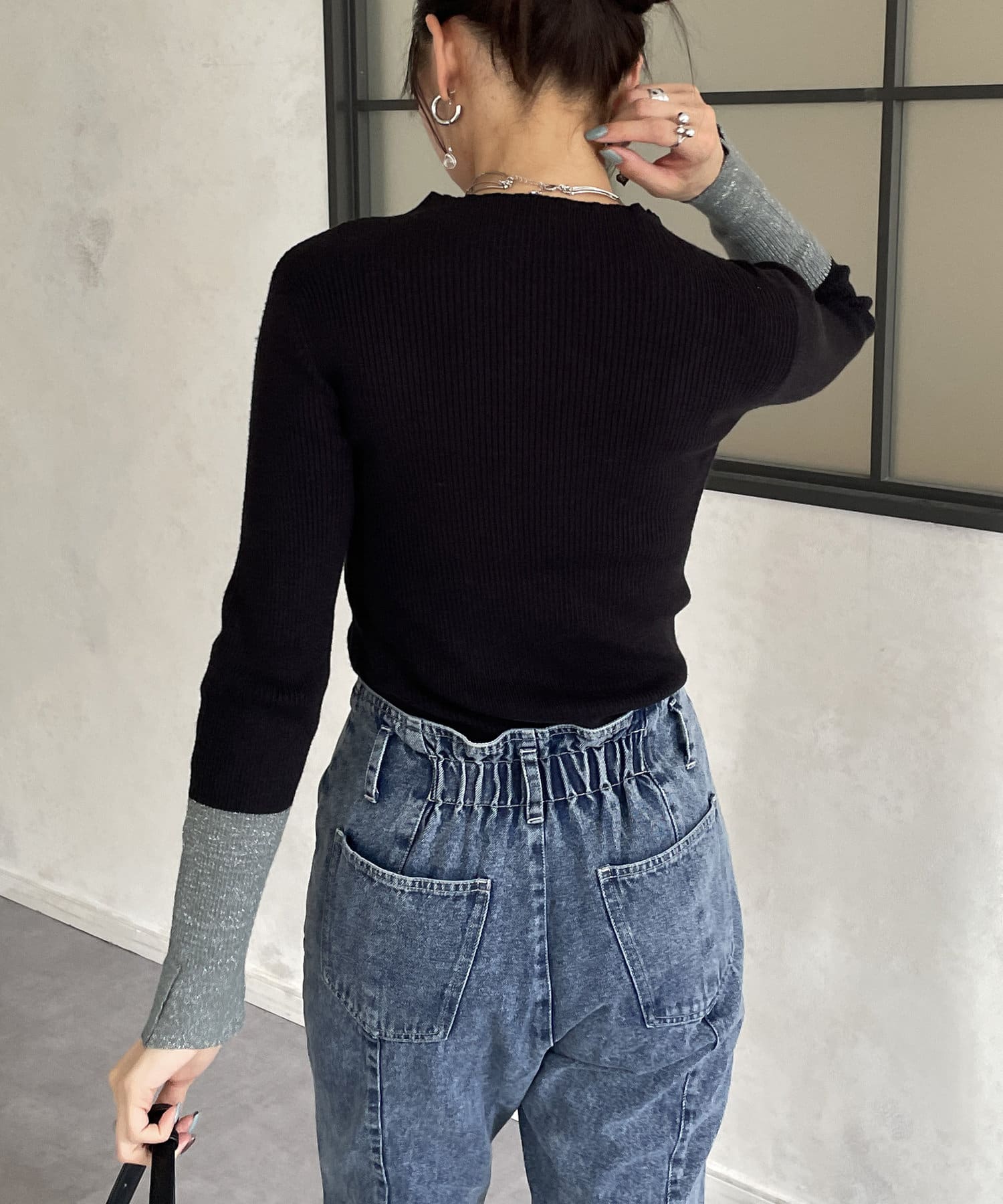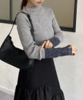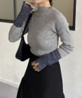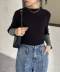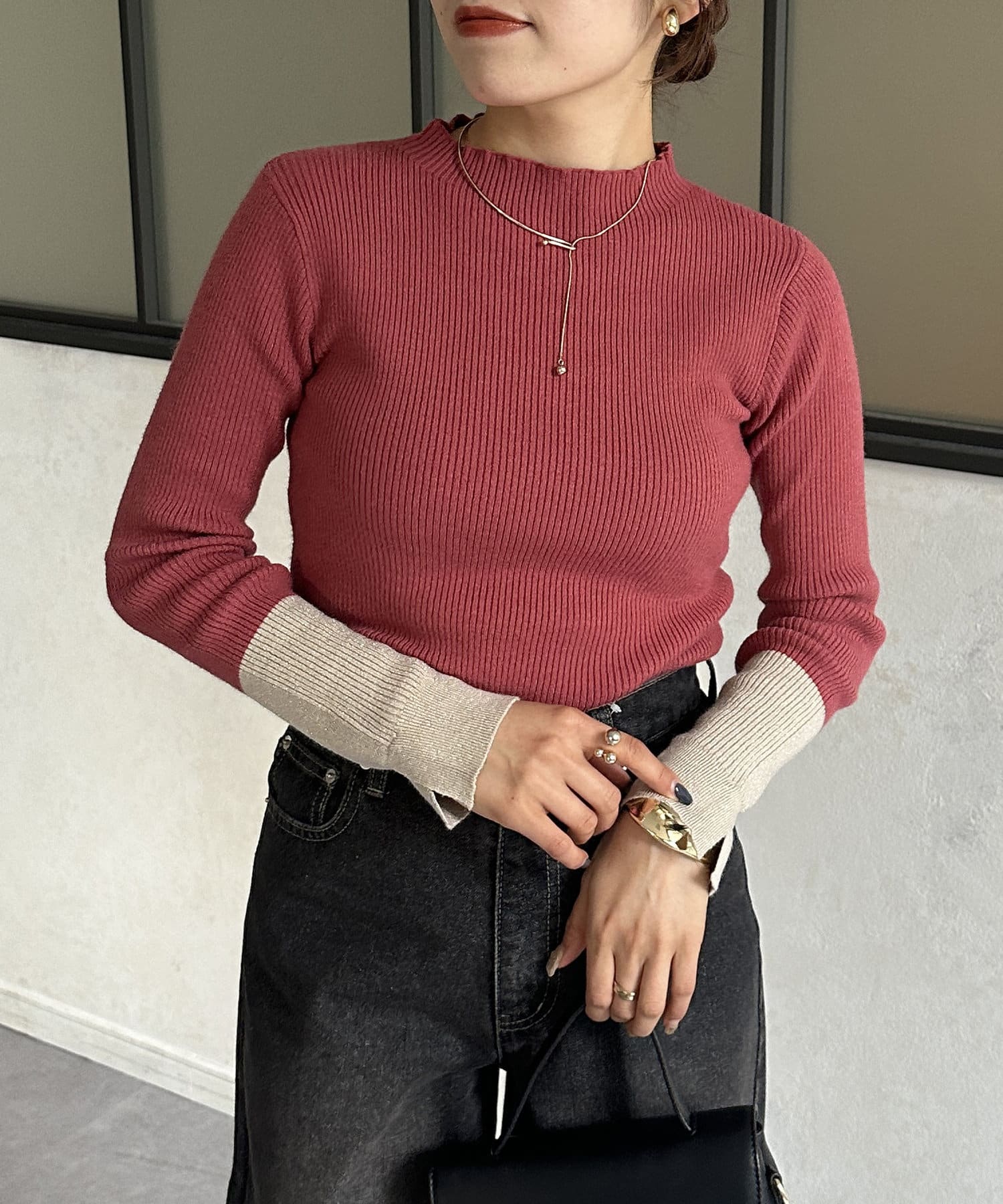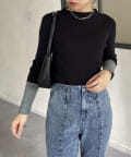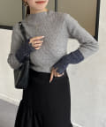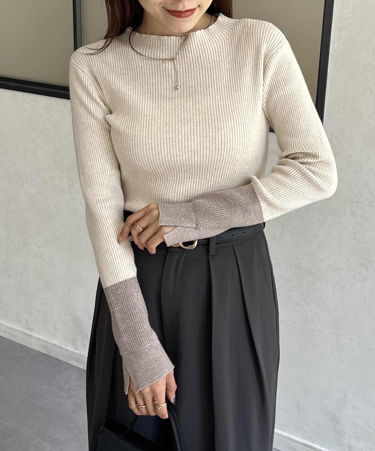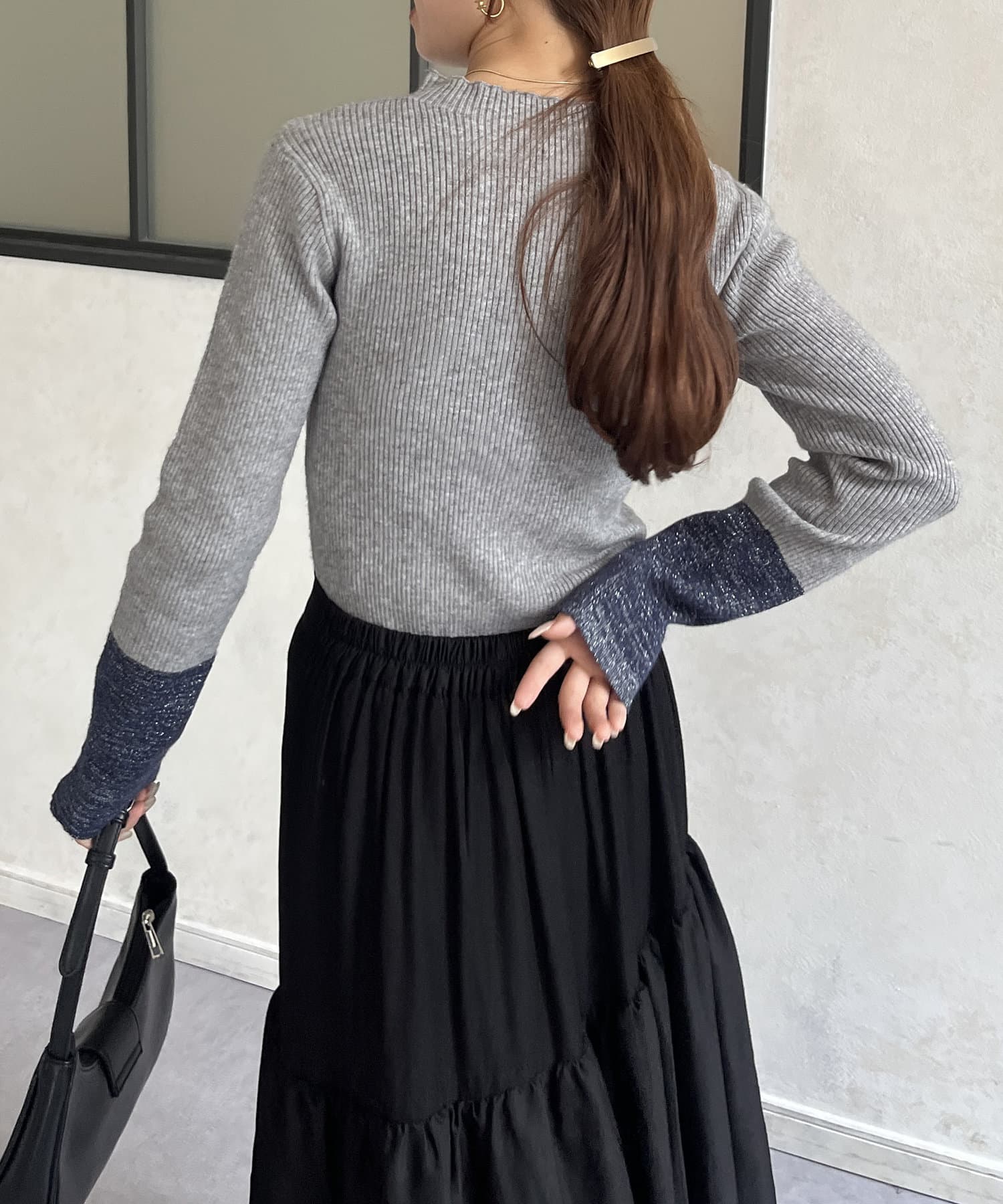袖先ラメ配色リブニット