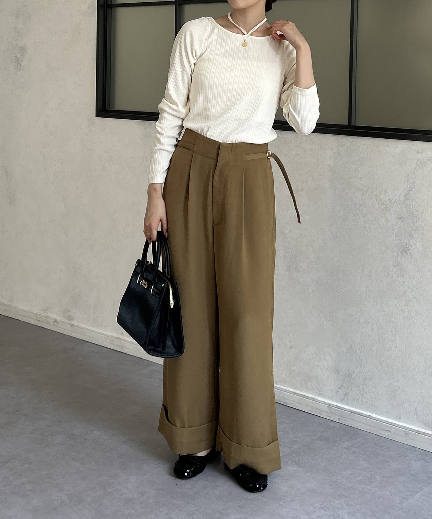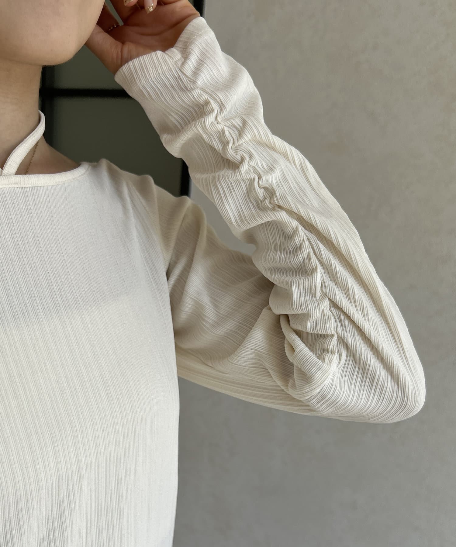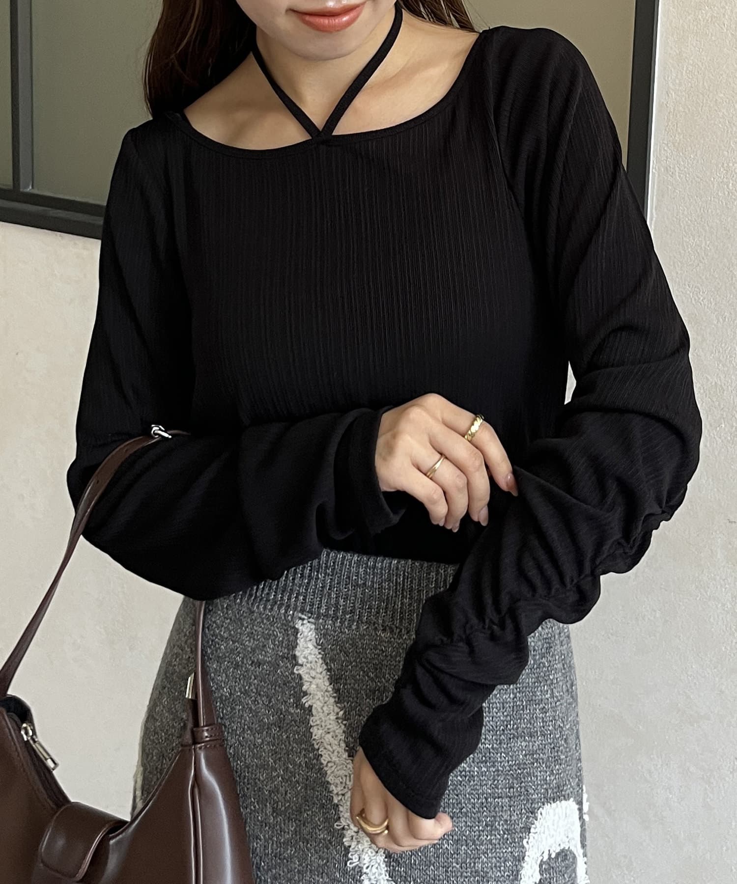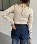 袖ギャザーホルターリボンプルオーバー