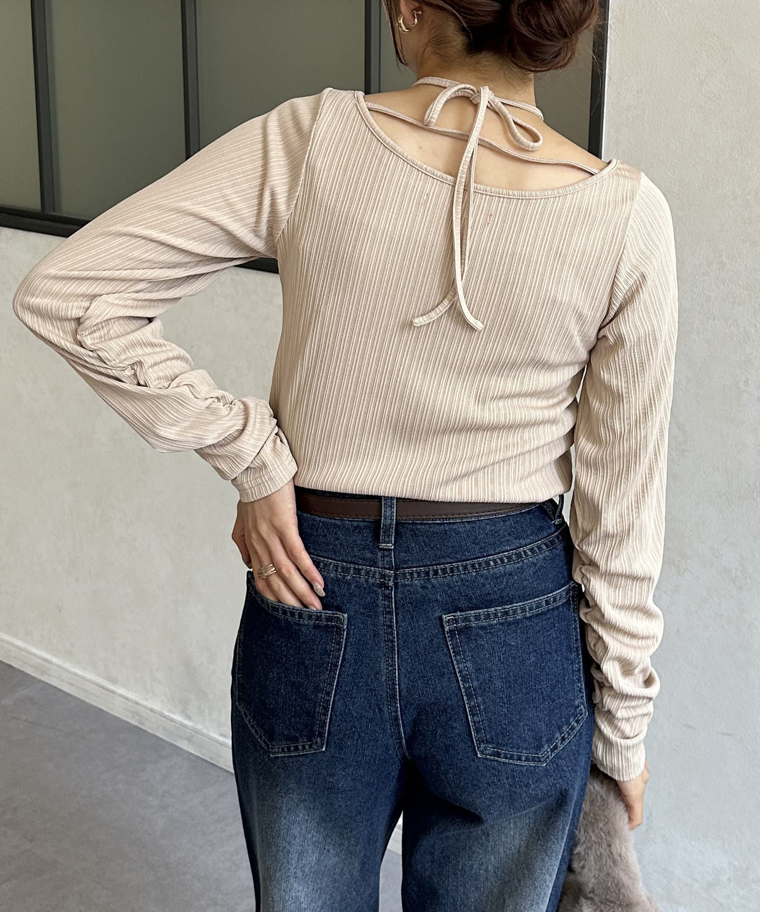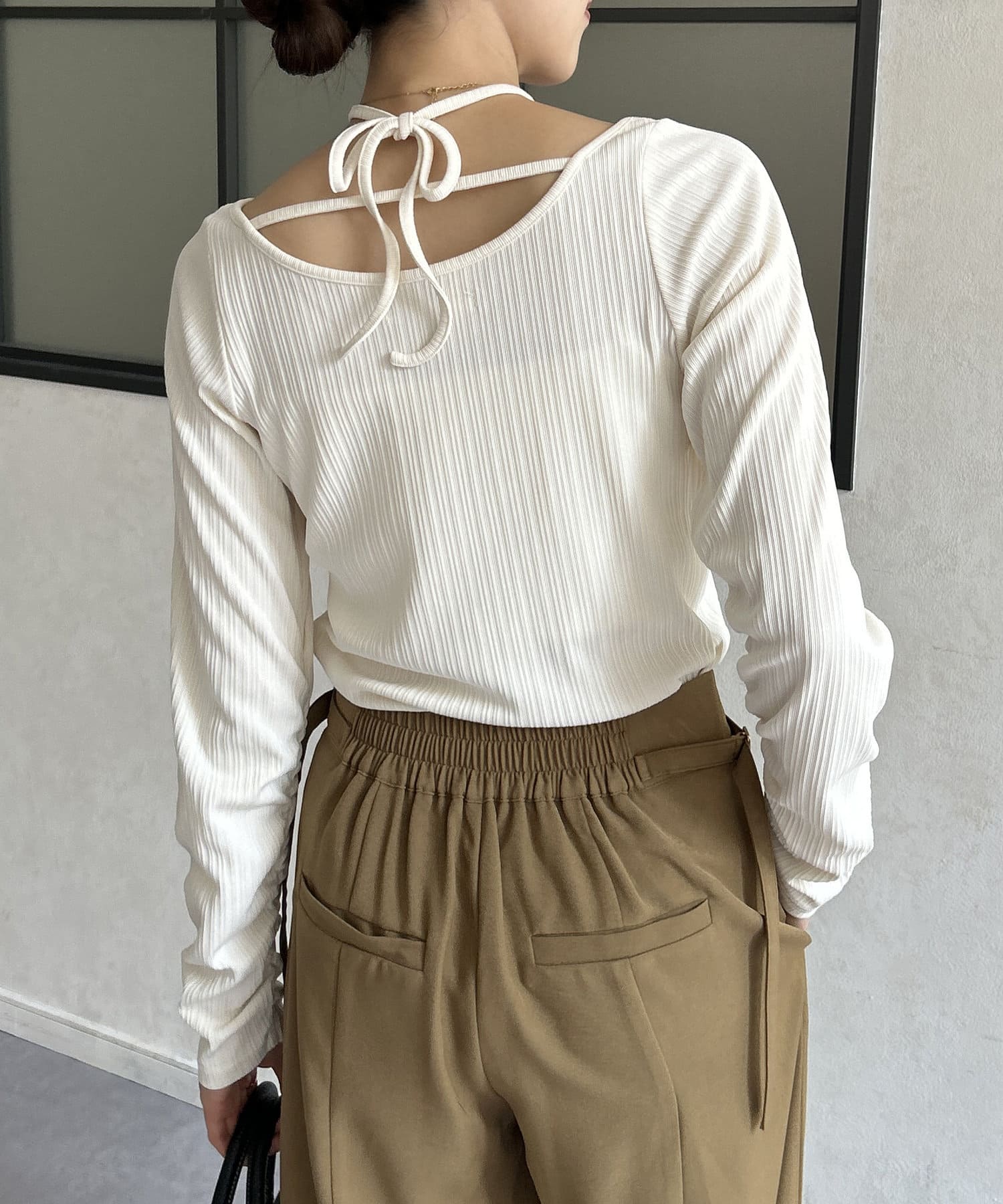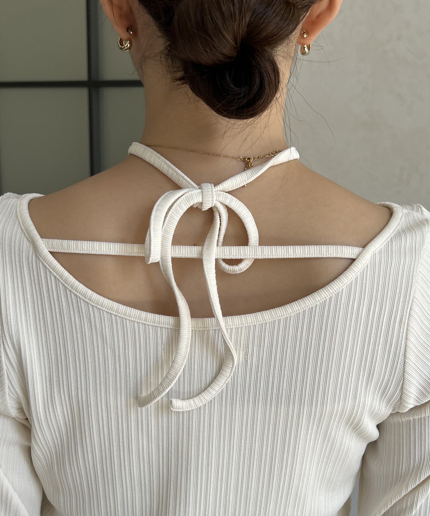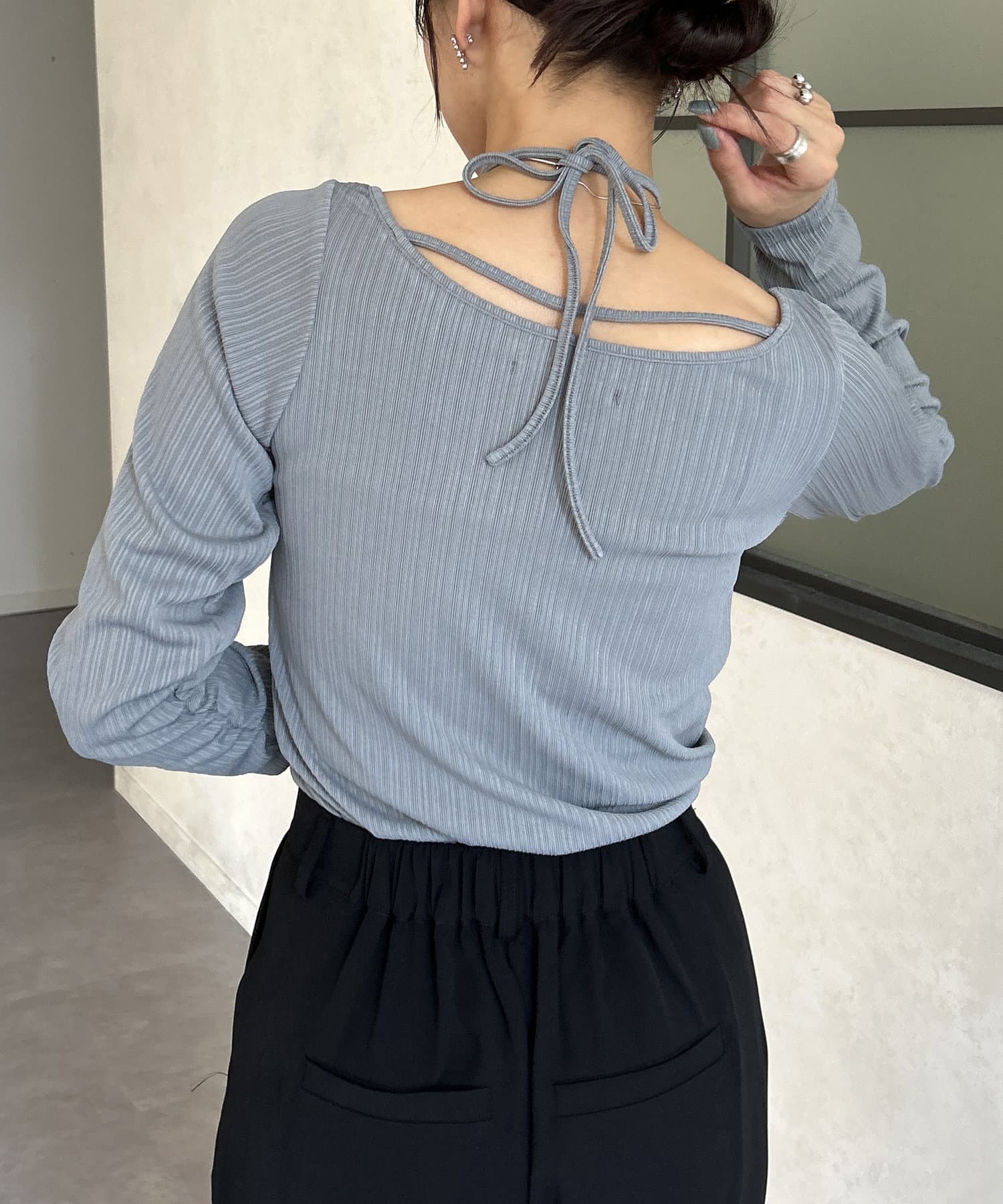 ・後ろのリボンが可愛いトップスなので、髪の毛はアップにすると