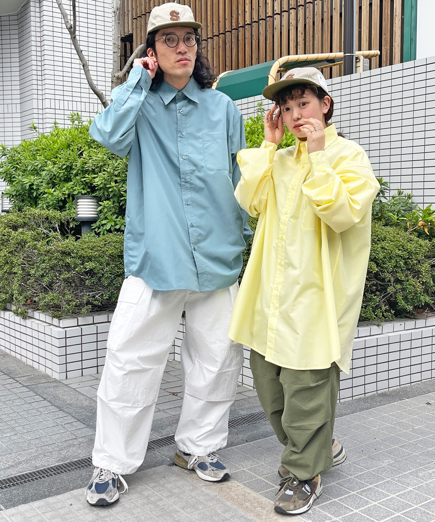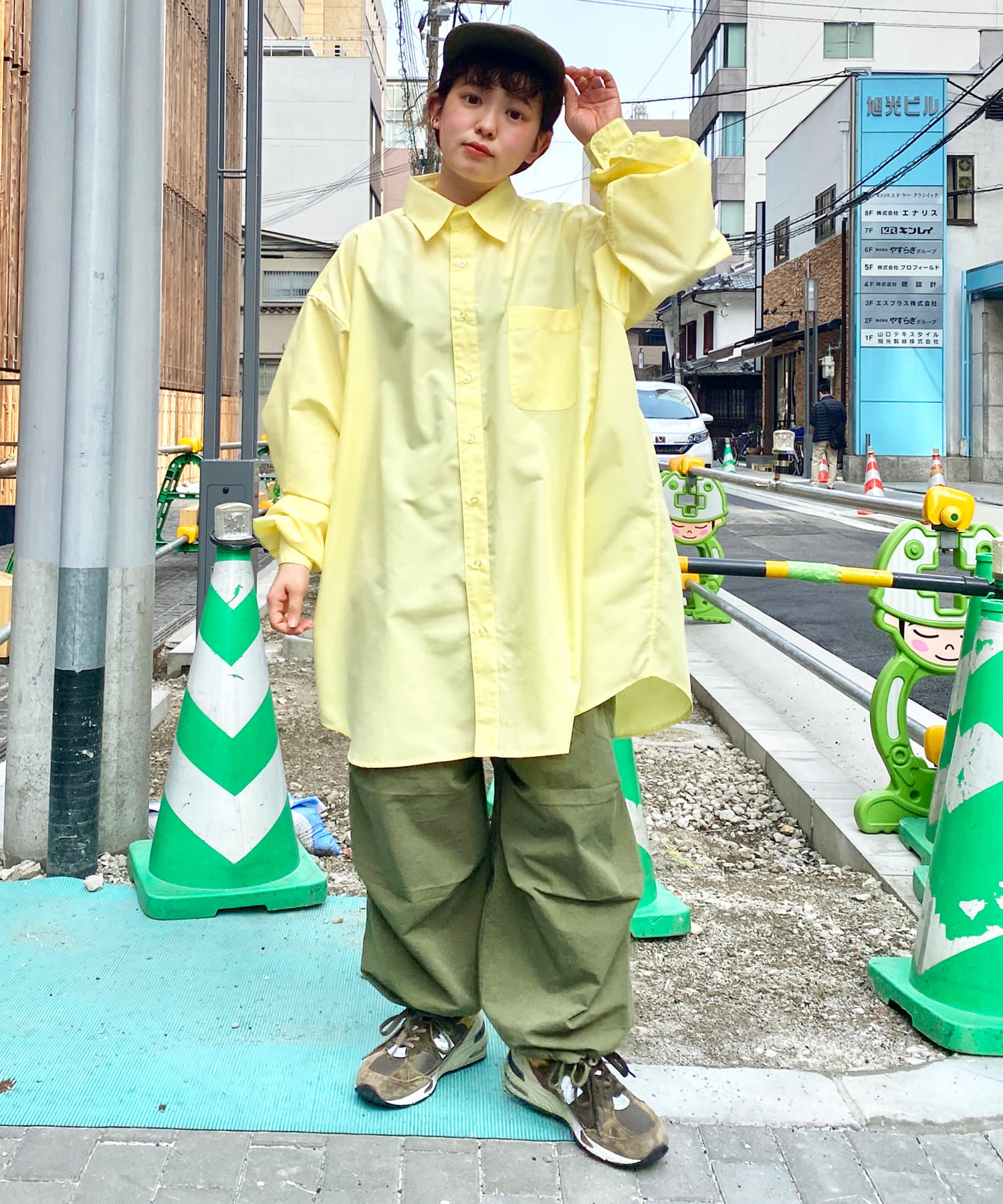 ビッグサイズのカラーシャツがトレンド感たっぷり。