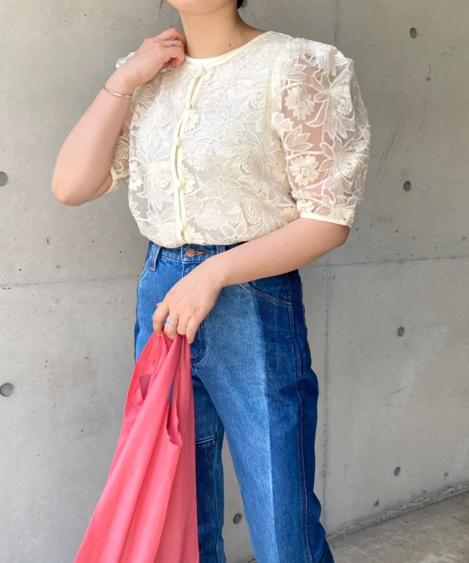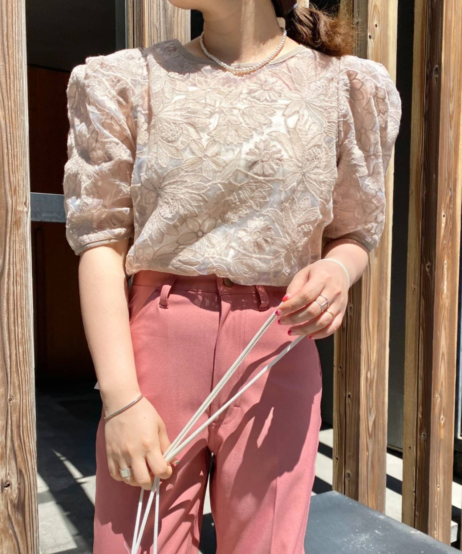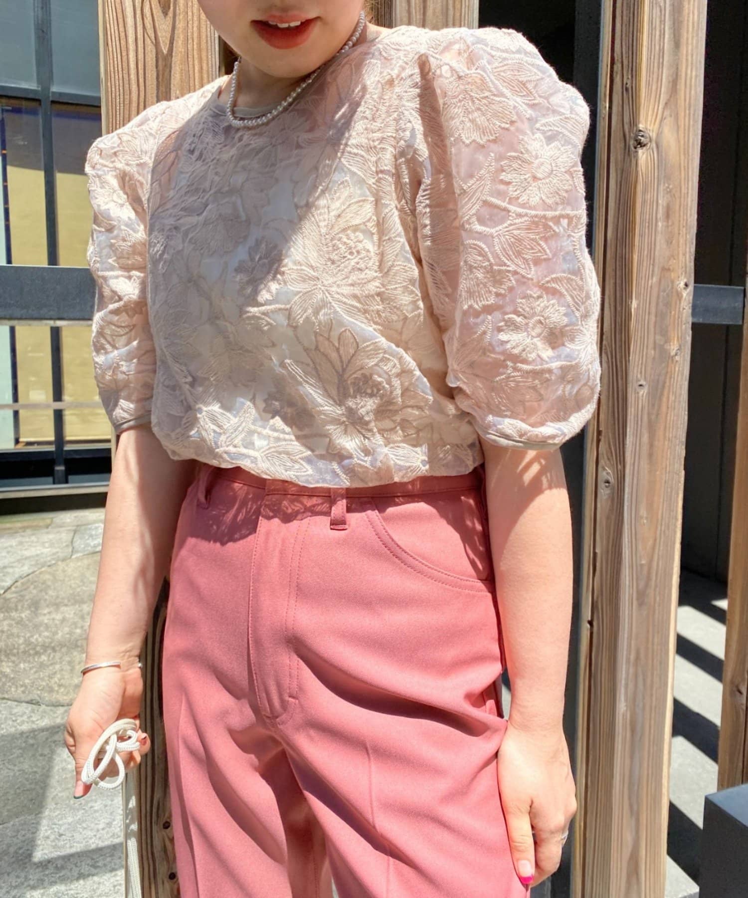 花柄オーガンジー2WAYパワショルブラウス