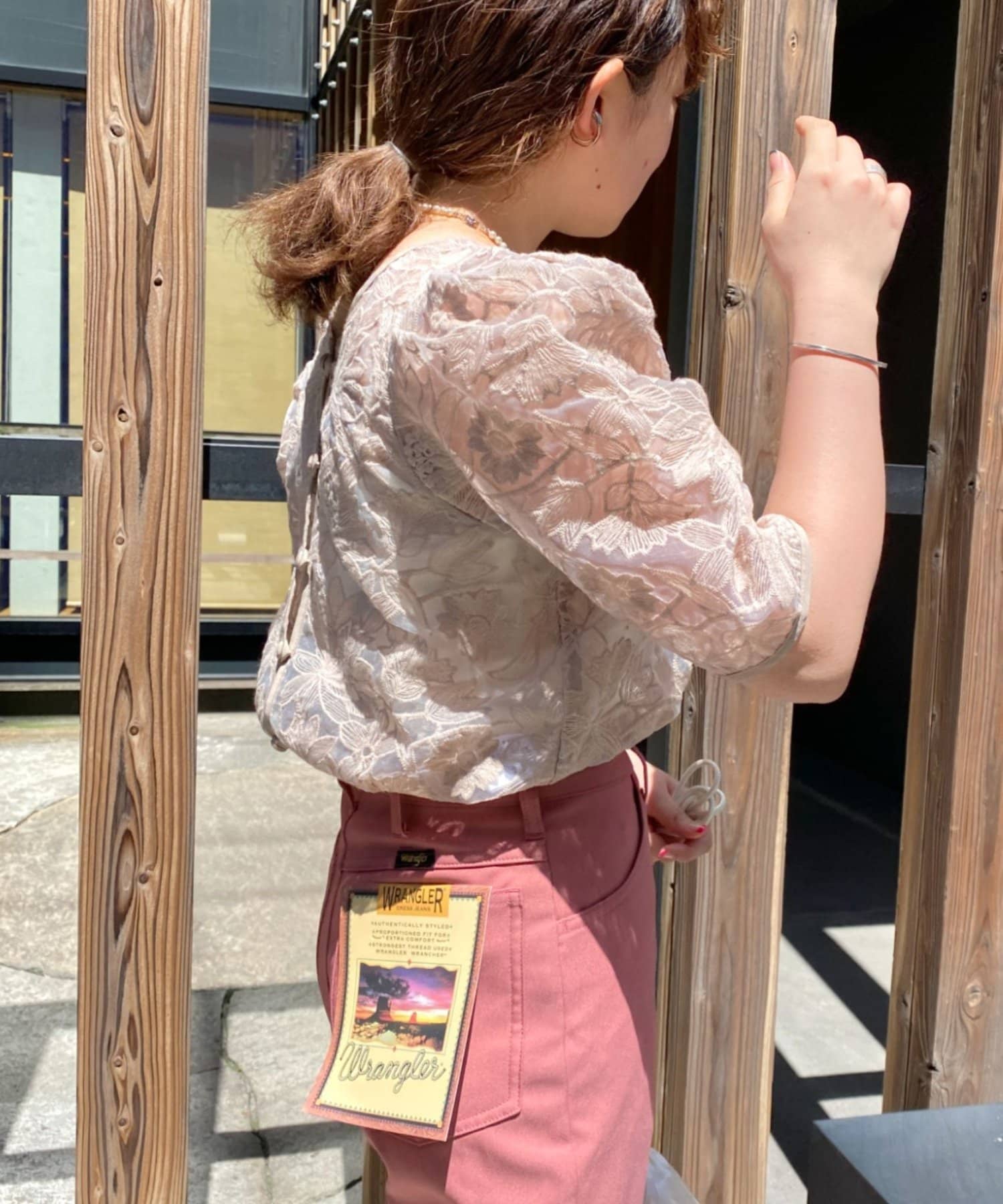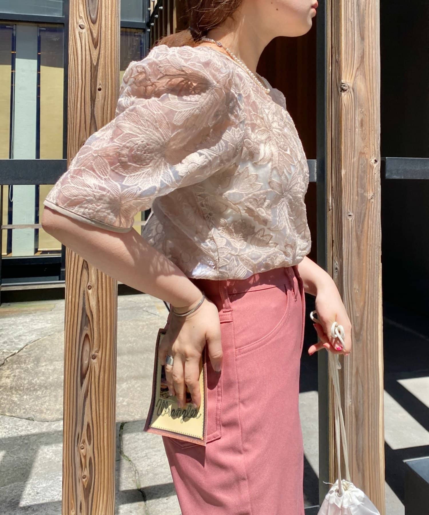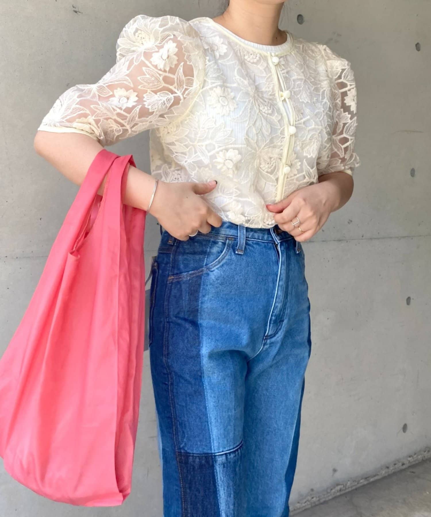 花柄オーガンジー2WAYパワショルブラウス