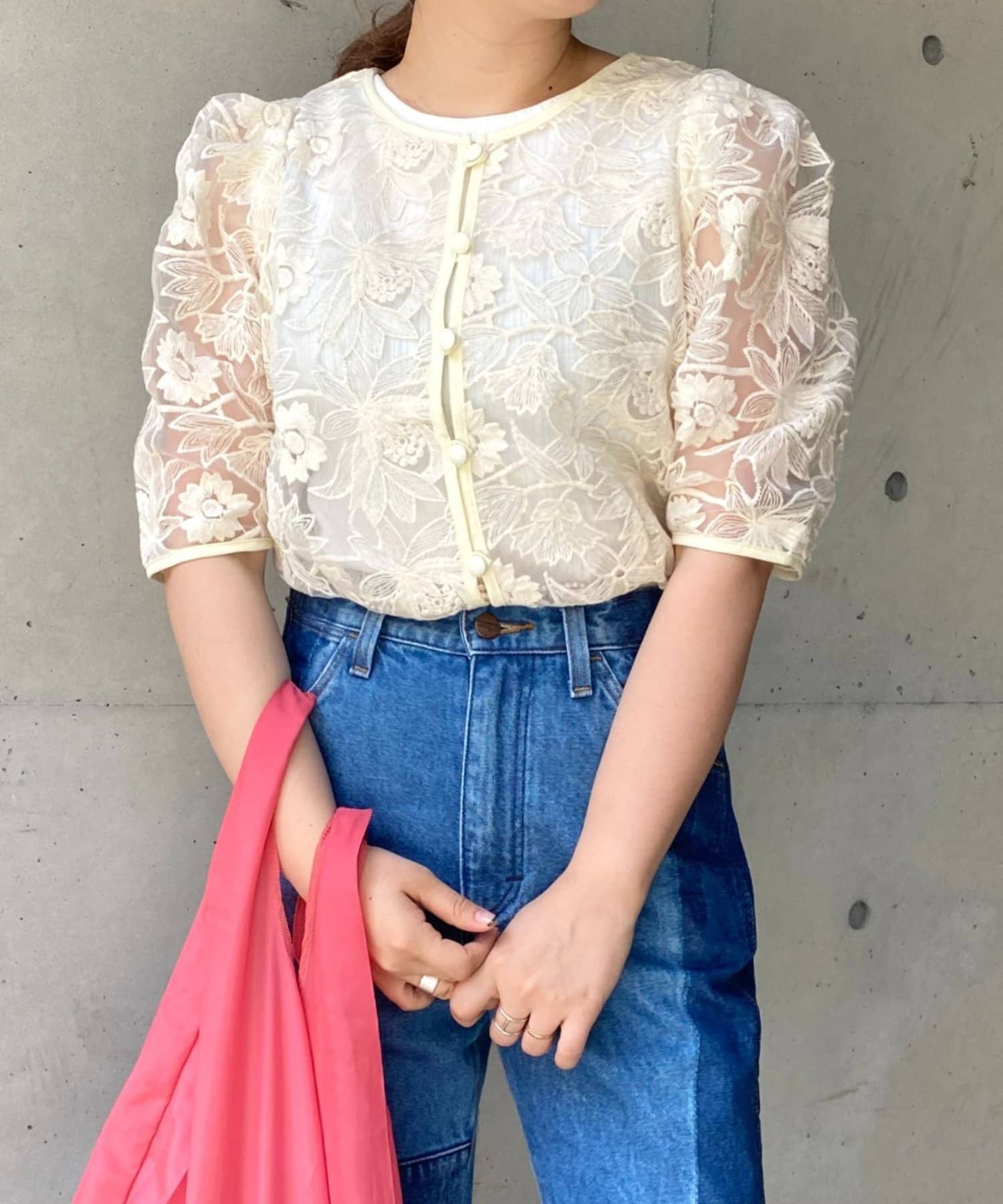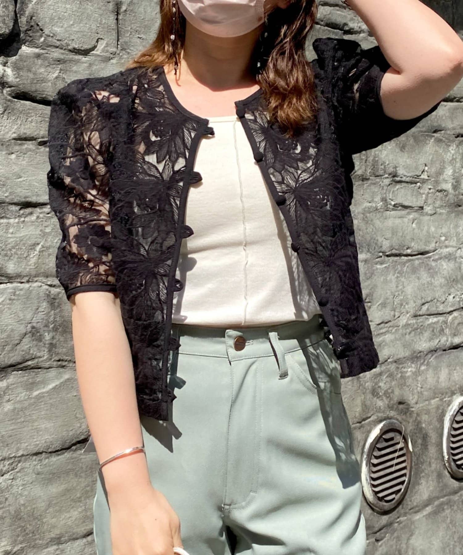 今季もマストで手に入れたいシースルートップス!前後2WAY、ボレロ風にして3パターンで着用可能な優れもの。着回し力のありすぎるシアー系トップスとなっております。甘すぎない花柄レースが特徴的。