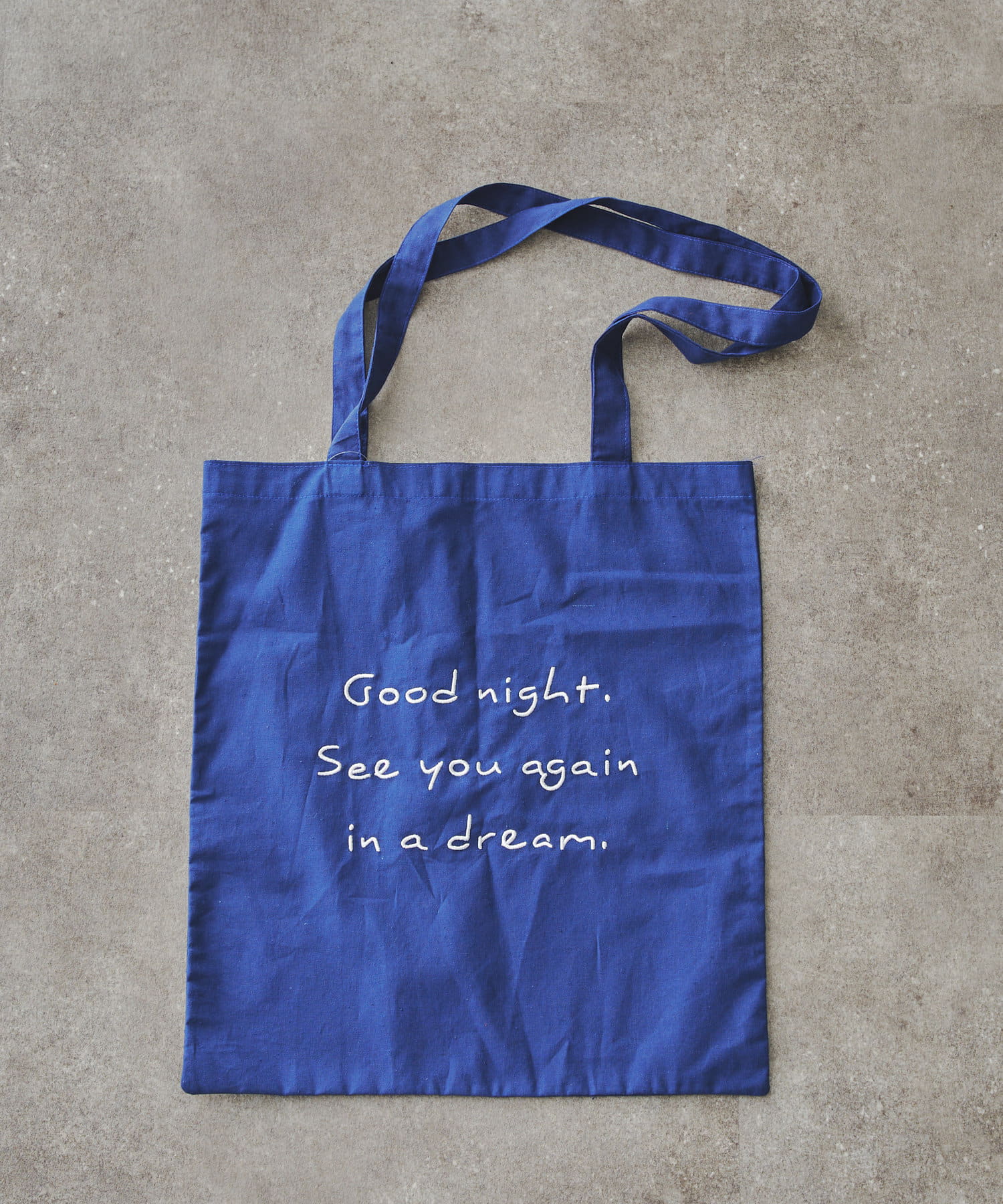 持ち手が長く、肩掛けしやすい綿素材のトートバッグです。