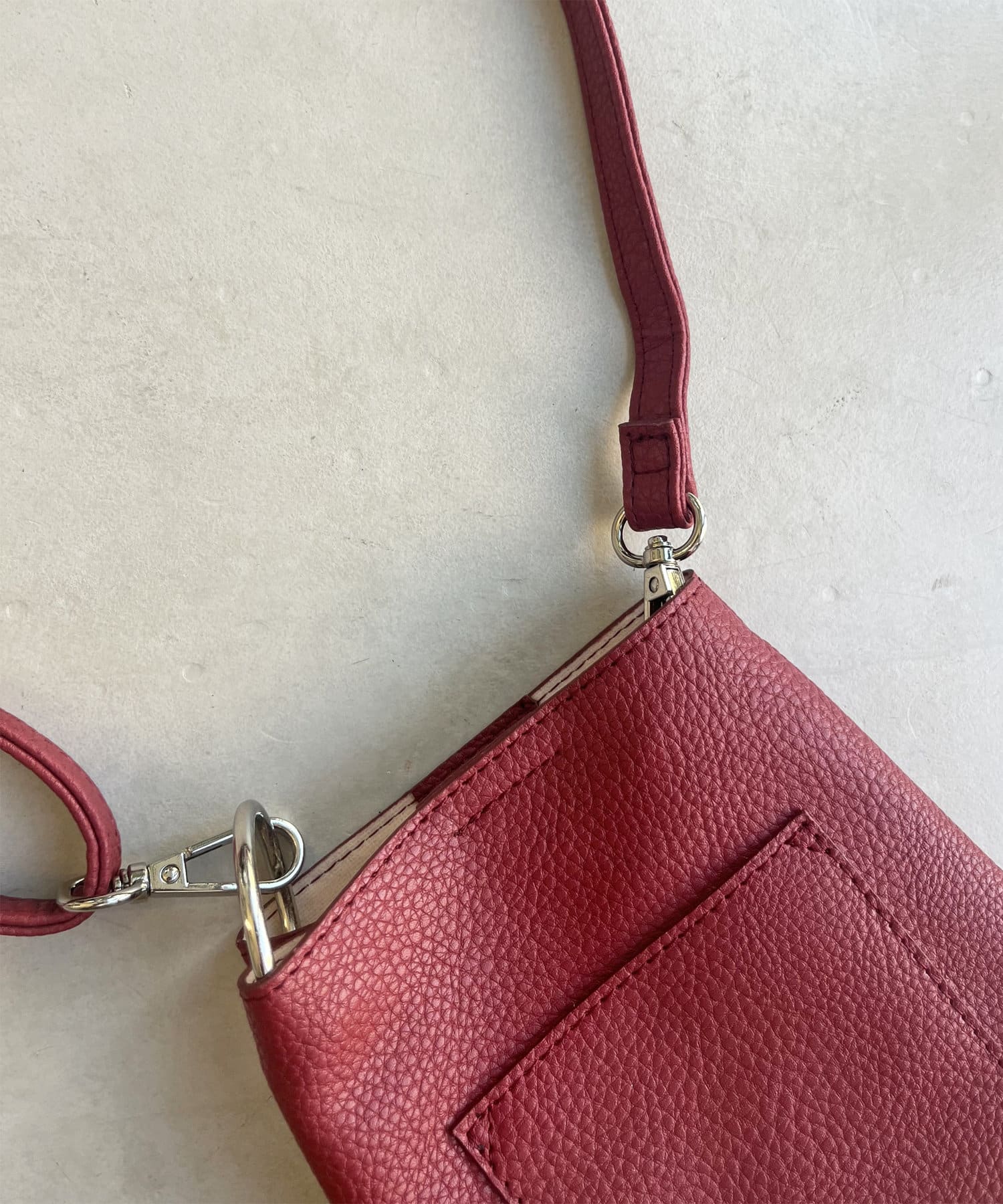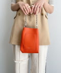 ボールチェーン・コンパクトなシルエット・レザーの風合いが相まって、高見えを叶えてくれます。発色のいいカラーはコーデのポイントになること、間違いなし!このサイズだと、普段色物を使わない方でも合わせやすいですよ♪