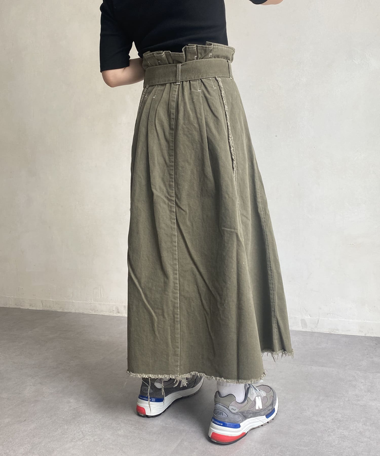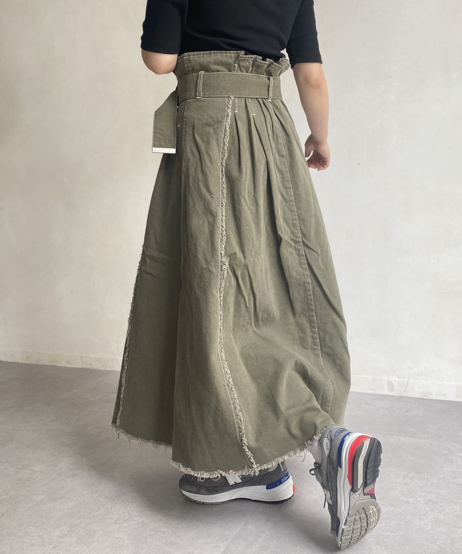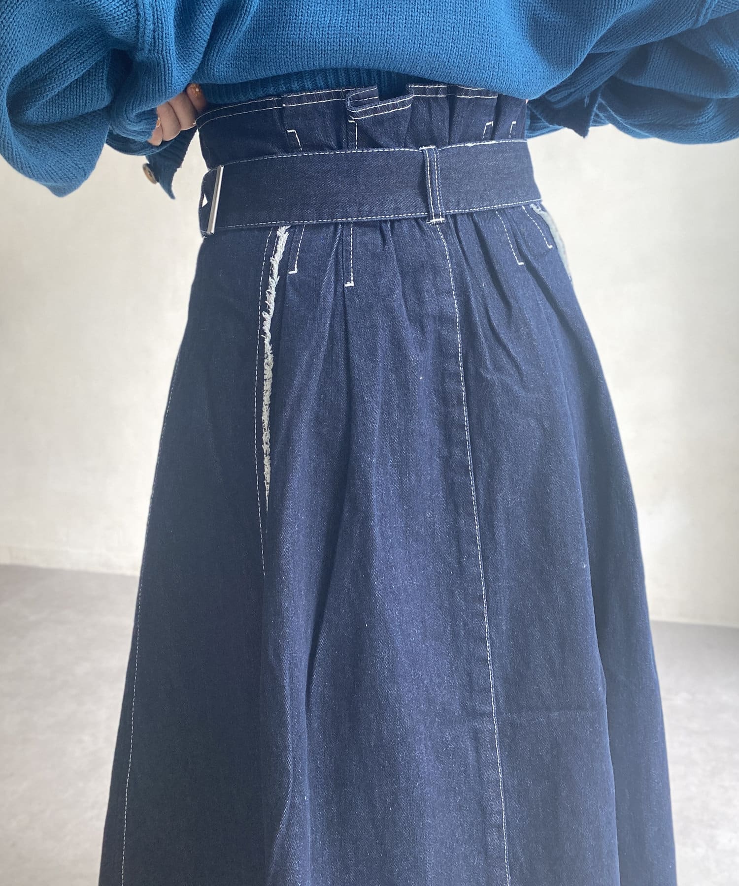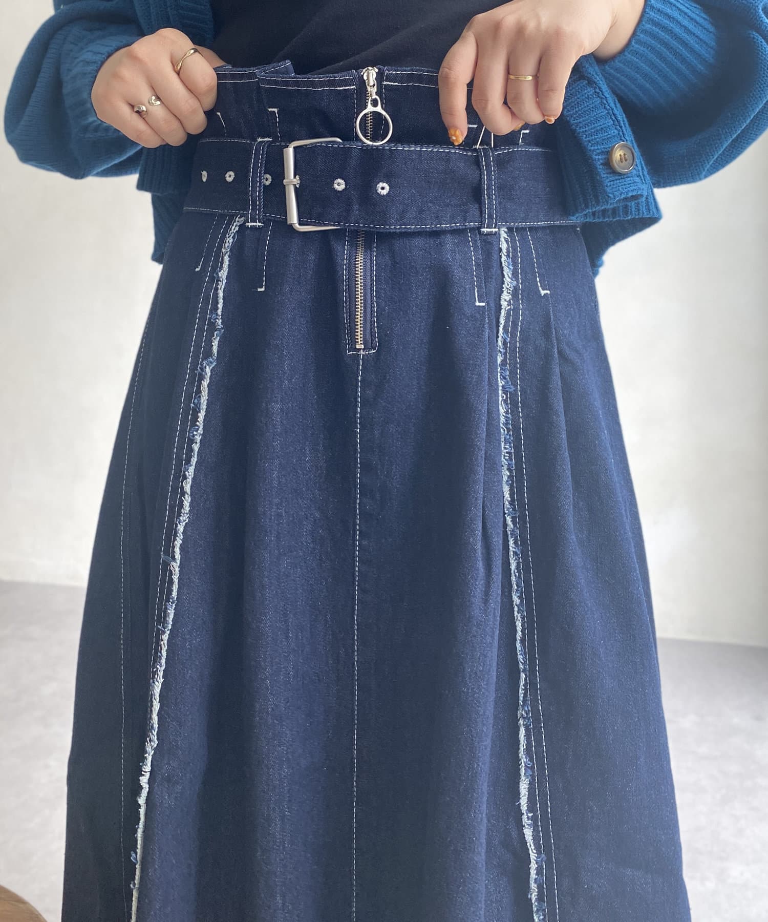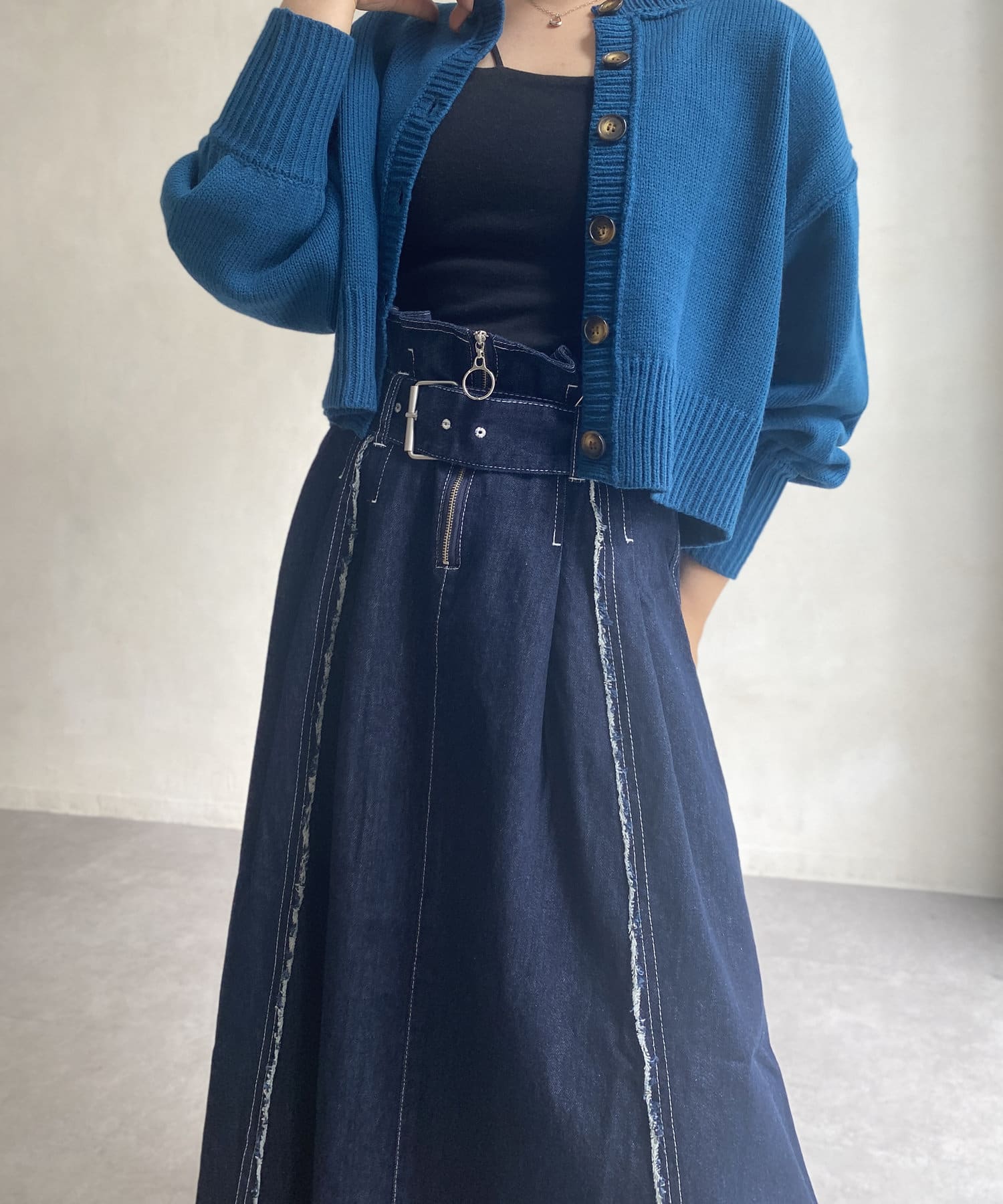 フリンジステッチがアクセントになり、縦ラインを強調しスタイルアップが叶います。