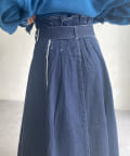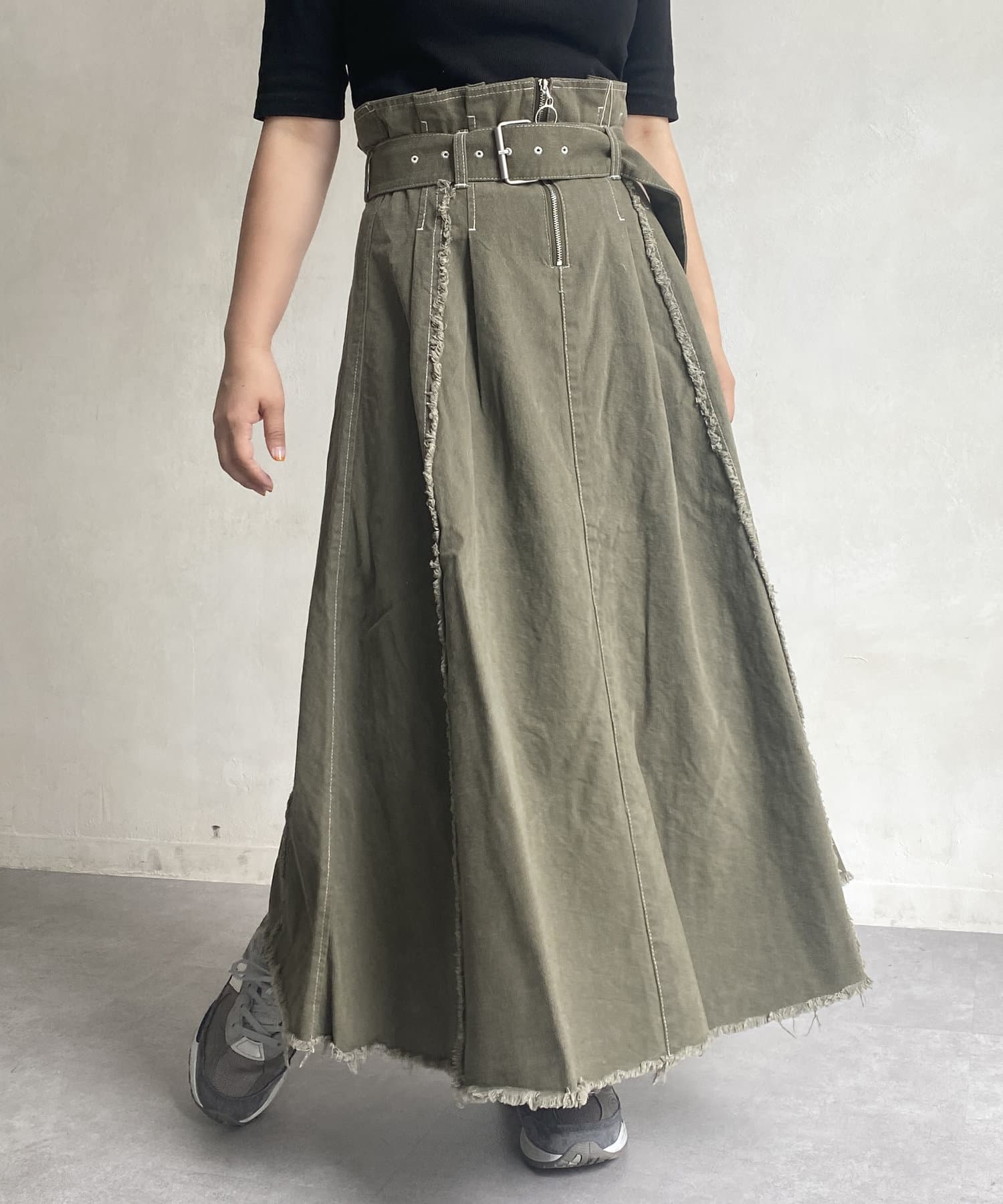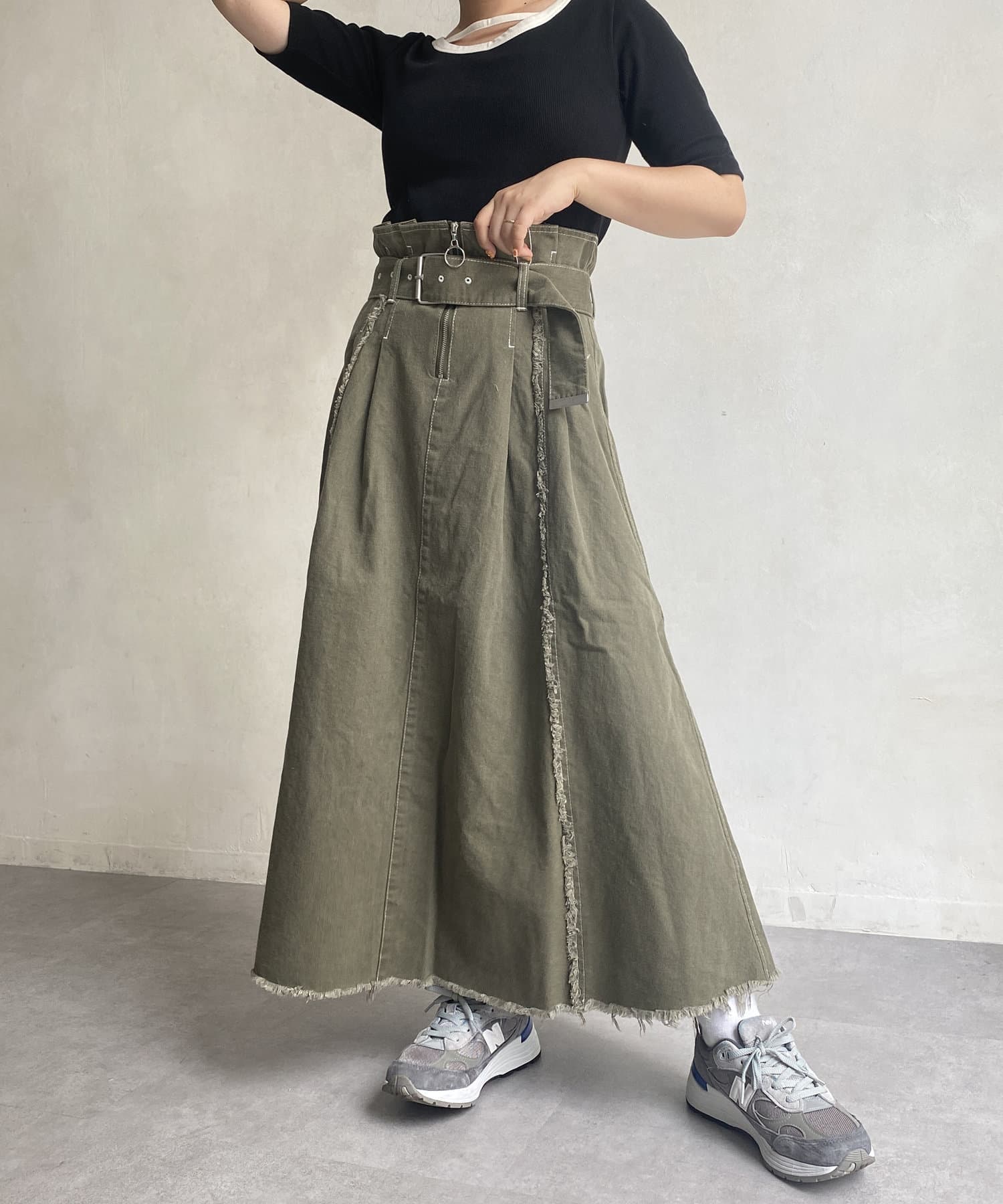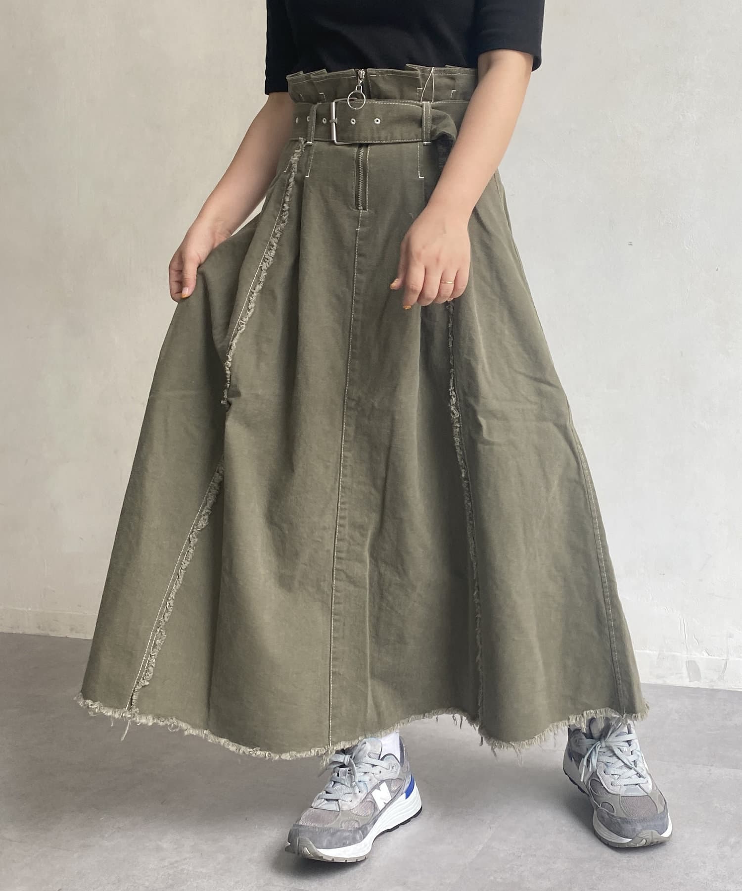 ふわりと広がるフレアシルエットはウエストベルトでメリハリを。