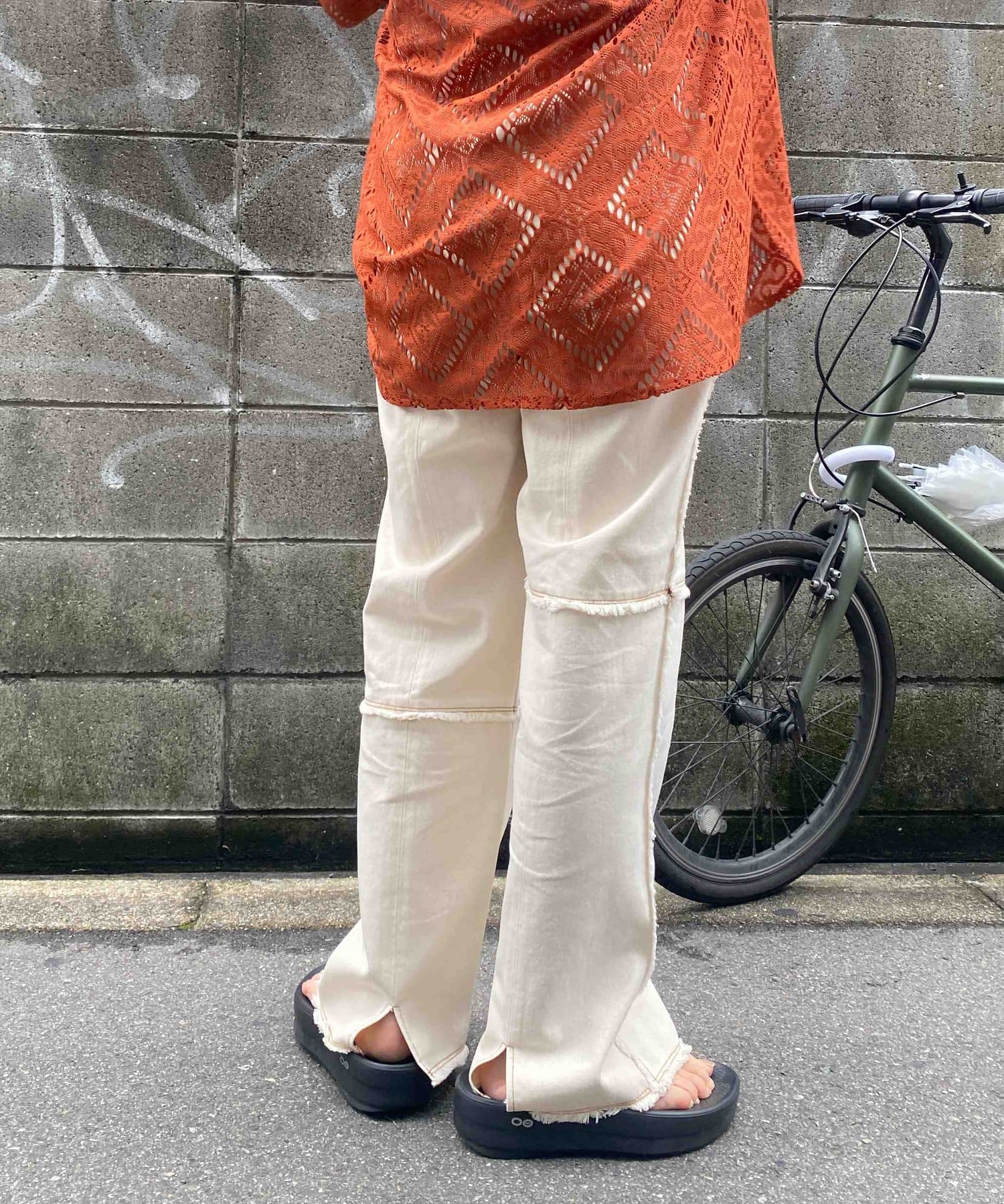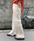 いい意味で見た目とのギャップがあるパンツ。柔らかくてストレッチがしっかり効いているので、ものすごーく履き心地がよかったです◎薄手なので、これから気温が上がっても気兼ねなく履けそうだなと感じました。デザイン性が高いので、シンプルなトップスで十分かわいいスタイリングが完成します!