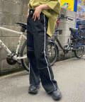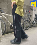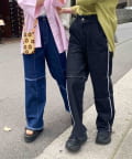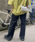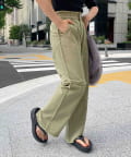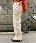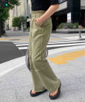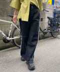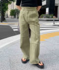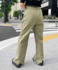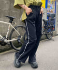 切り替えのデザインが可愛いツイルパンツで、柔らかく伸縮性が高いツイル生地で、ムレにくく動きやすい為、街歩きやちょっとしたアクティビティにオススメです。ゆるっとしたトップスと合わせてカジュアルコーデ、メンズライクな雰囲気にもピッタリなアイテム。