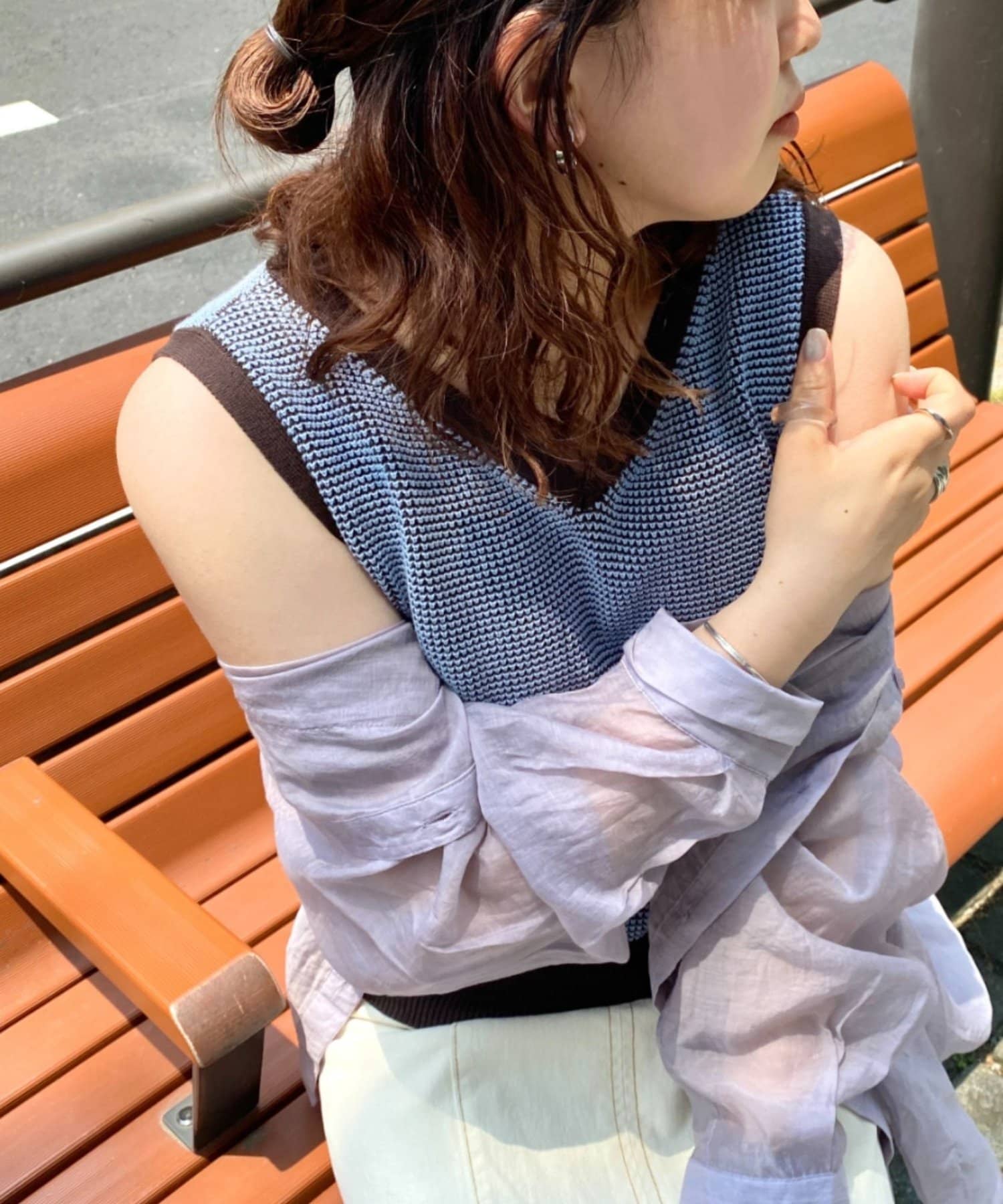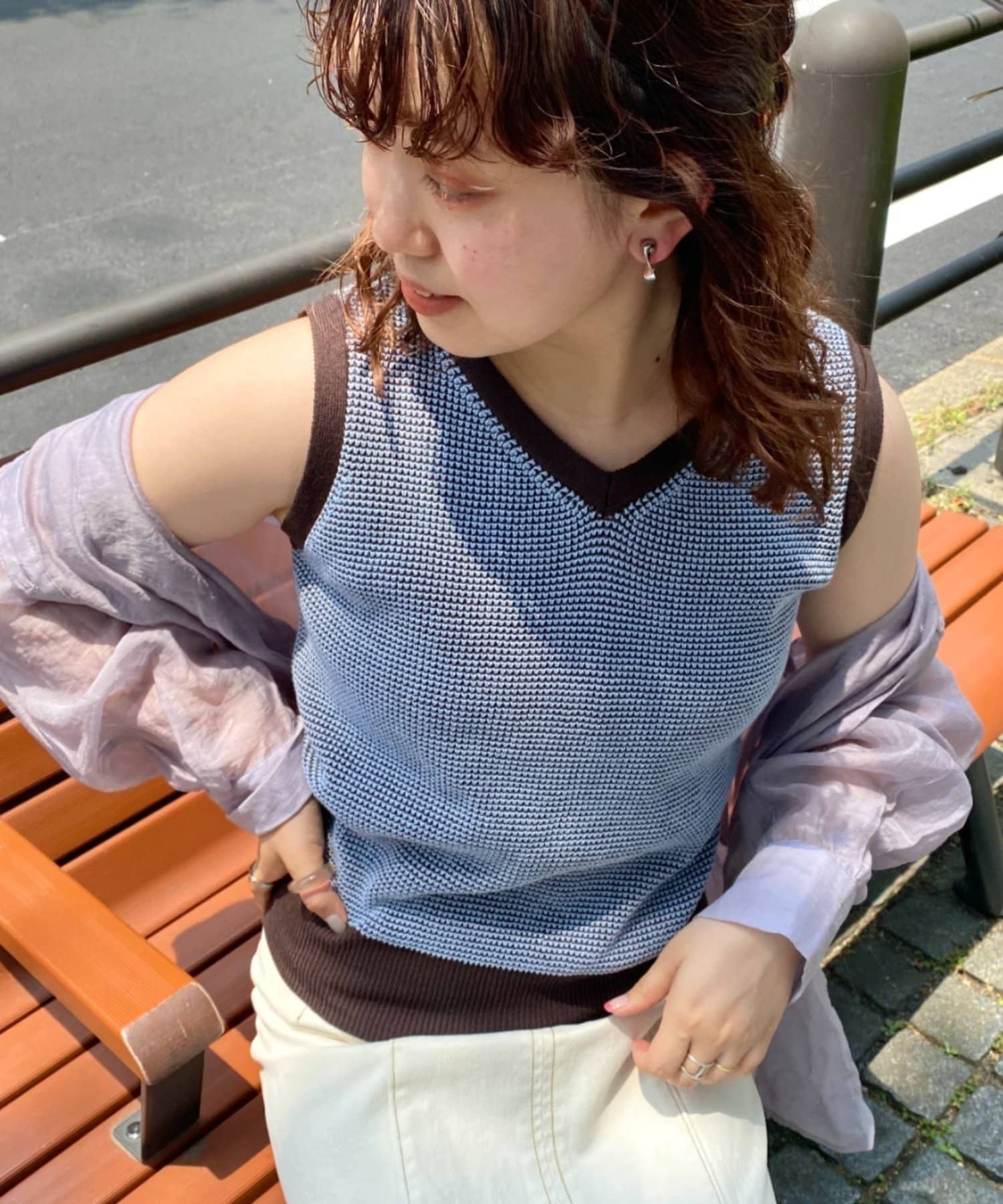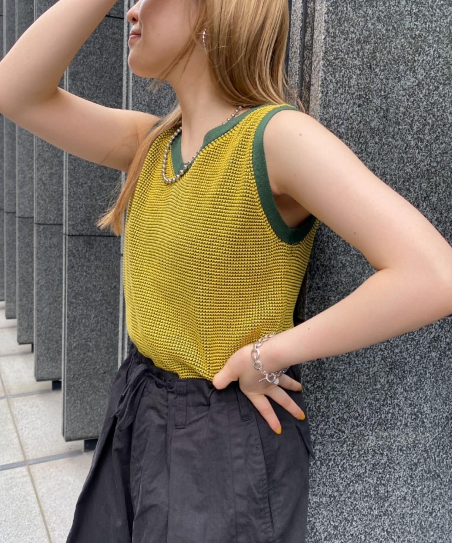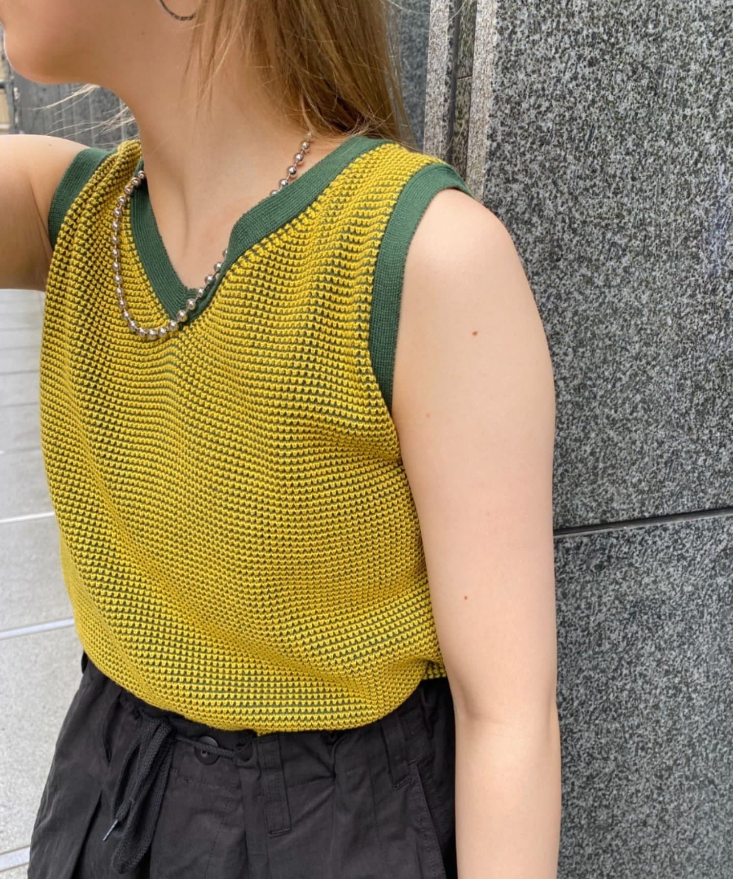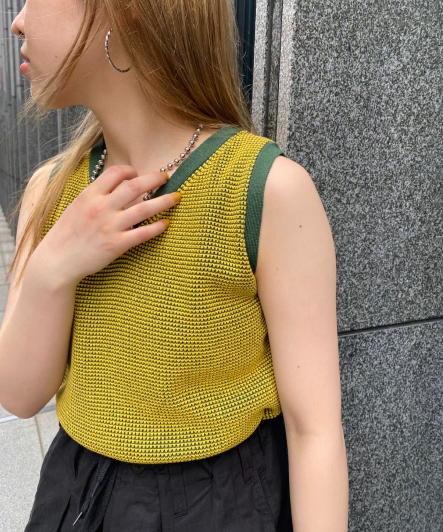 TOP > CPCM > レディース > トップス > ニット/セーター > 綿アクリル配色ノースリニット