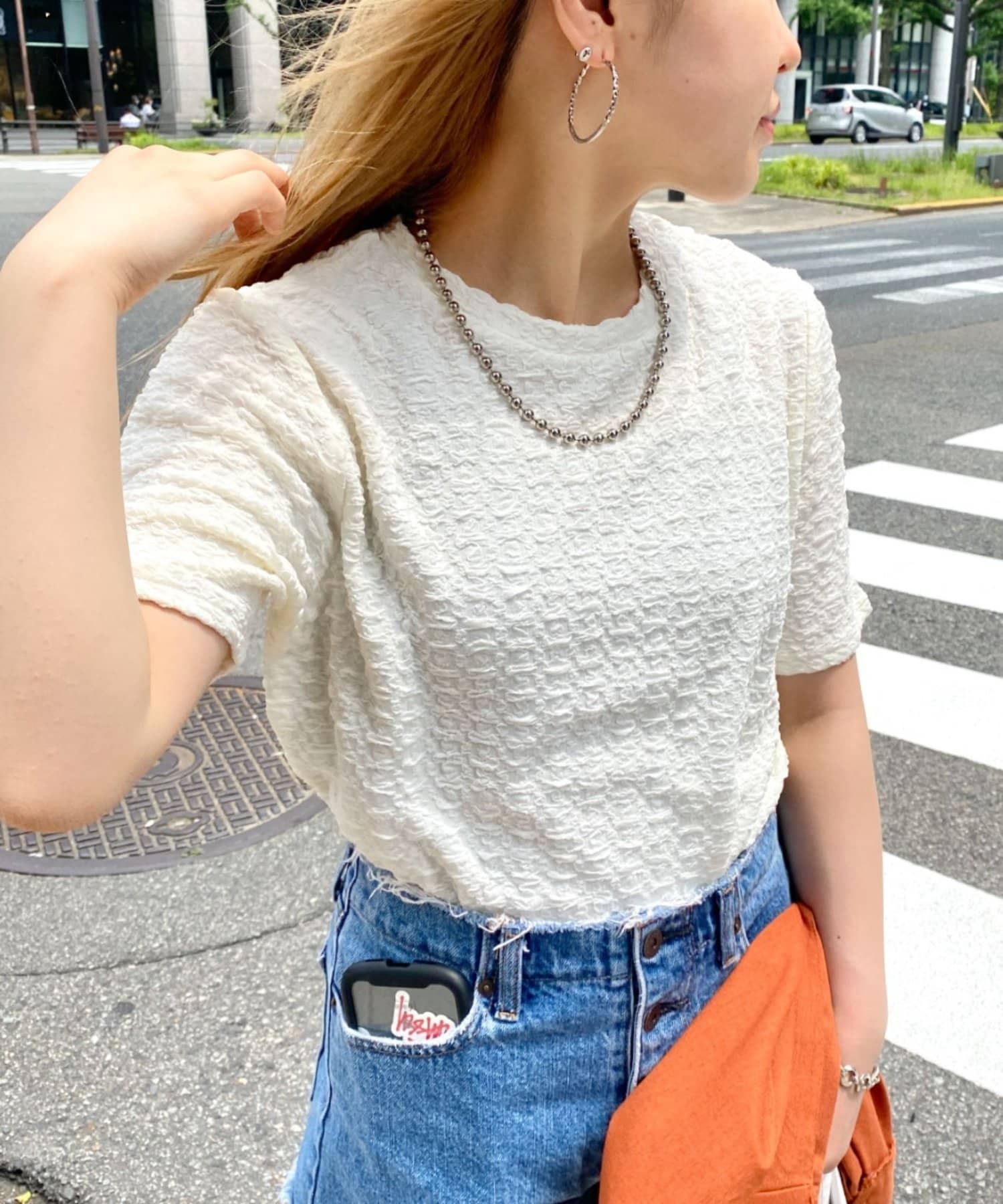 ●ランダムなジャガード加工でシンプルながらもコーデに映える旬顔TOPS
