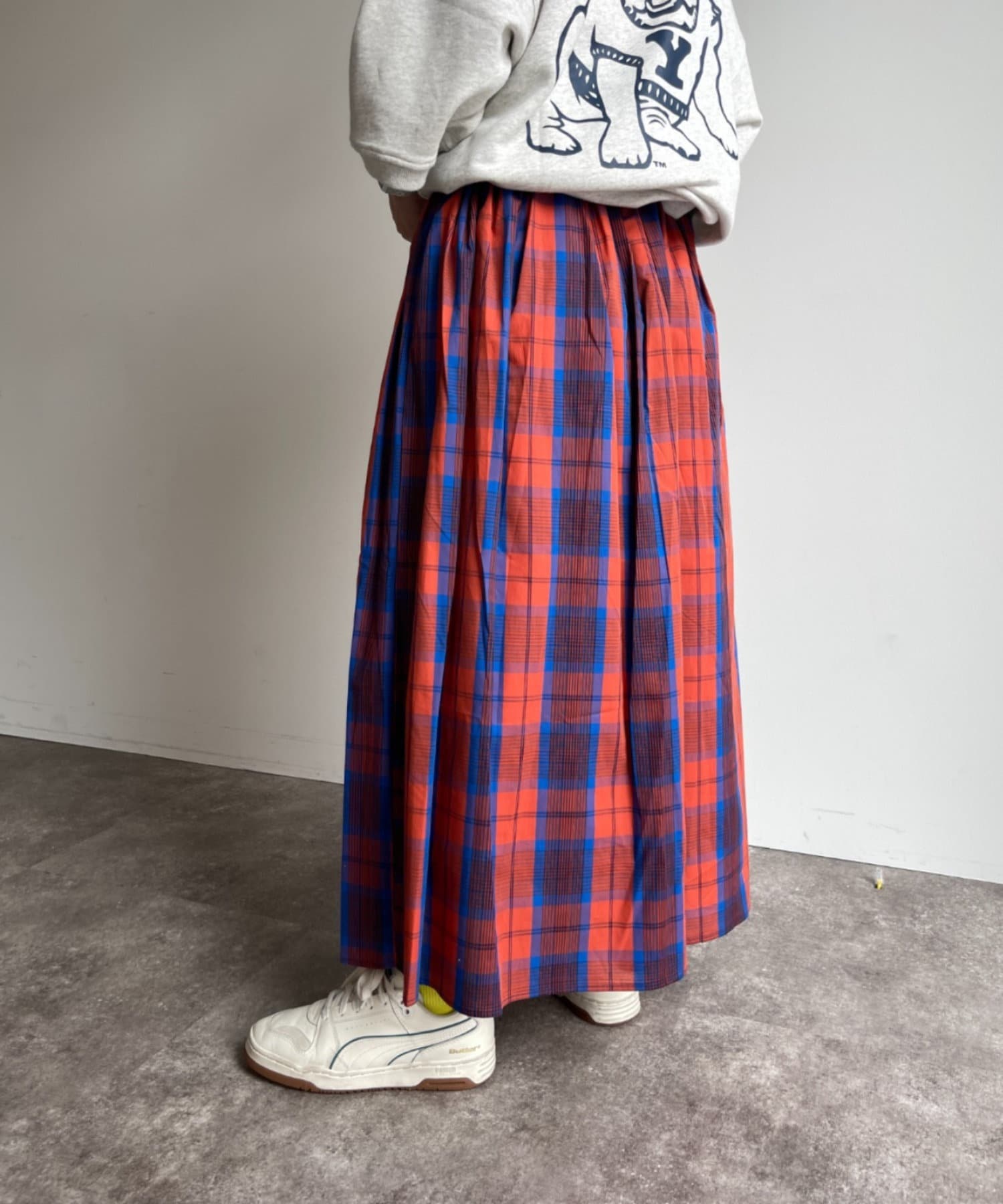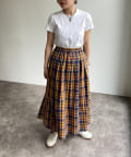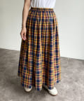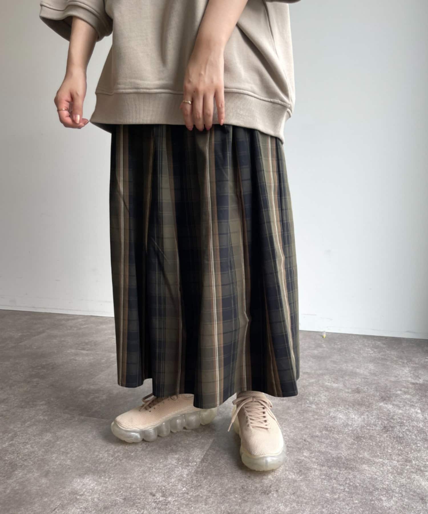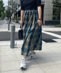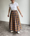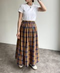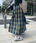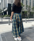 綿100%の素材で暑い時期でも着心地抜群!裏地がガーゼのような柔らかい質感なので、とても気持ちいいと感じました。低身長さんでもマキシ丈で着られるスカートです。新鮮なダークトーンのチェック柄が特徴的なスカート。このトーンだと、秋口まで長く使えて◎です。