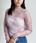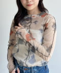 人気のマーブル柄はもちろん、定番の花柄、ギンガムチェックがインナー使いでも可愛い柄デザイン。シアーの透け感が女性らしく、程よく体のラインに沿うシルエットがすっきりとした印です。インナーとして重ね着が楽しめたり、1枚での着用でも表情が出るメローデザインがかわいいデザインです。首元や袖口に施したメロー始末が、女性らしさを演出します。合わせるボトムスを選ばず、またサロペットやキャミワンピースのインナー使いにもピッタリなので、幅広いコーディネートでご活躍頂けるアイテムです♪
