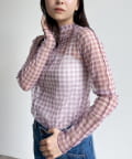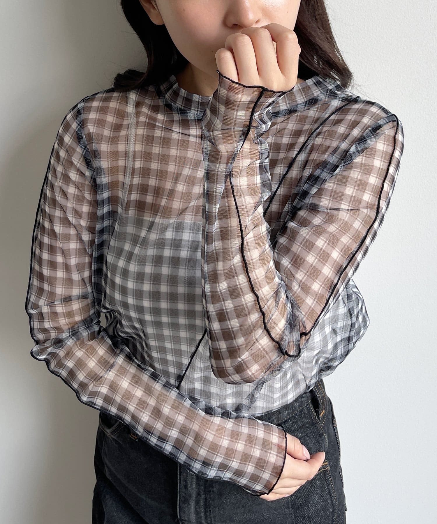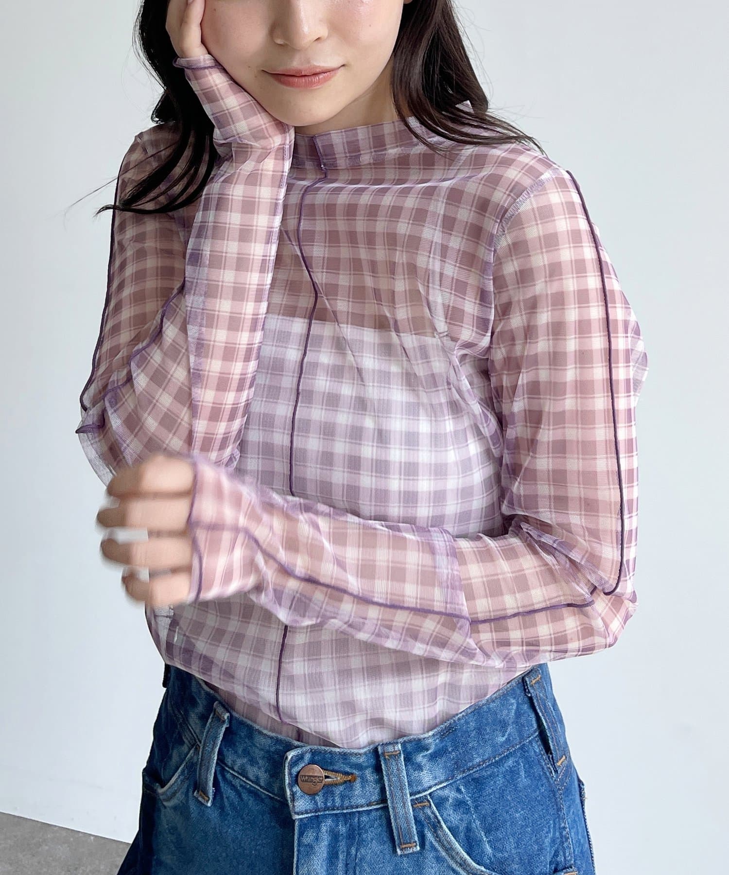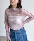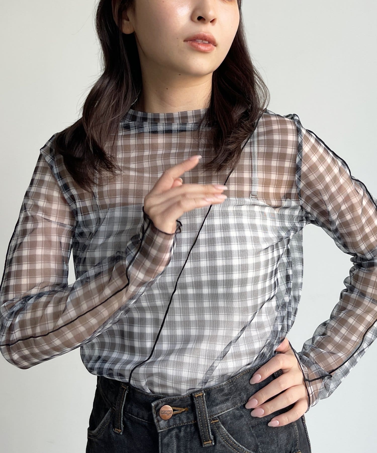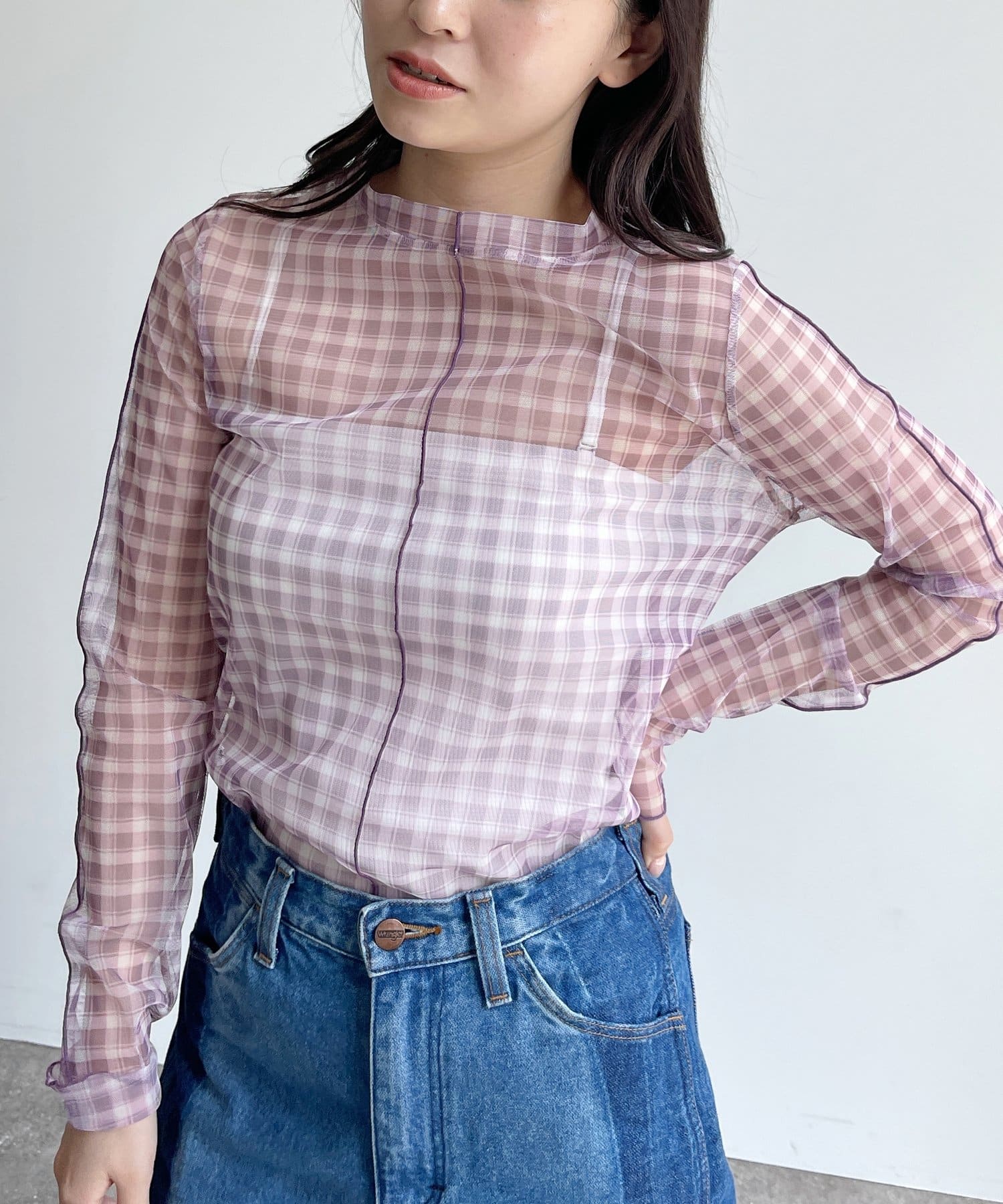 花柄やチェック柄といった柄物のインナーはめずらしいのではないでしょうか?柄があることで主役にも、脇役にもなれる1枚。何に合わせても◎です。ぴたっとしていて伸縮性はそこまで高くないですが、肌をキレイに見せてくれるカラーリングなので着やすいですよ!