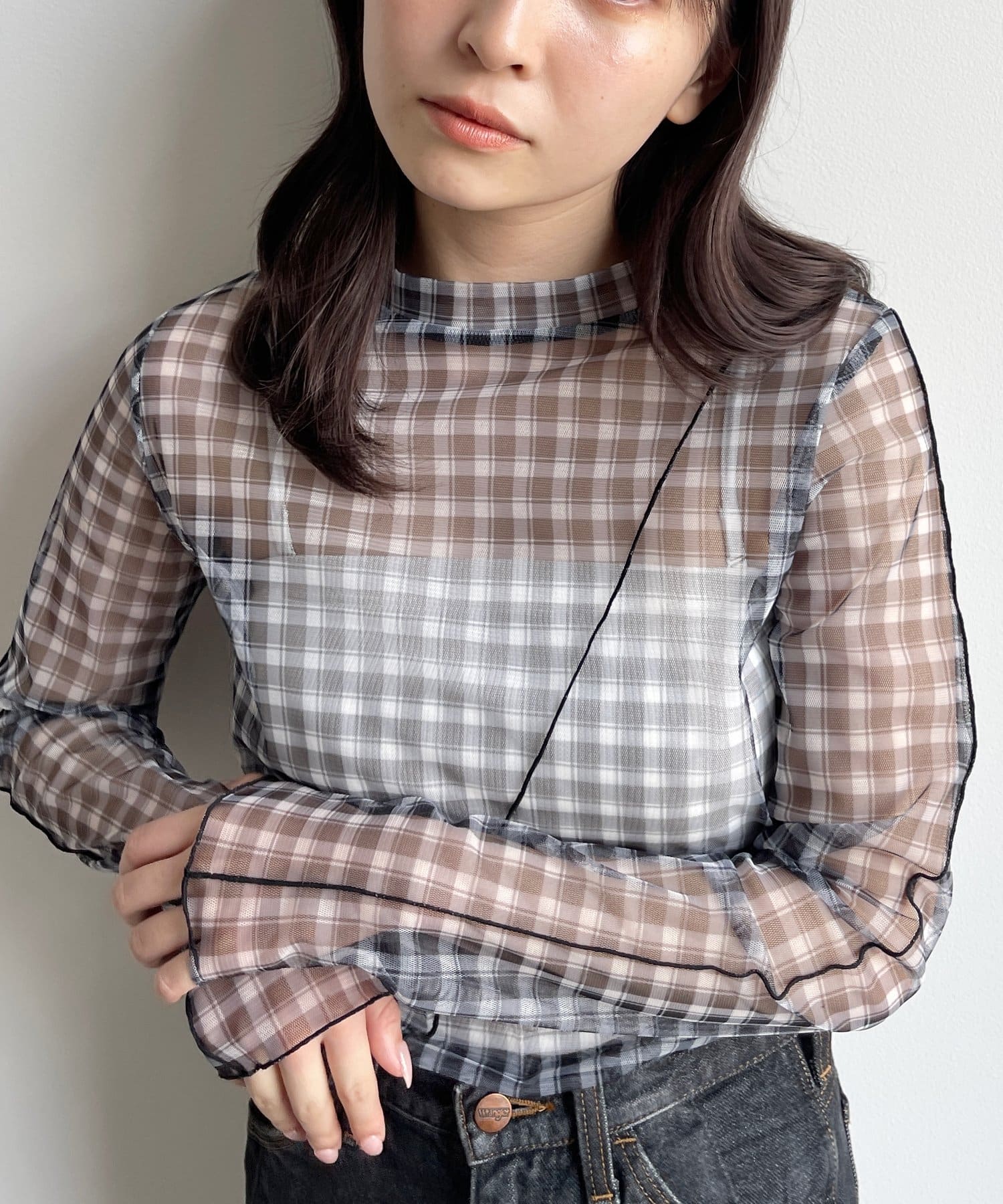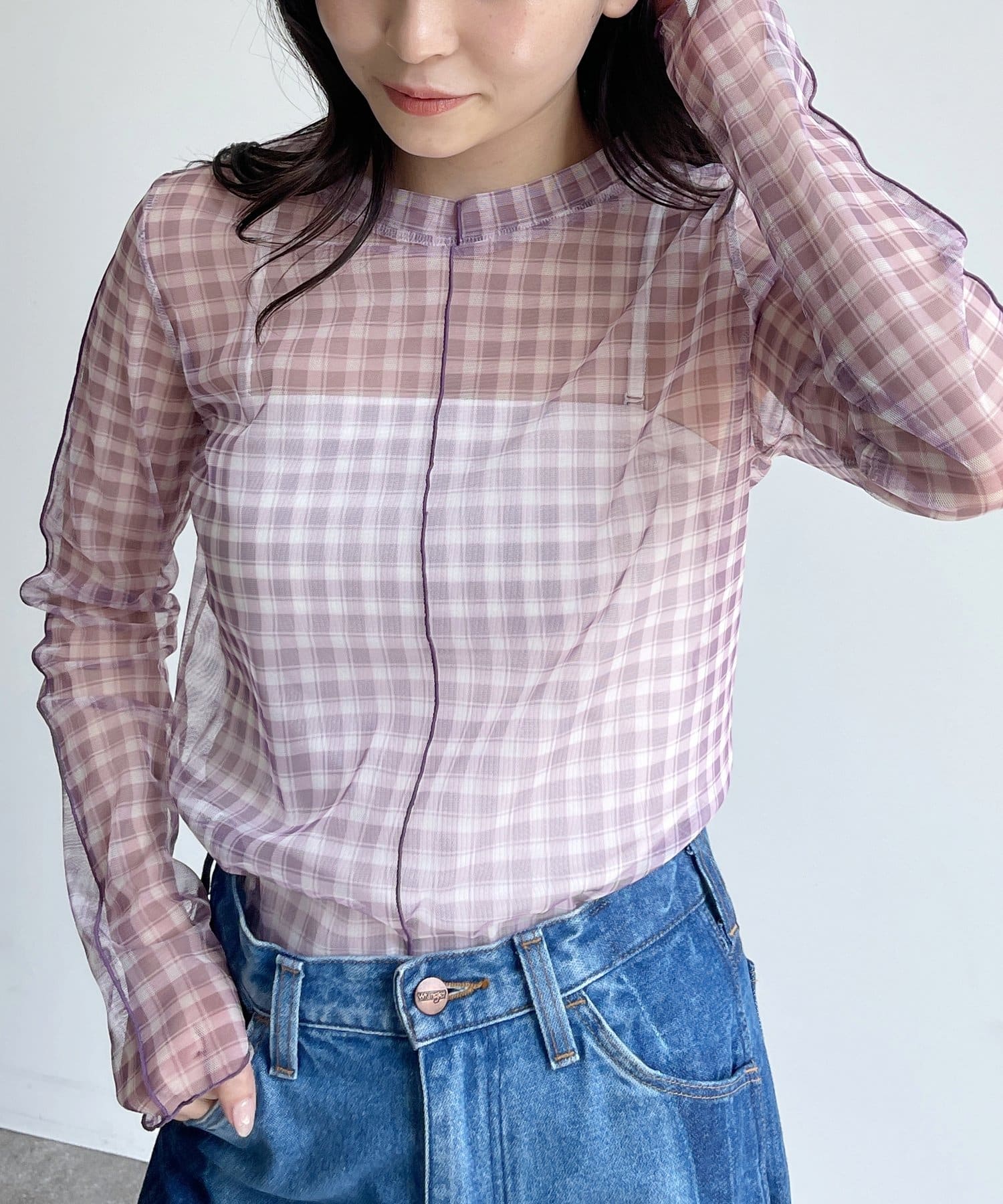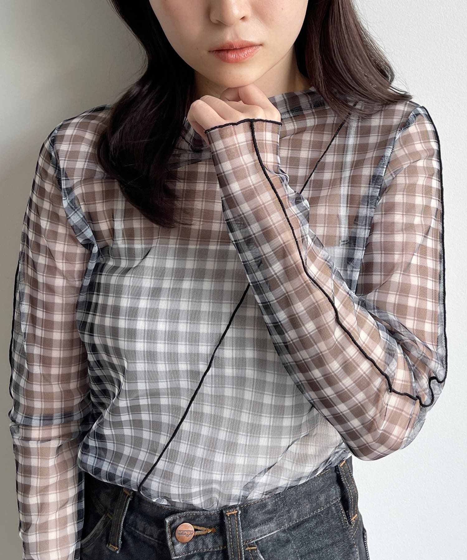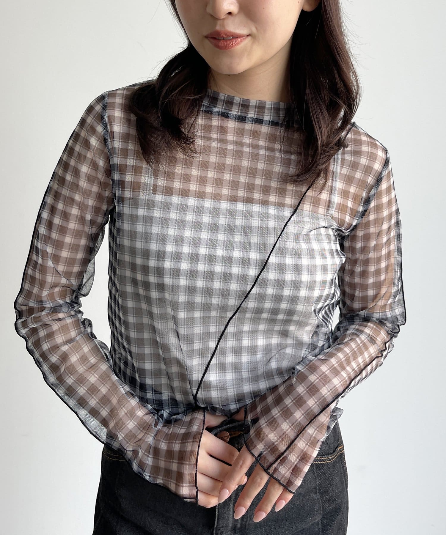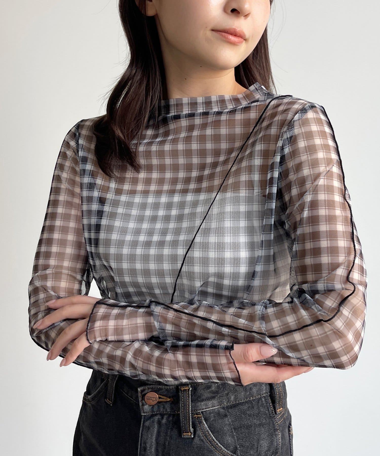 花柄やチェック柄といった柄物のインナーはめずらしいのではないでしょうか?柄があることで主役にも、脇役にもなれる1枚。何に合わせても◎です。ぴたっとしていて伸縮性はそこまで高くないですが、肌をキレイに見せてくれるカラーリングなので着やすいですよ!