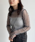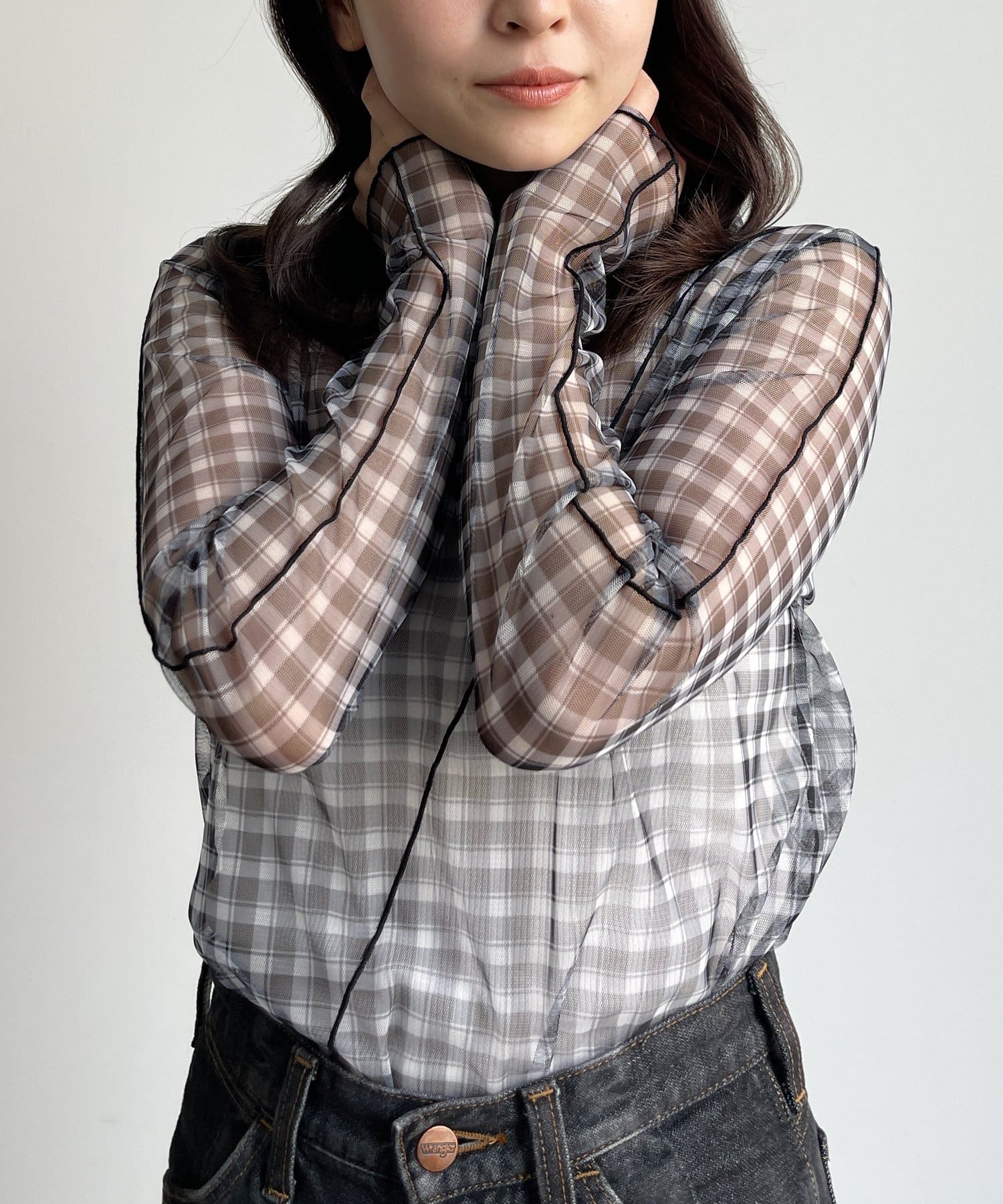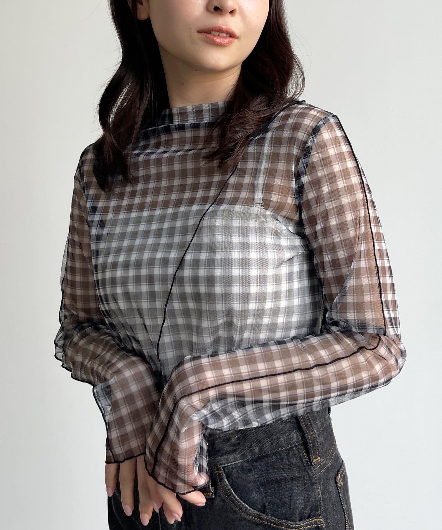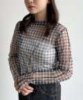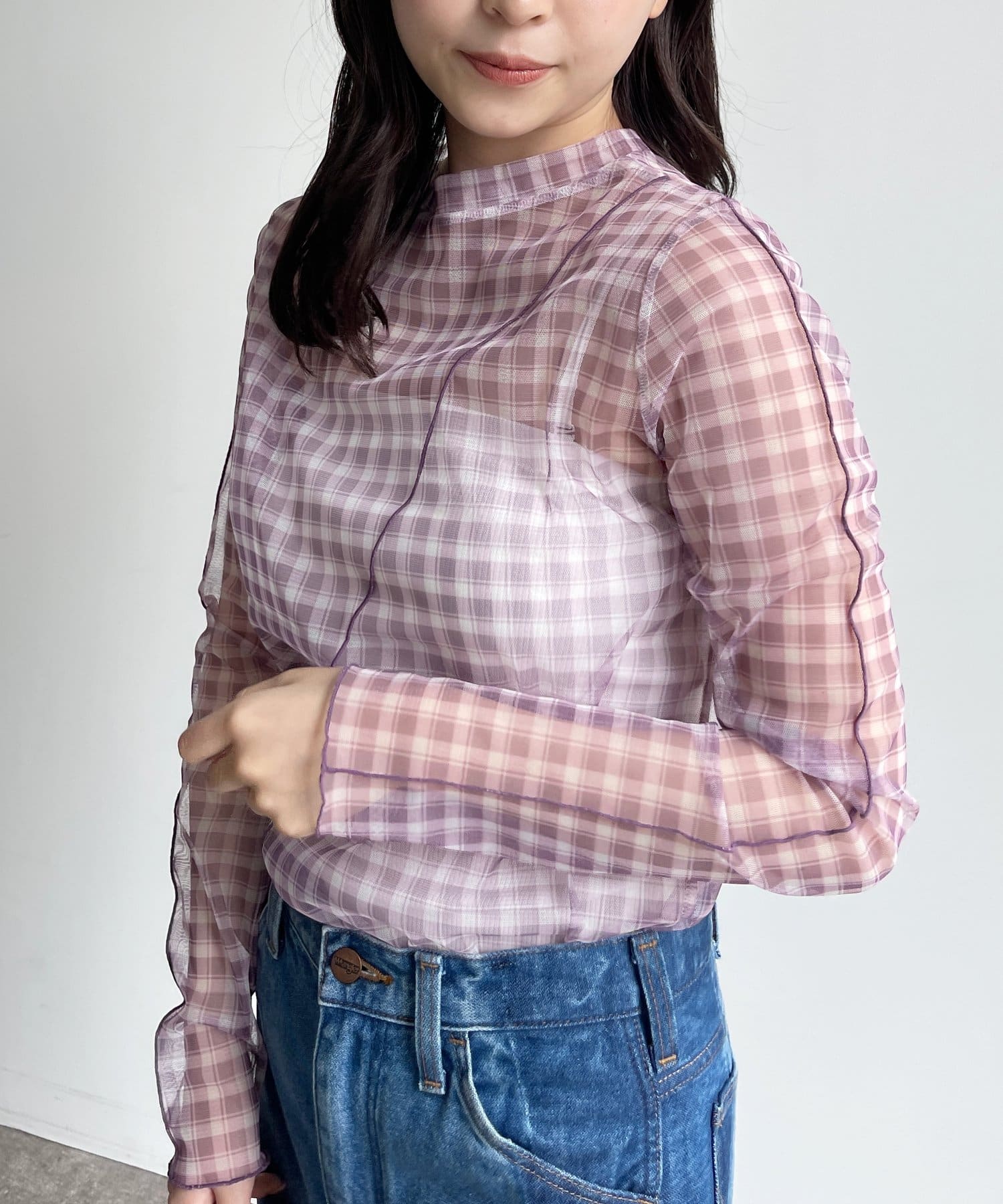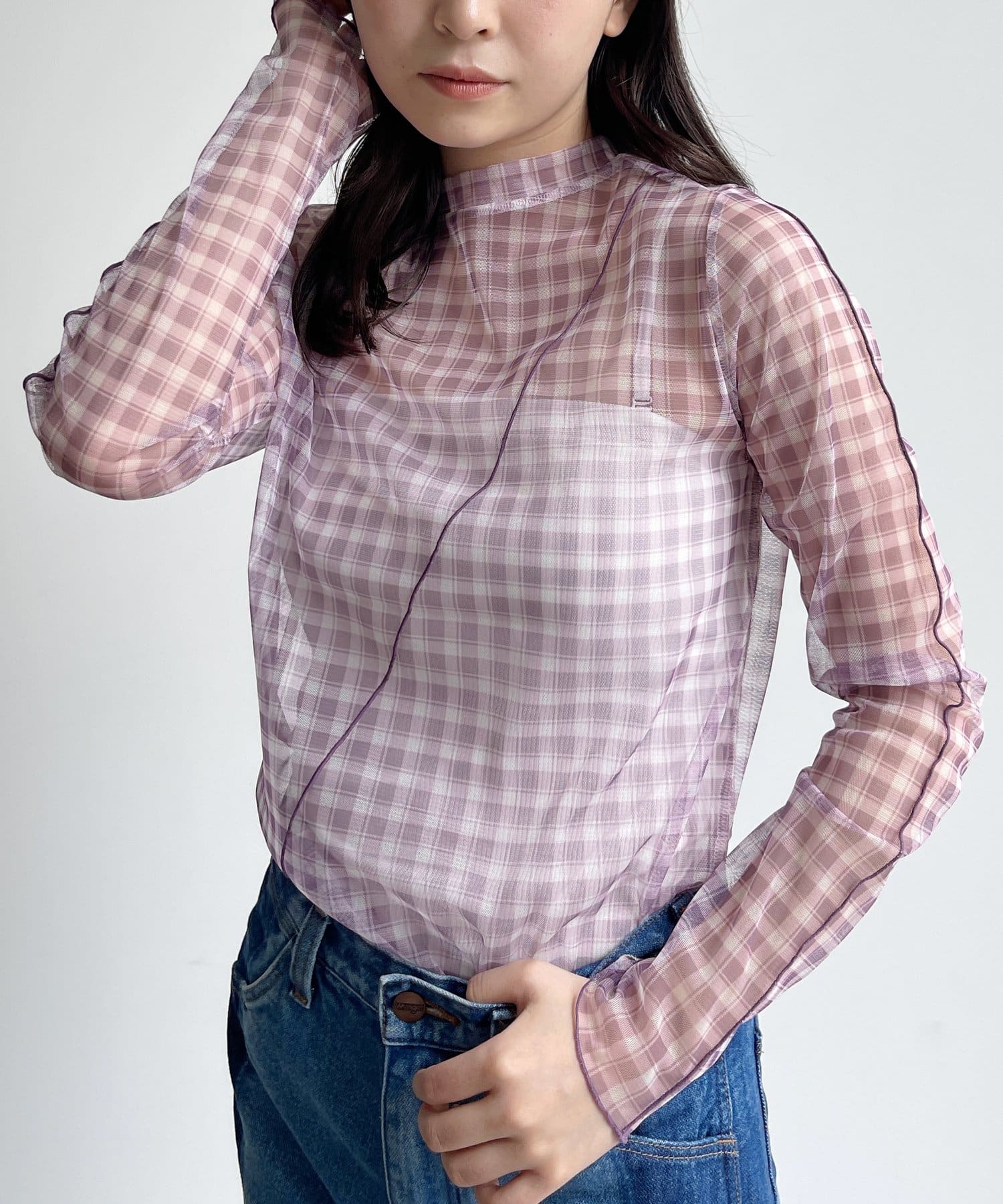 花柄やチェック柄といった柄物のインナーはめずらしいのではないでしょうか?柄があることで主役にも、脇役にもなれる1枚。何に合わせても◎です。ぴたっとしていて伸縮性はそこまで高くないですが、肌をキレイに見せてくれるカラーリングなので着やすいですよ!