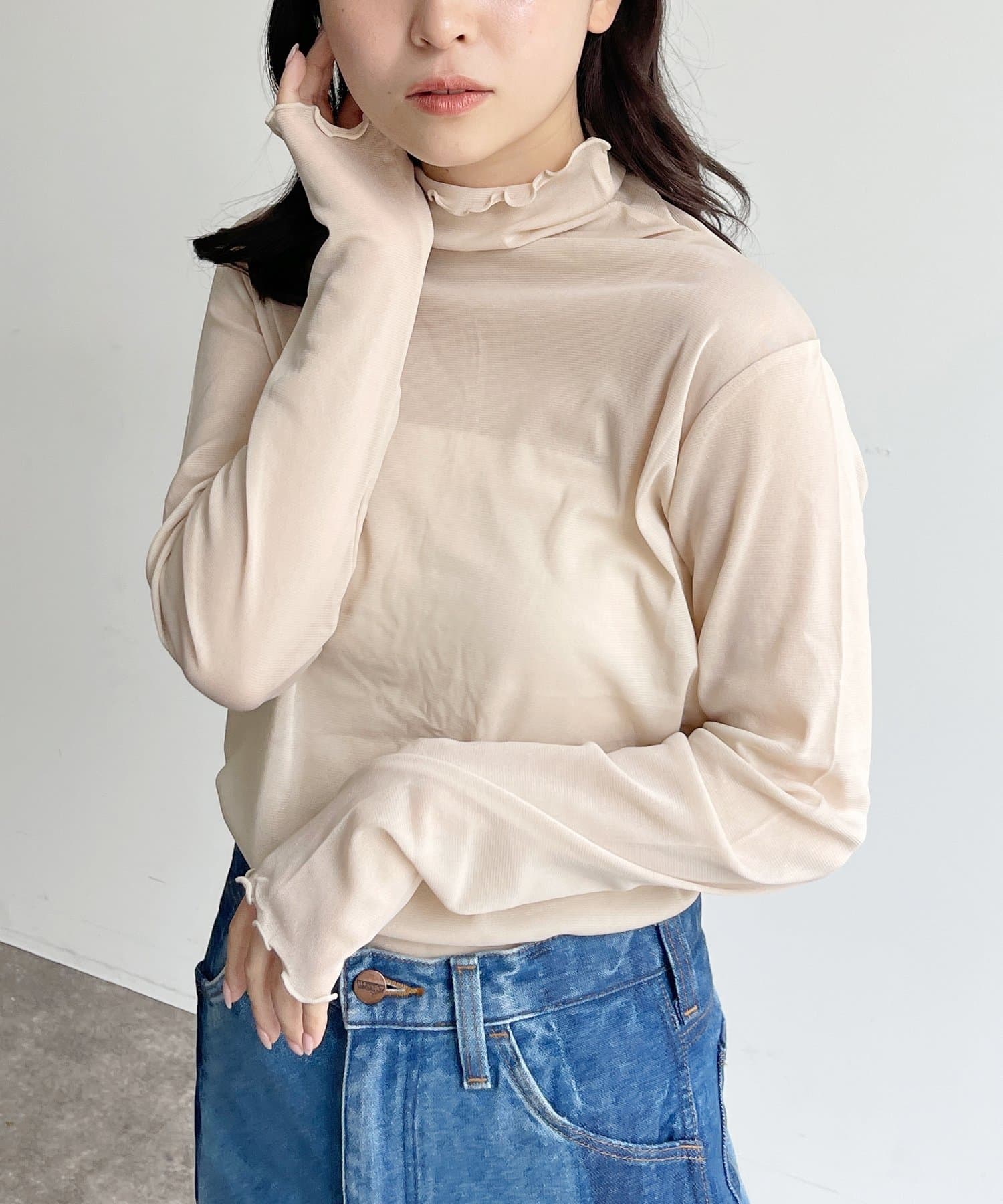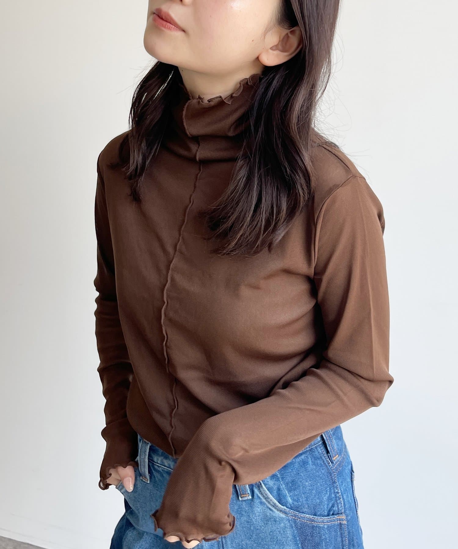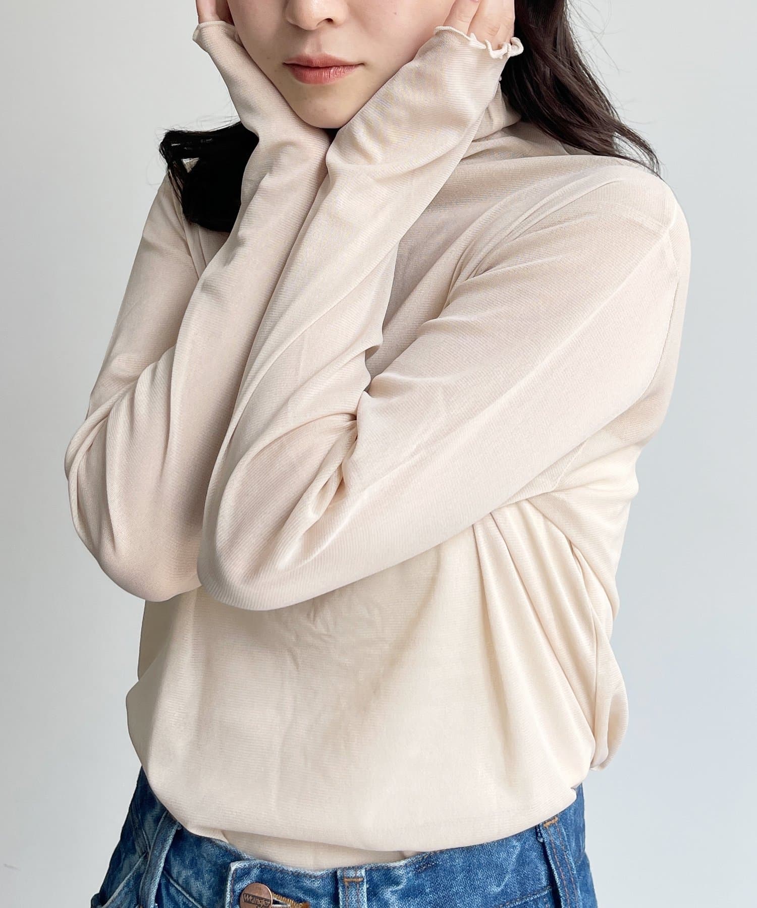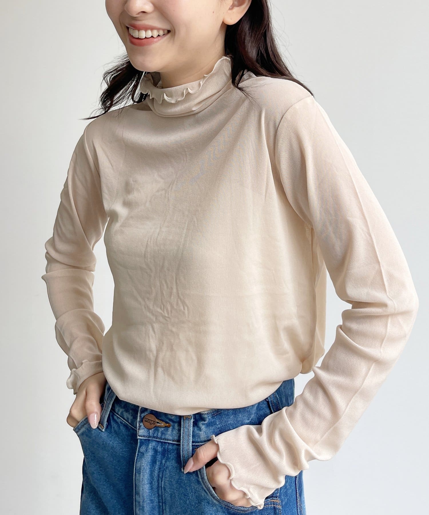 インナー使いも楽しめるちょびハイネックなメロートップス