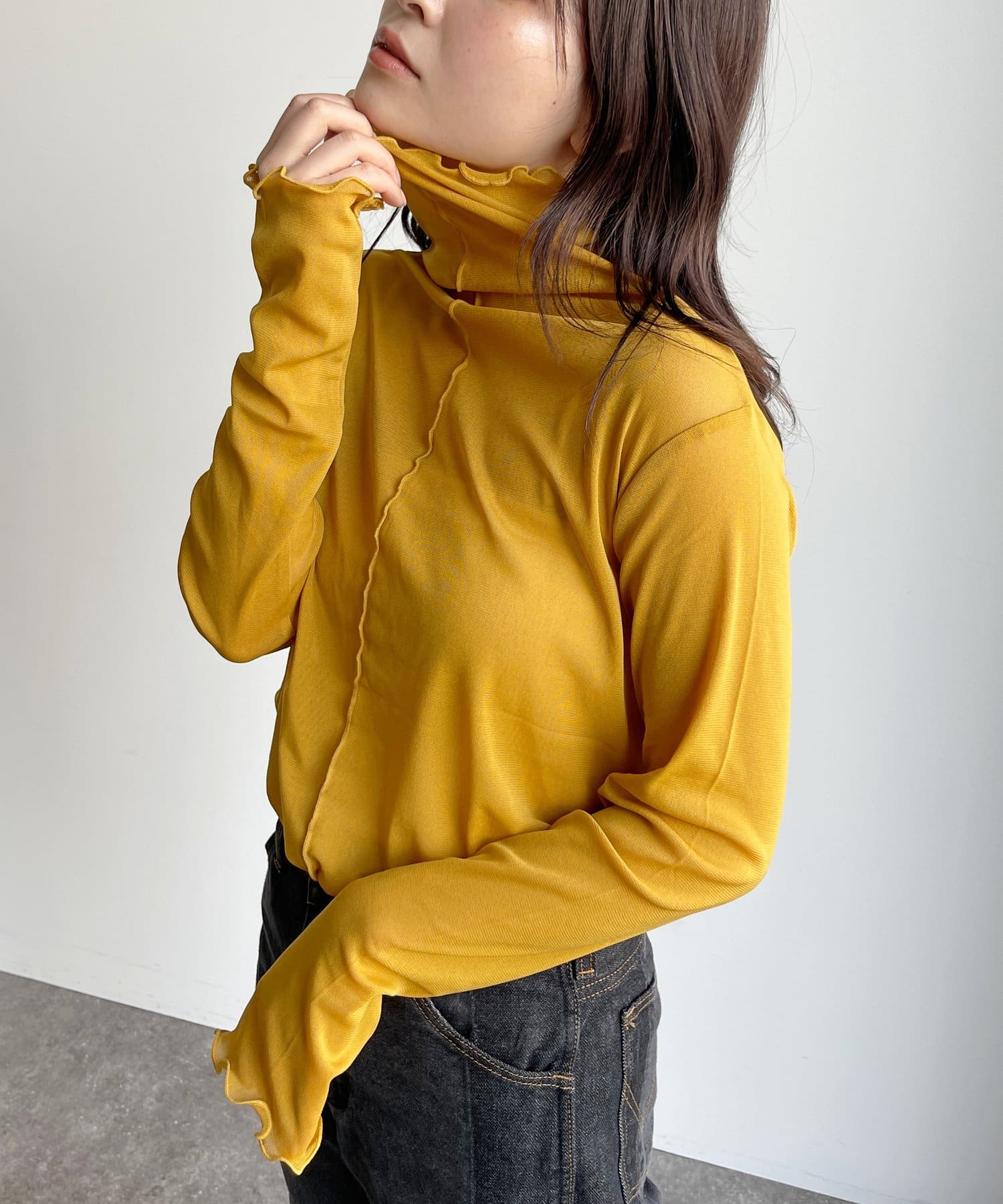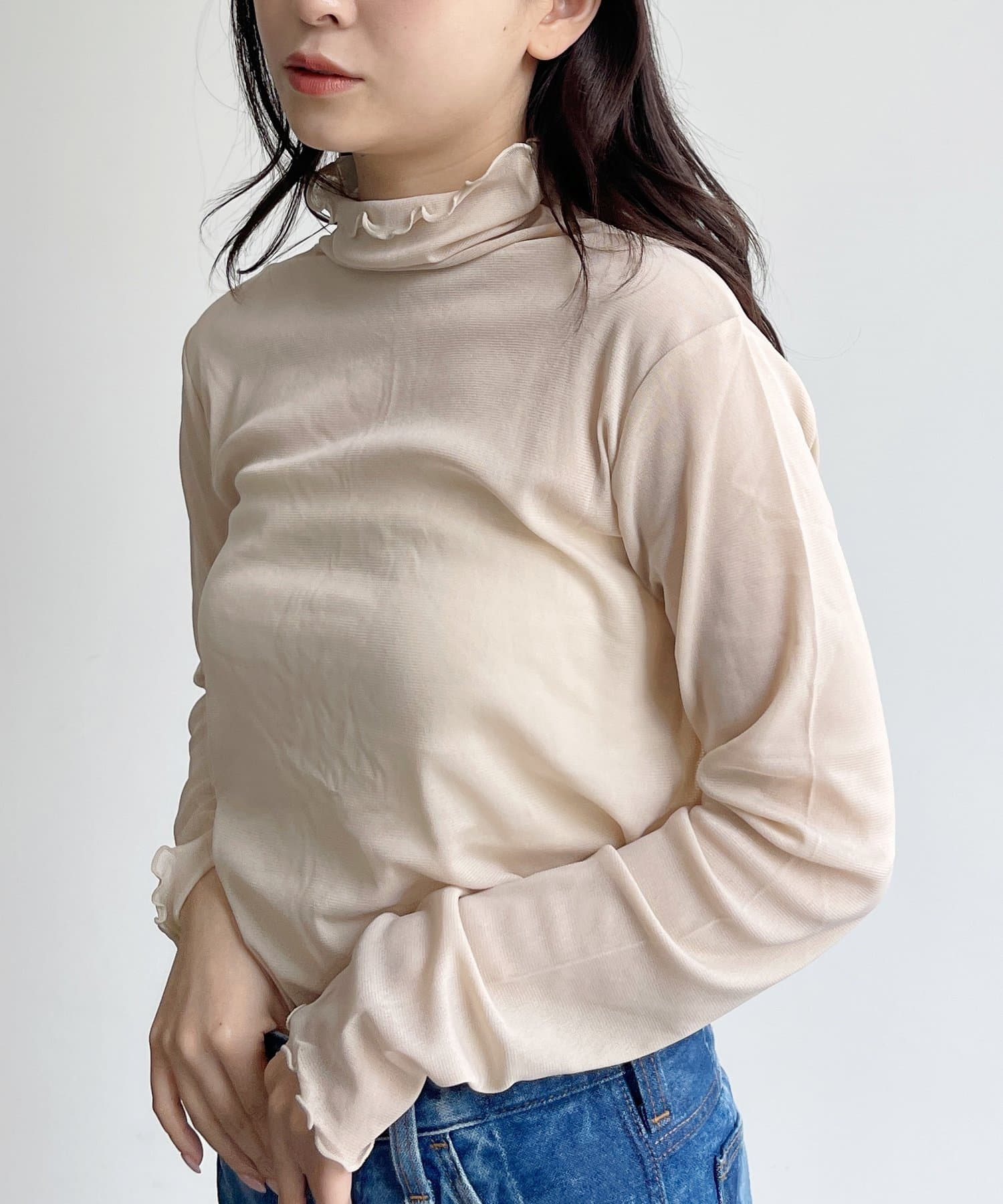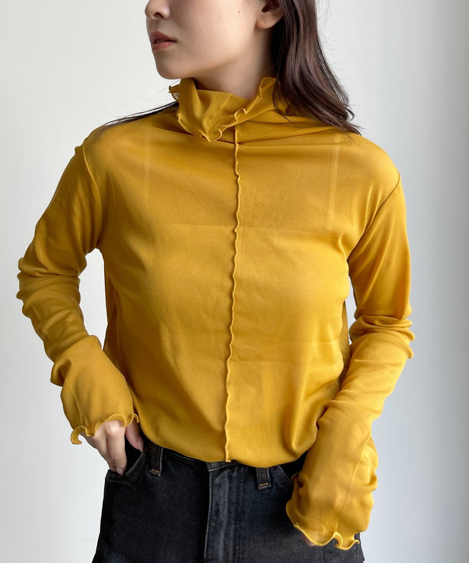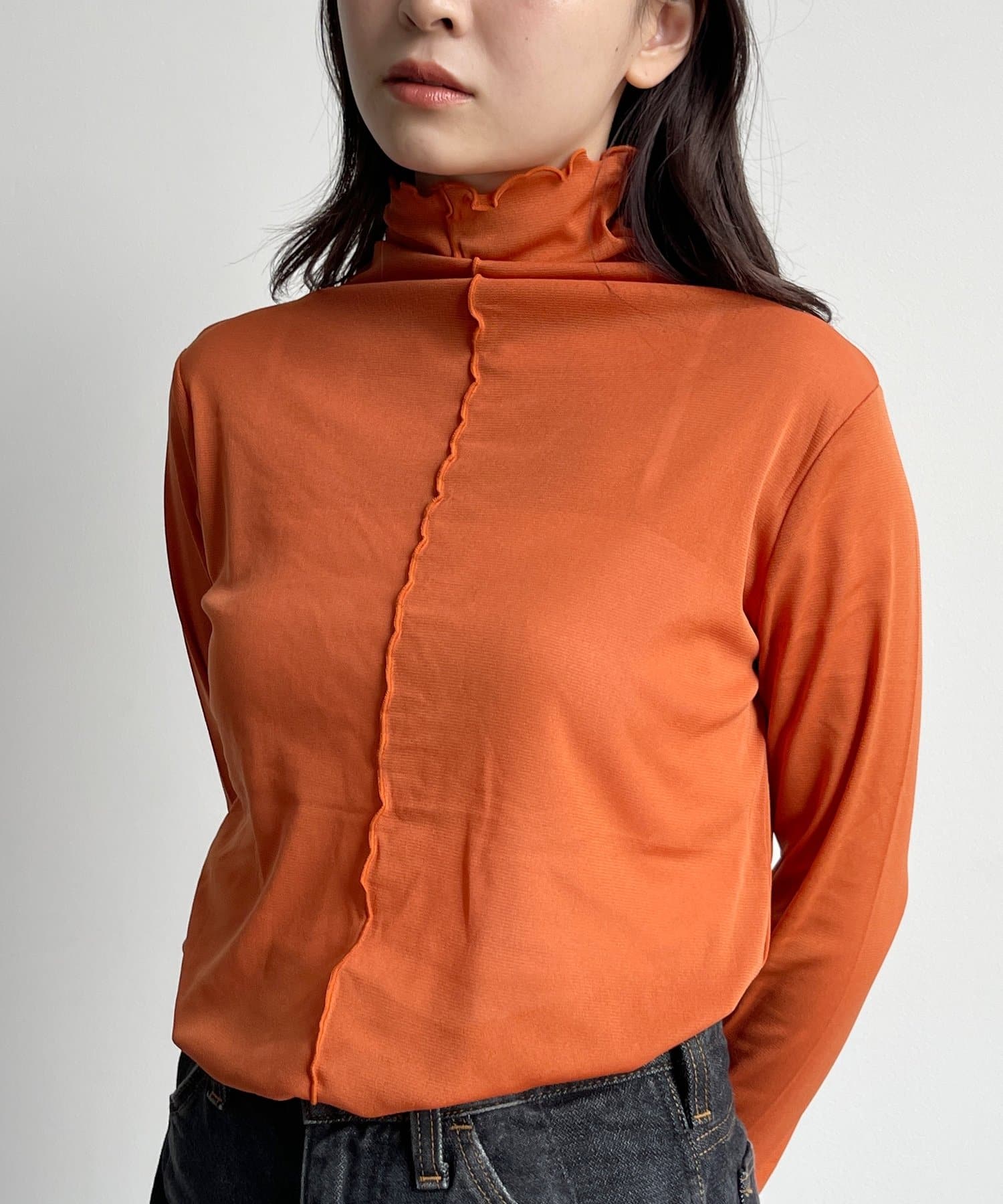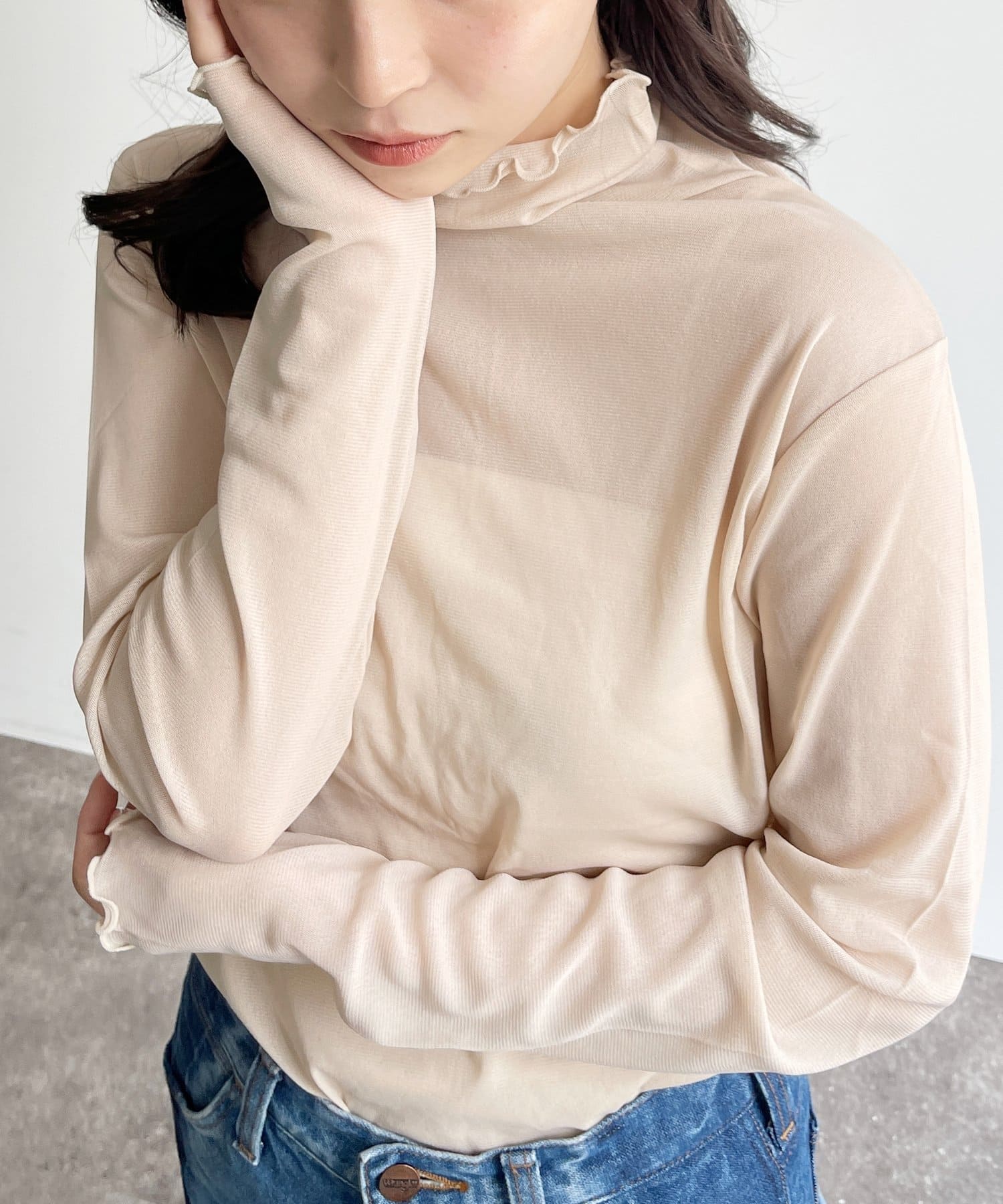 インナー使いも楽しめるちょびハイネックなメロートップス