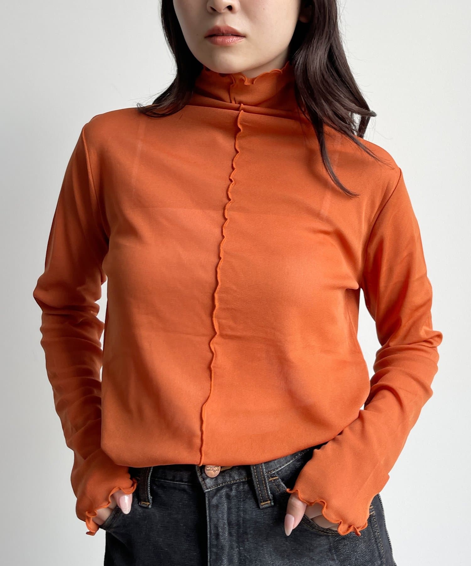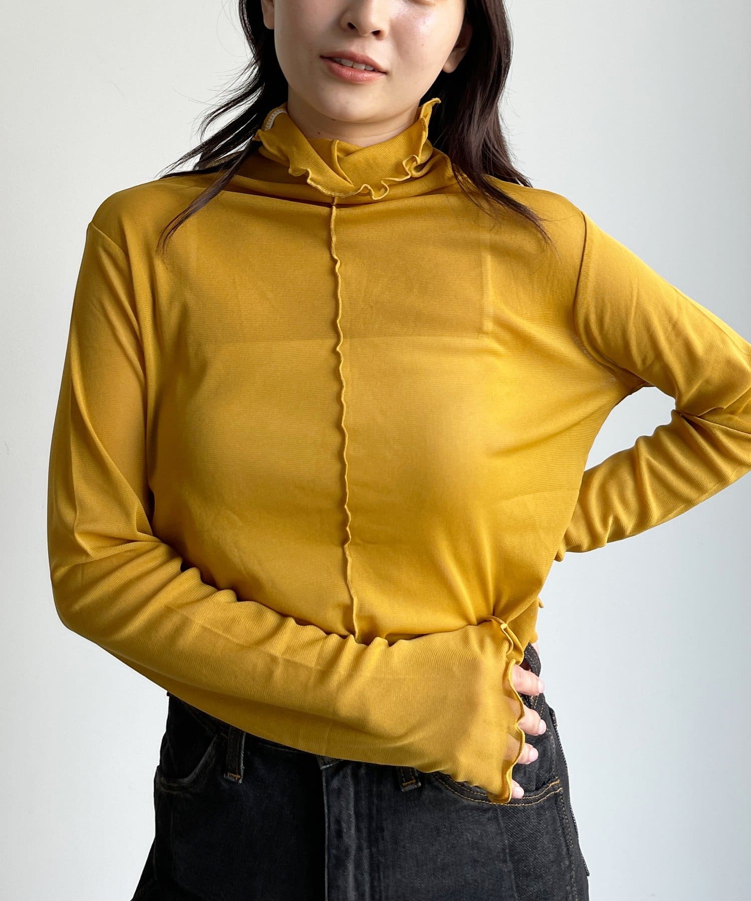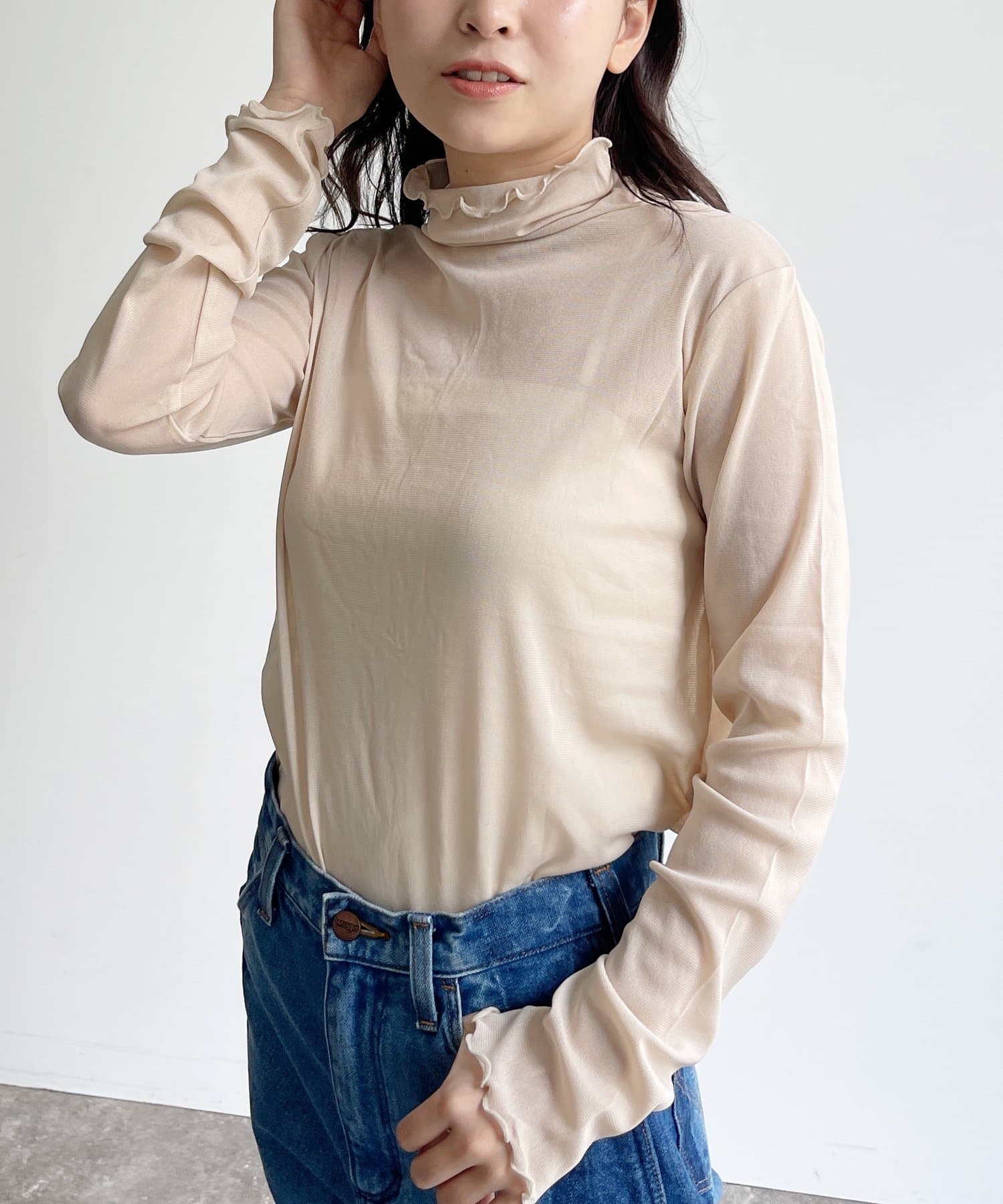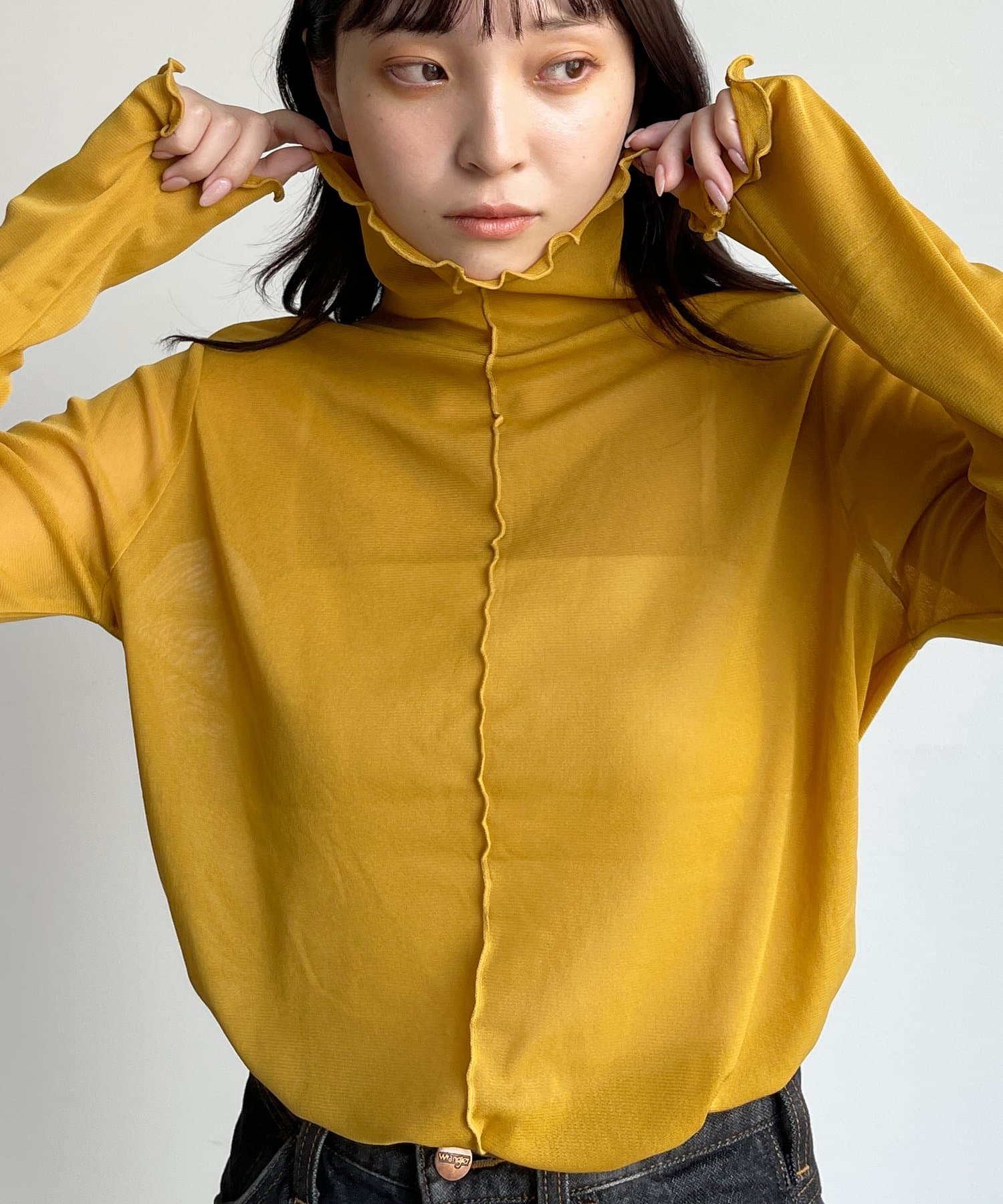 インナー使いも楽しめるちょびハイネックなメロートップス