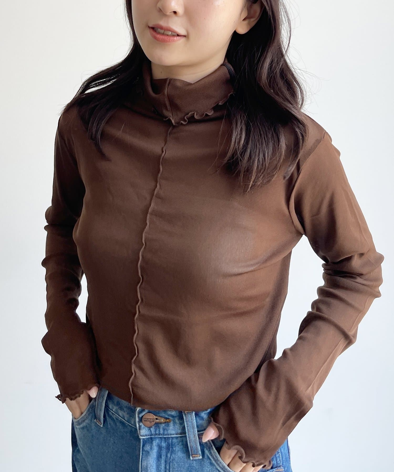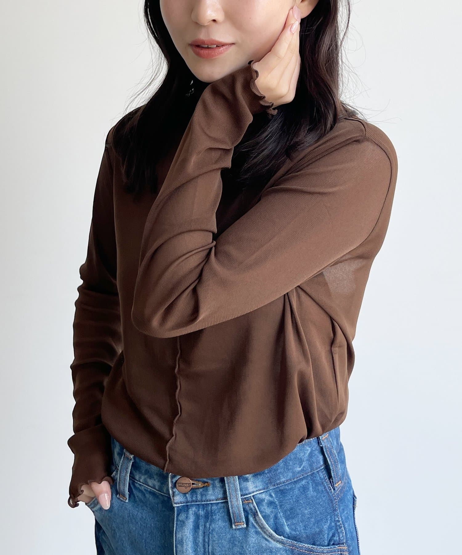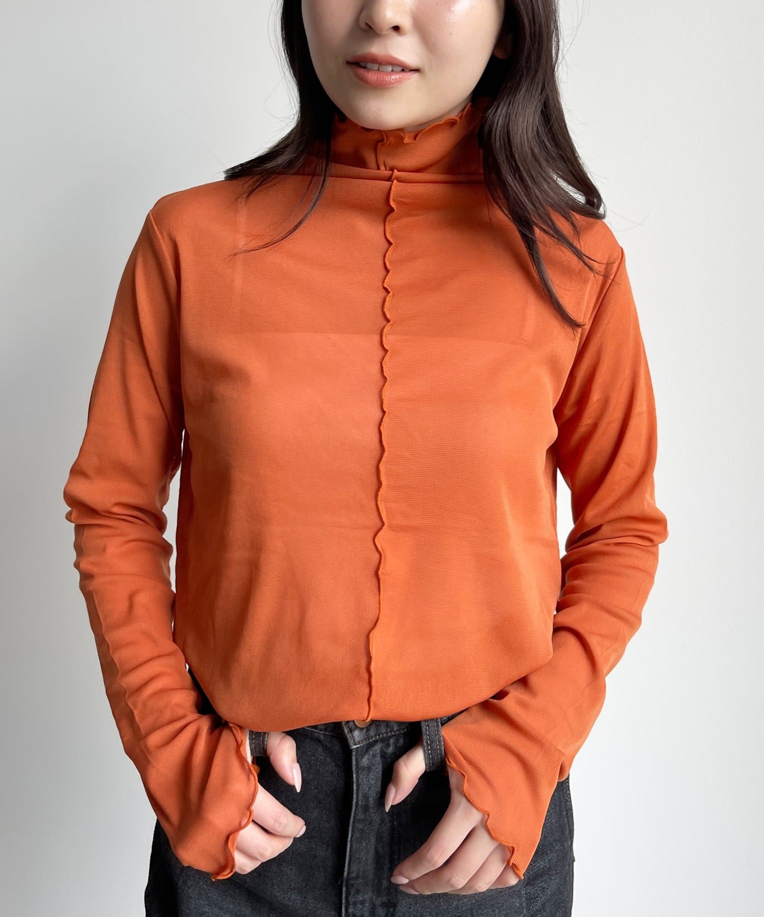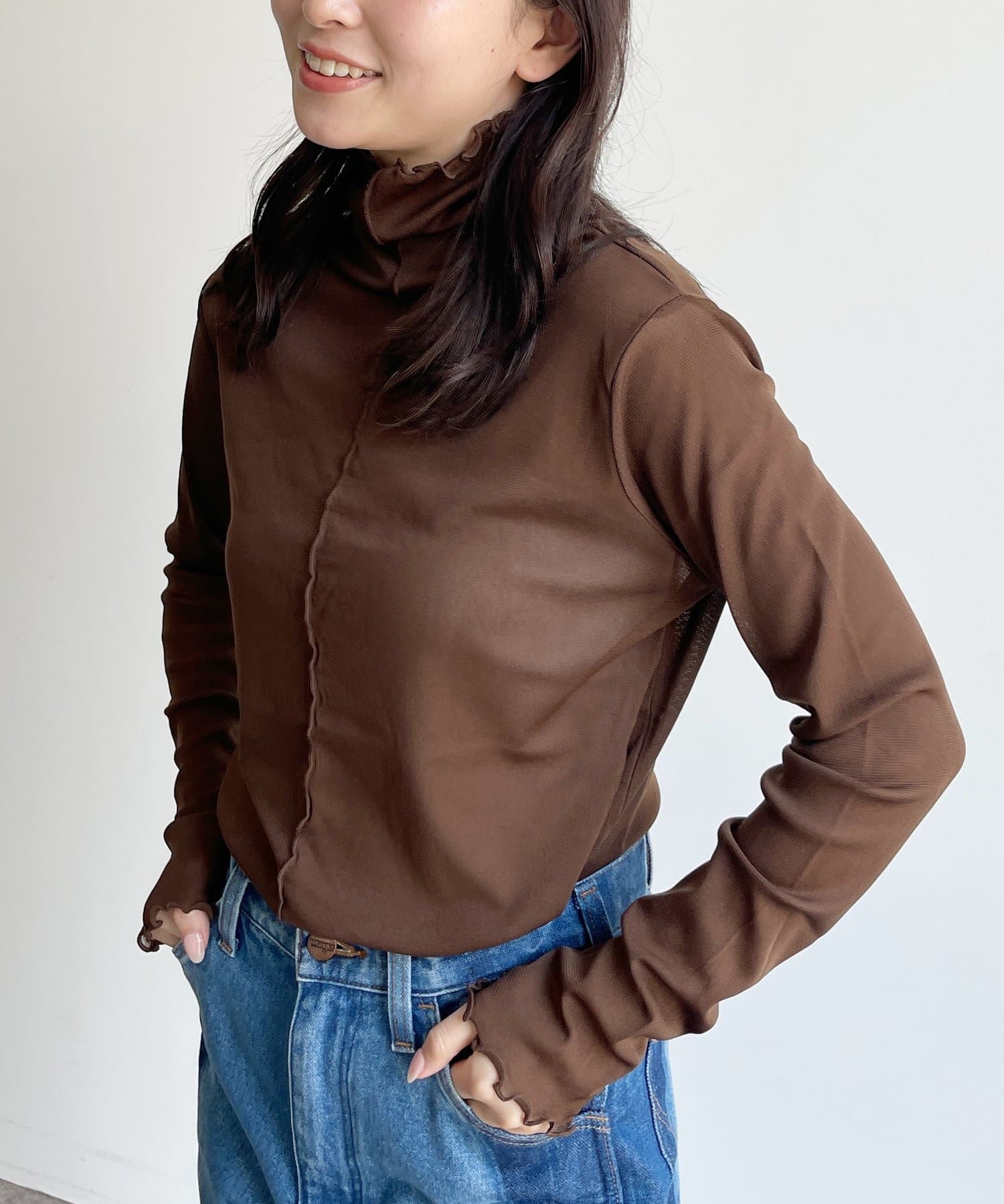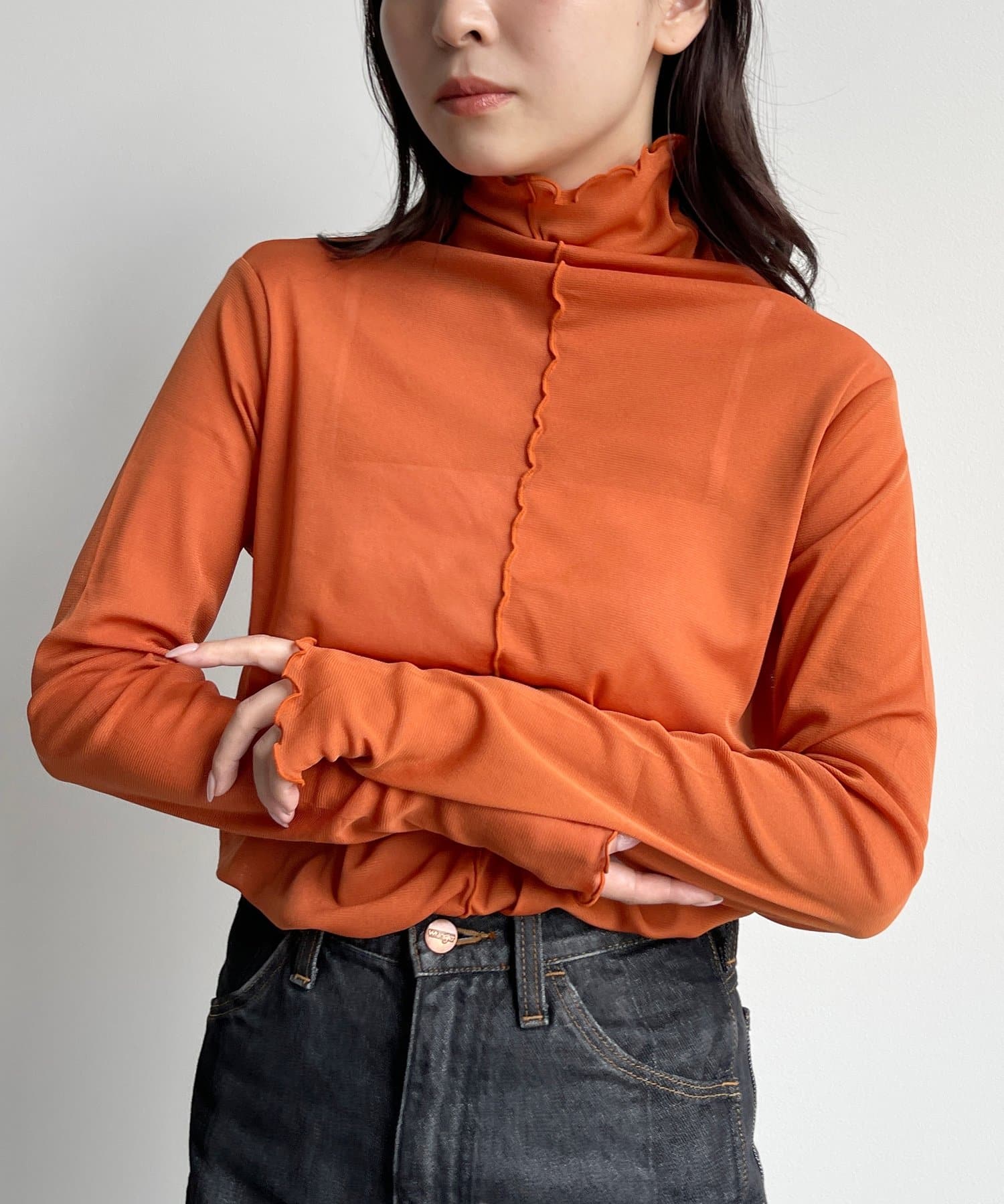 インナー使いも楽しめるちょびハイネックなメロートップス