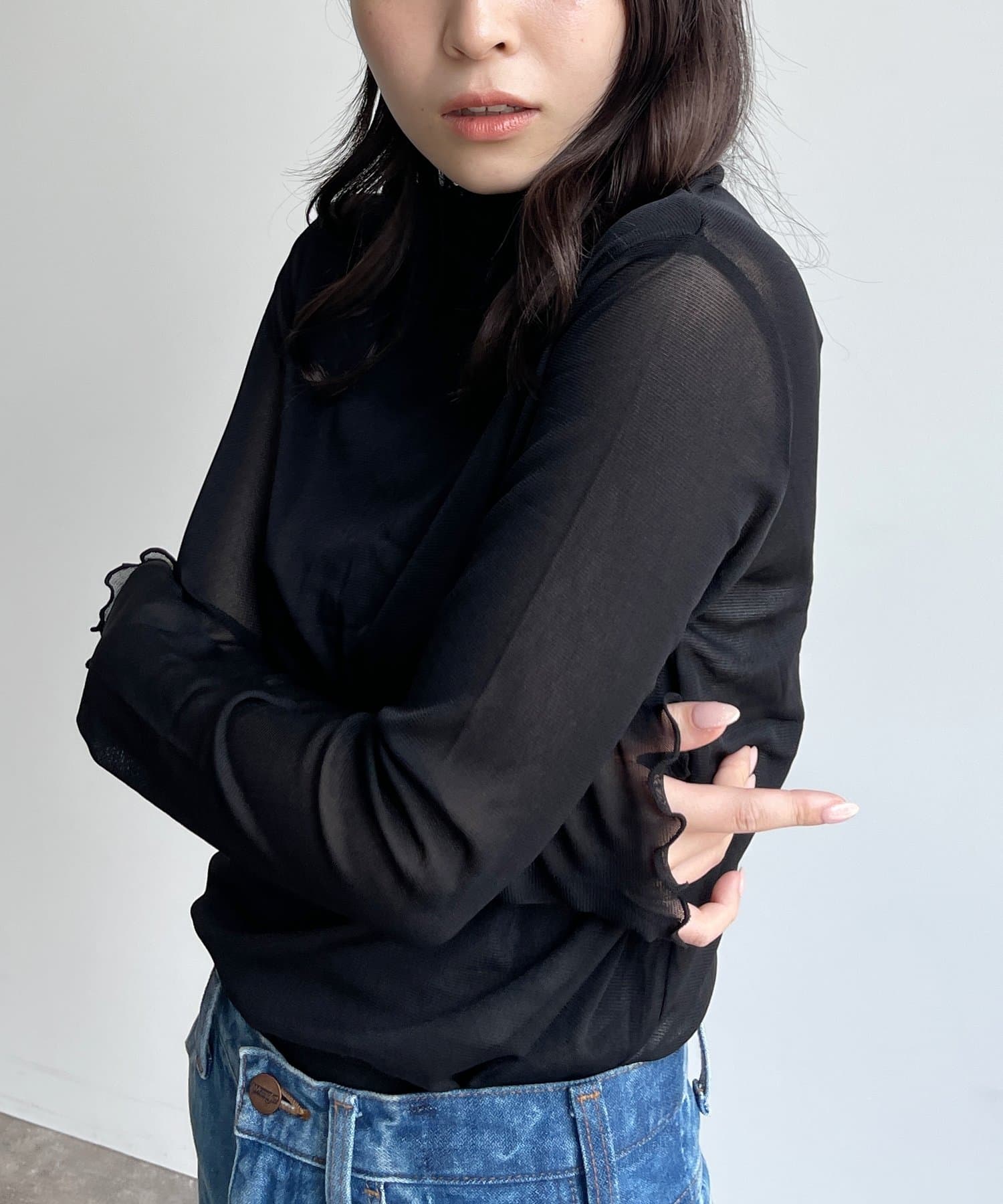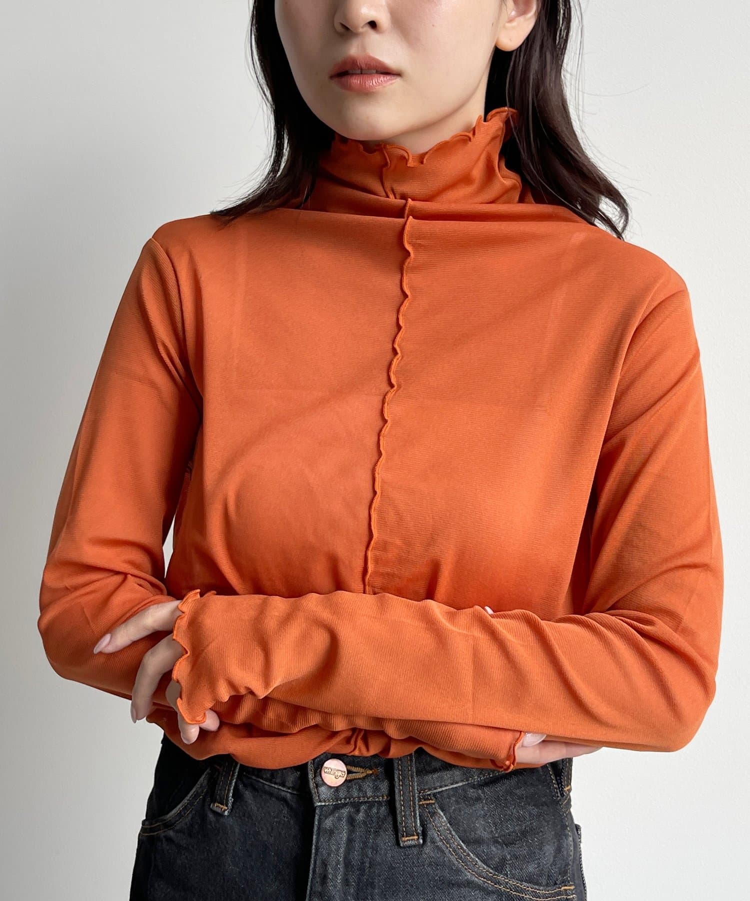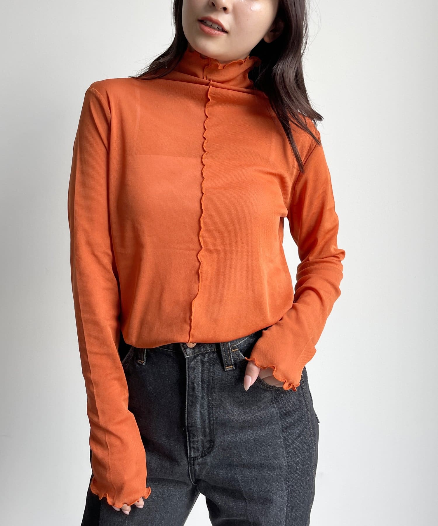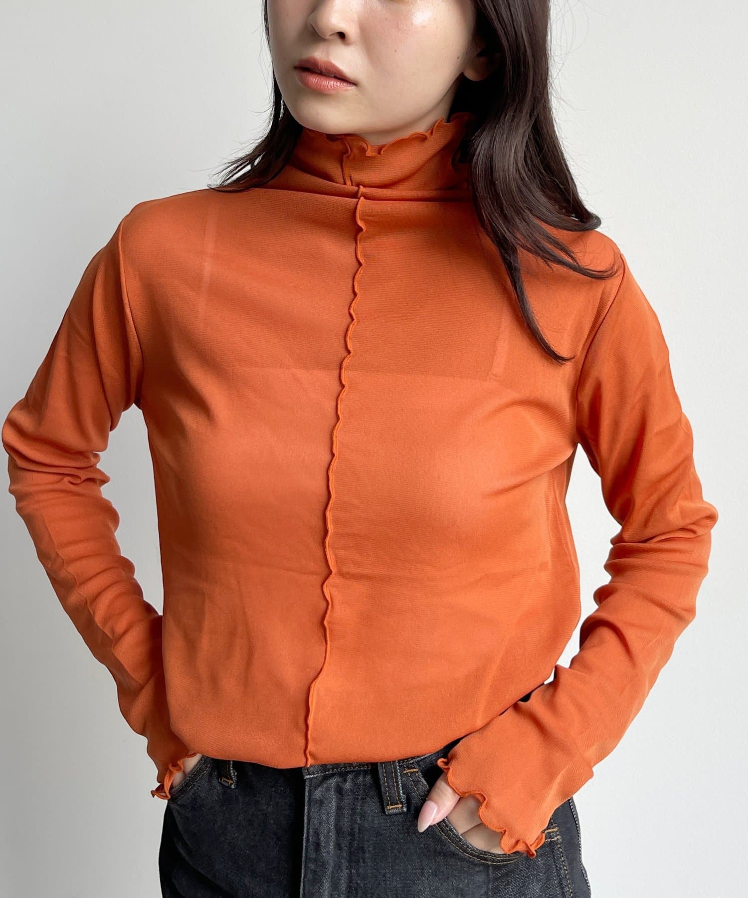 インナー使いも楽しめるちょびハイネックなメロートップス