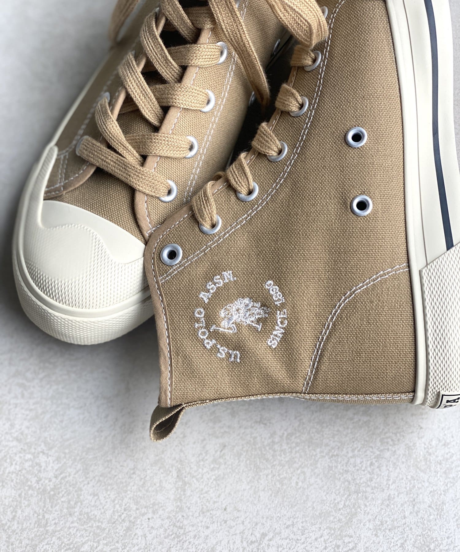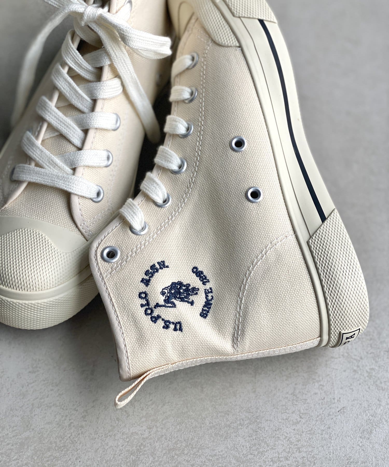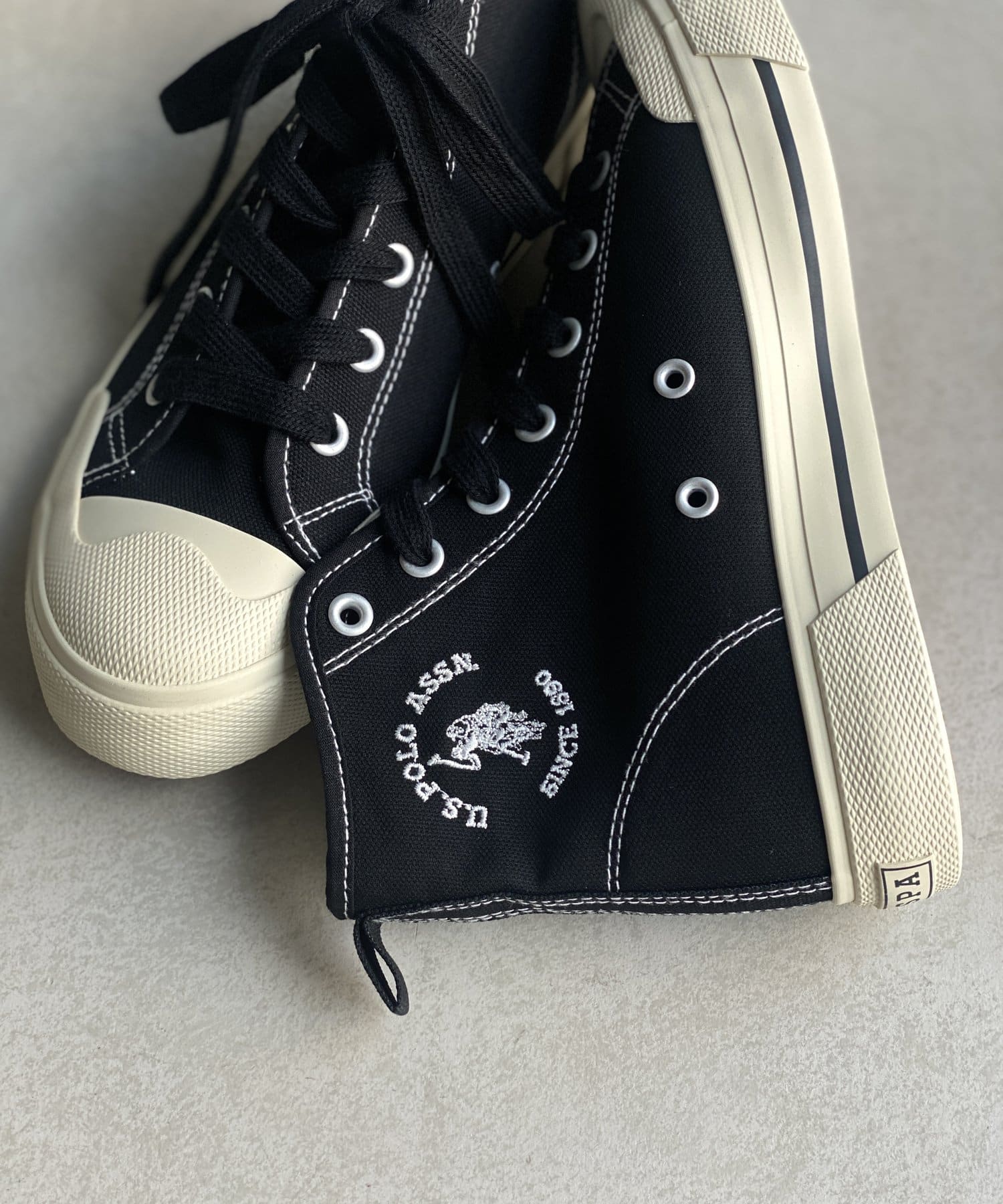 毎シーズン大人気のユーエスポロアッスンから、ベーシックで使い勝手の良い、ロゴデザインが目をひくハイカットスニーカーがリリースしました!オールシーズンお使い頂けるキャンバス素材で、デイリーユースにもぴったりなデザインです!ベーシックなカラーリングで幅広いスタイルにあわせやすいアイテムで流行り廃りなく定番アイテムとして長く愛用頂けます◎