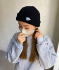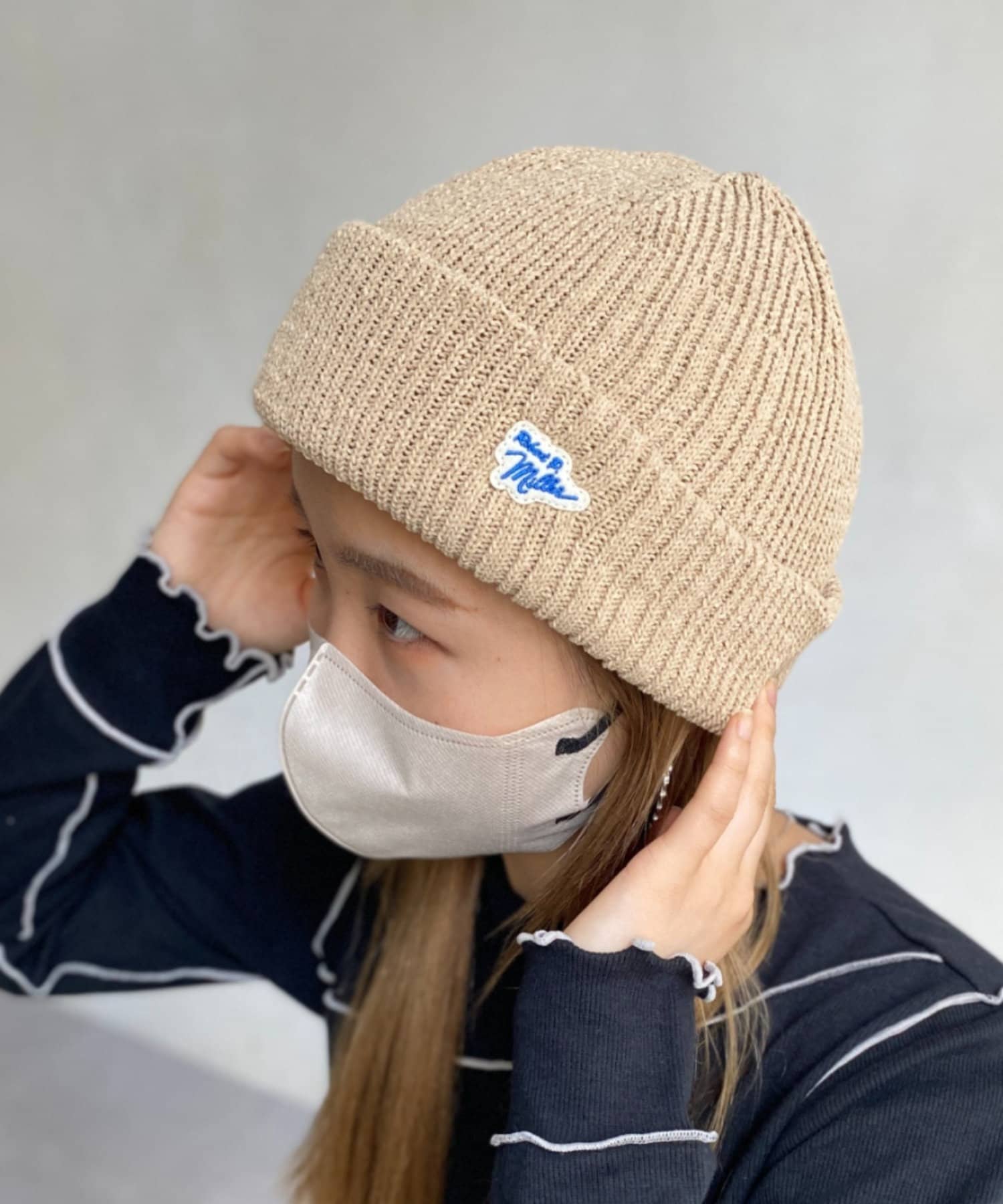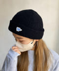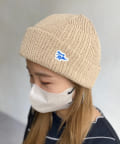 ブランドのネームタグをあしらったシンプルなルックスのニット帽