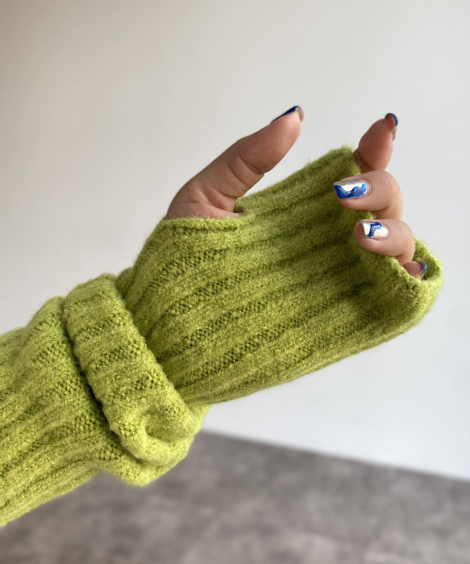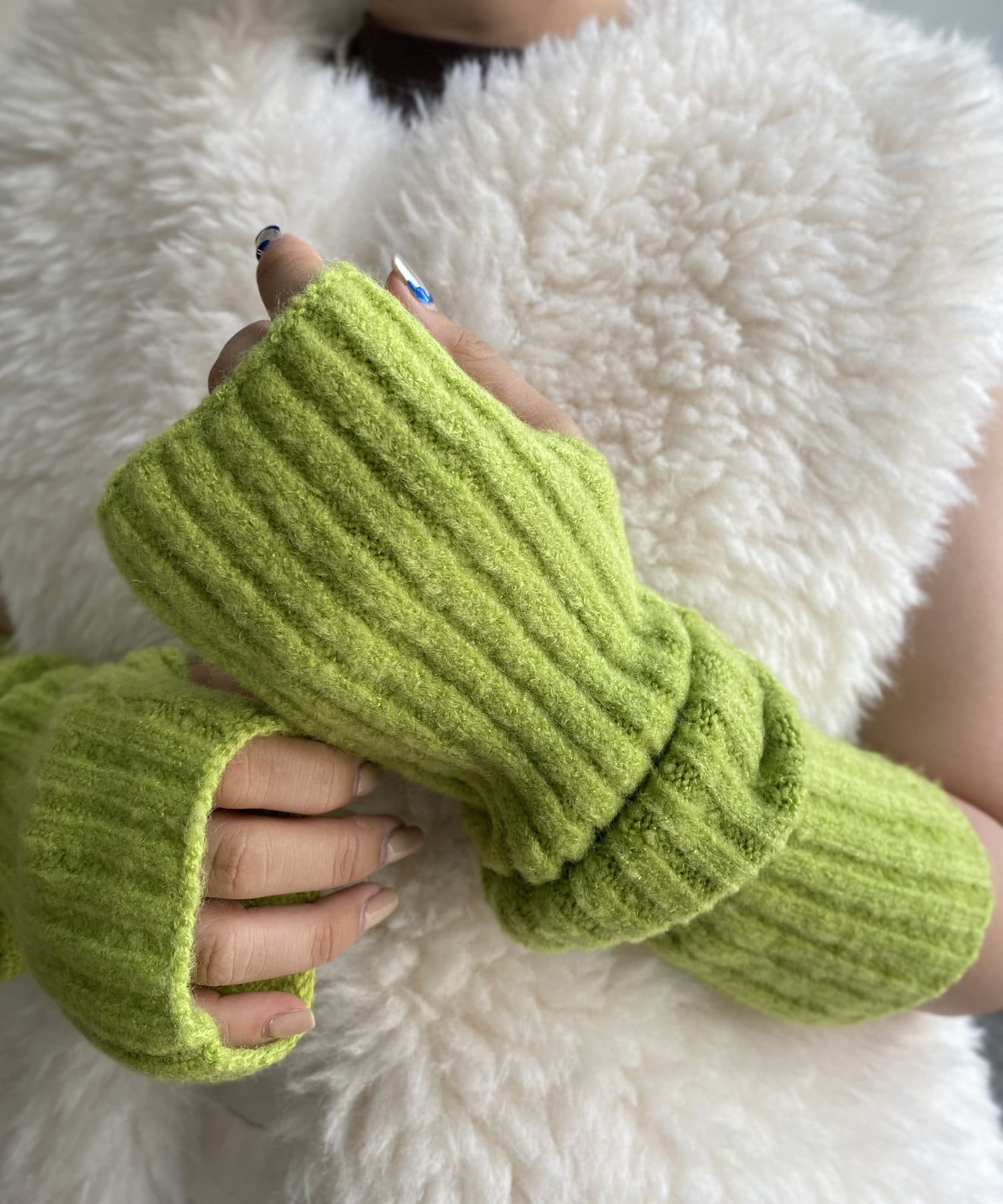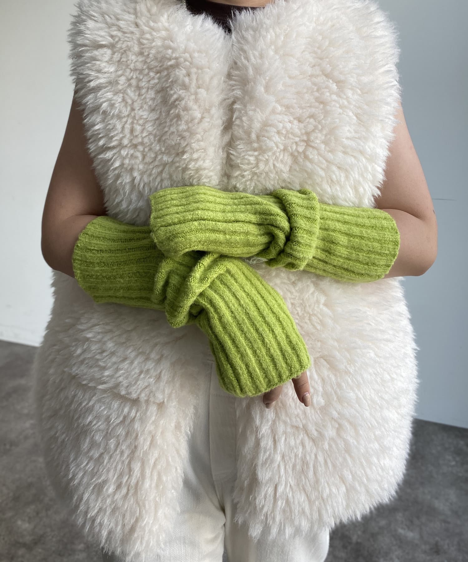 ふわふわのリブ編みで温かく、トレンド感をプラスして着こなせるアームウォーマー。