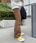 定番となりつつあるフレアパンツは、ストレートとは一線を画したシルエットながらも抑えられたフレアパンツなのでブーツからスニーカー、サンダルまで合わせられる懐の深さが特徴です。またデニムと他にコーデュロイ素材も秋冬らしい雰囲気も味わえます。