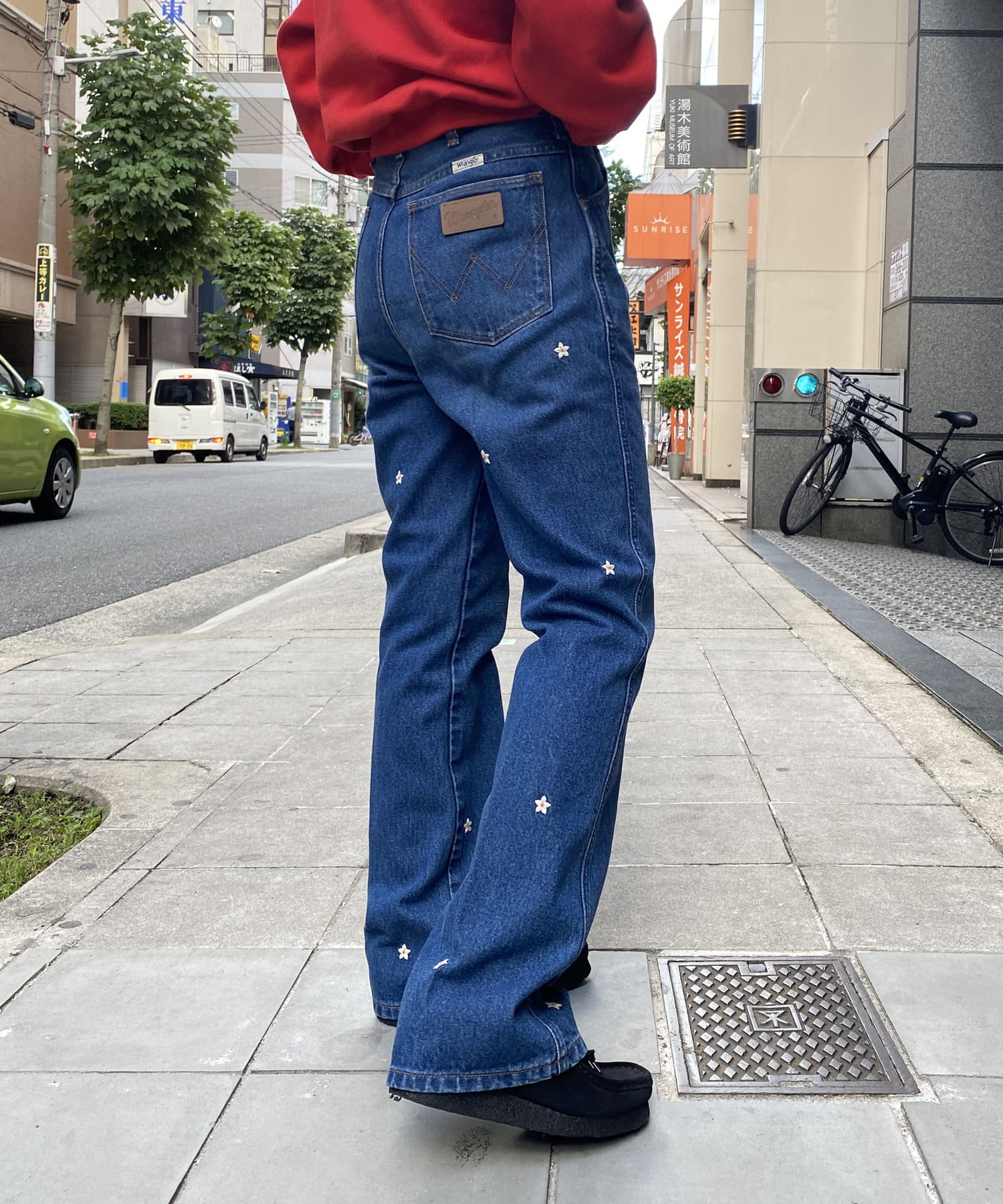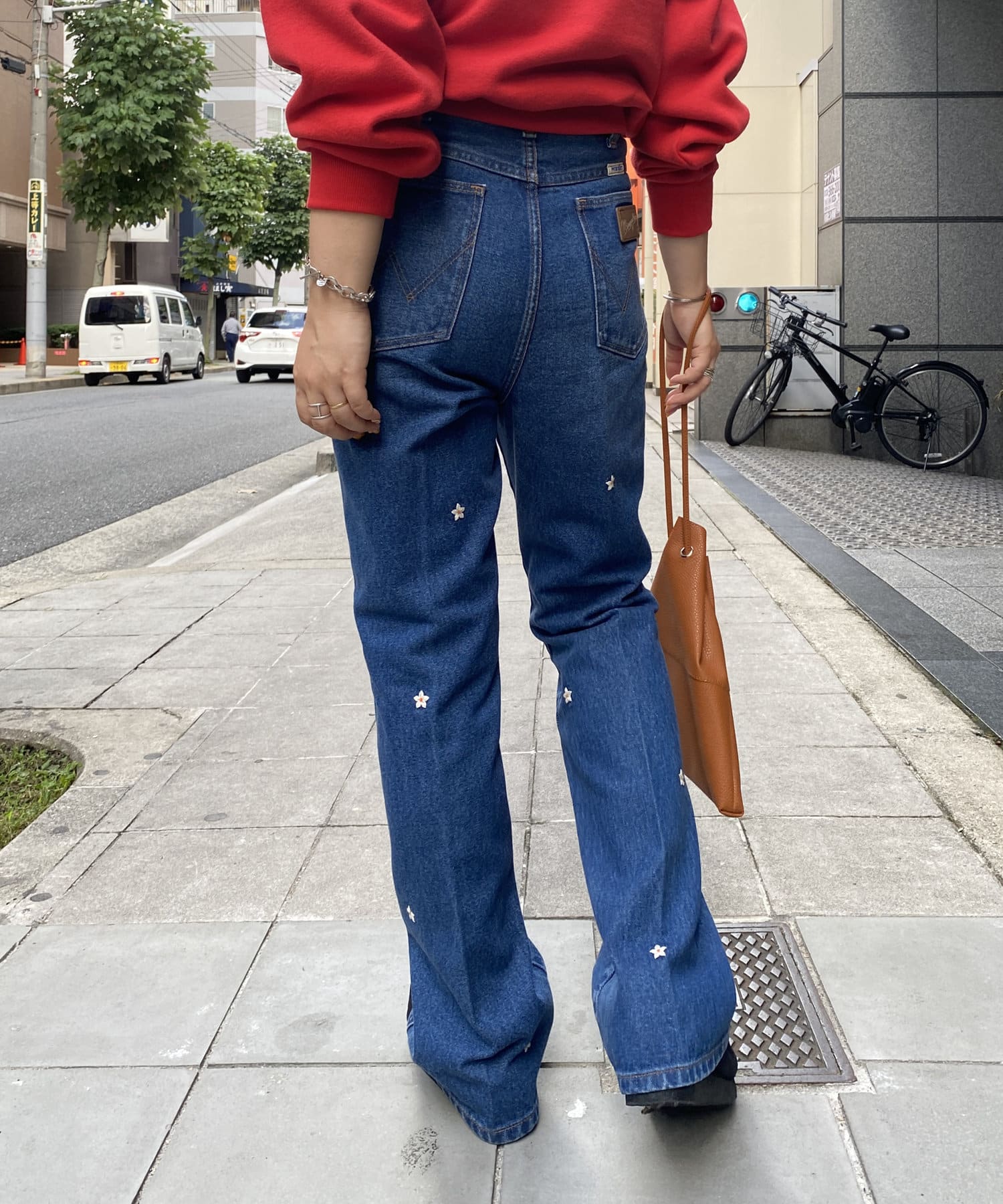 Wranglerの雰囲気とマッチするリメイクや刺繍加工がアクセント