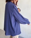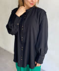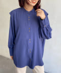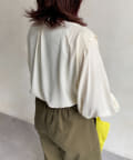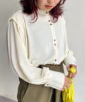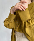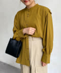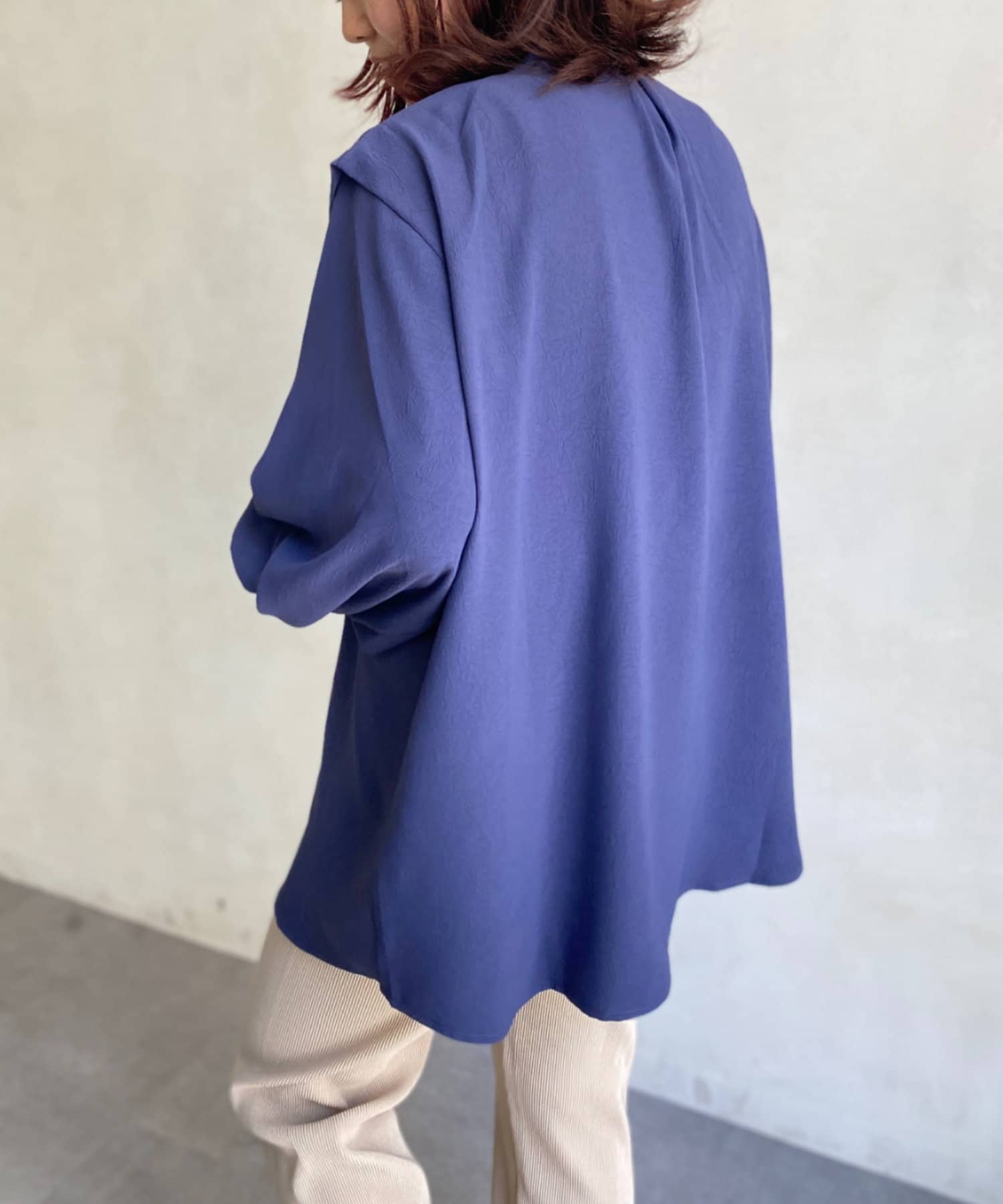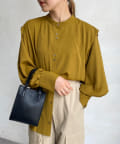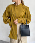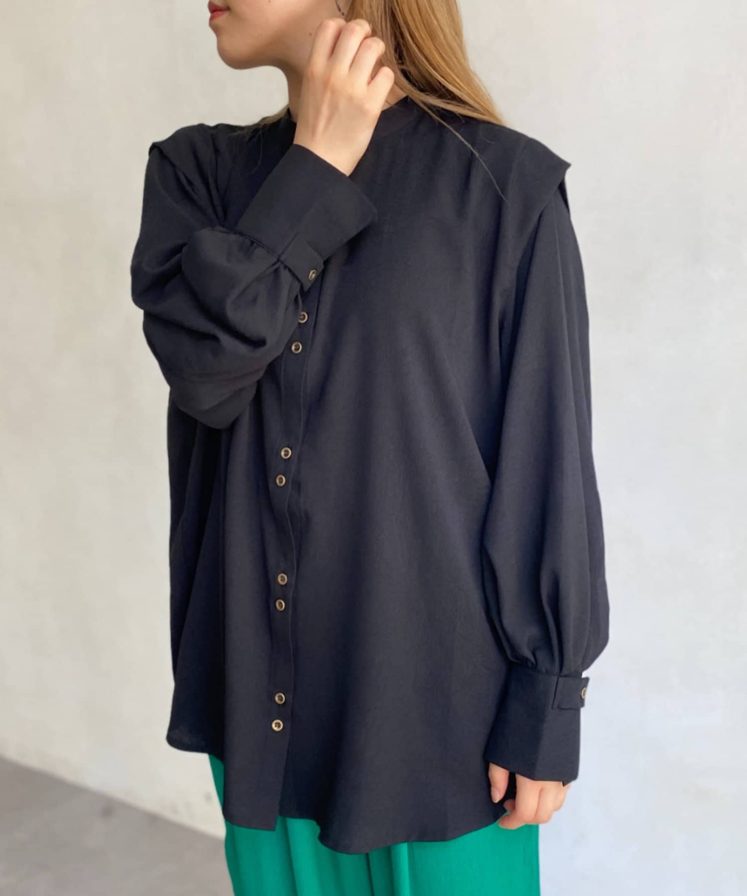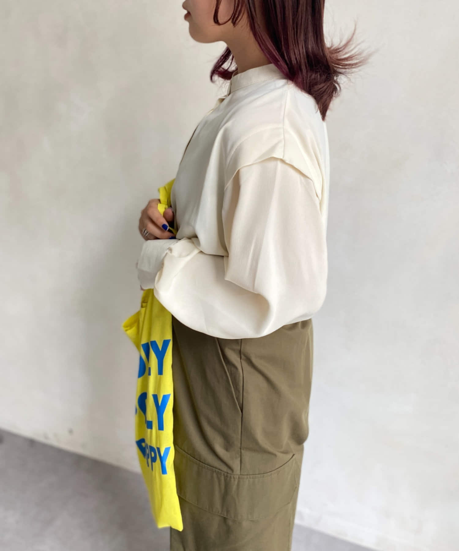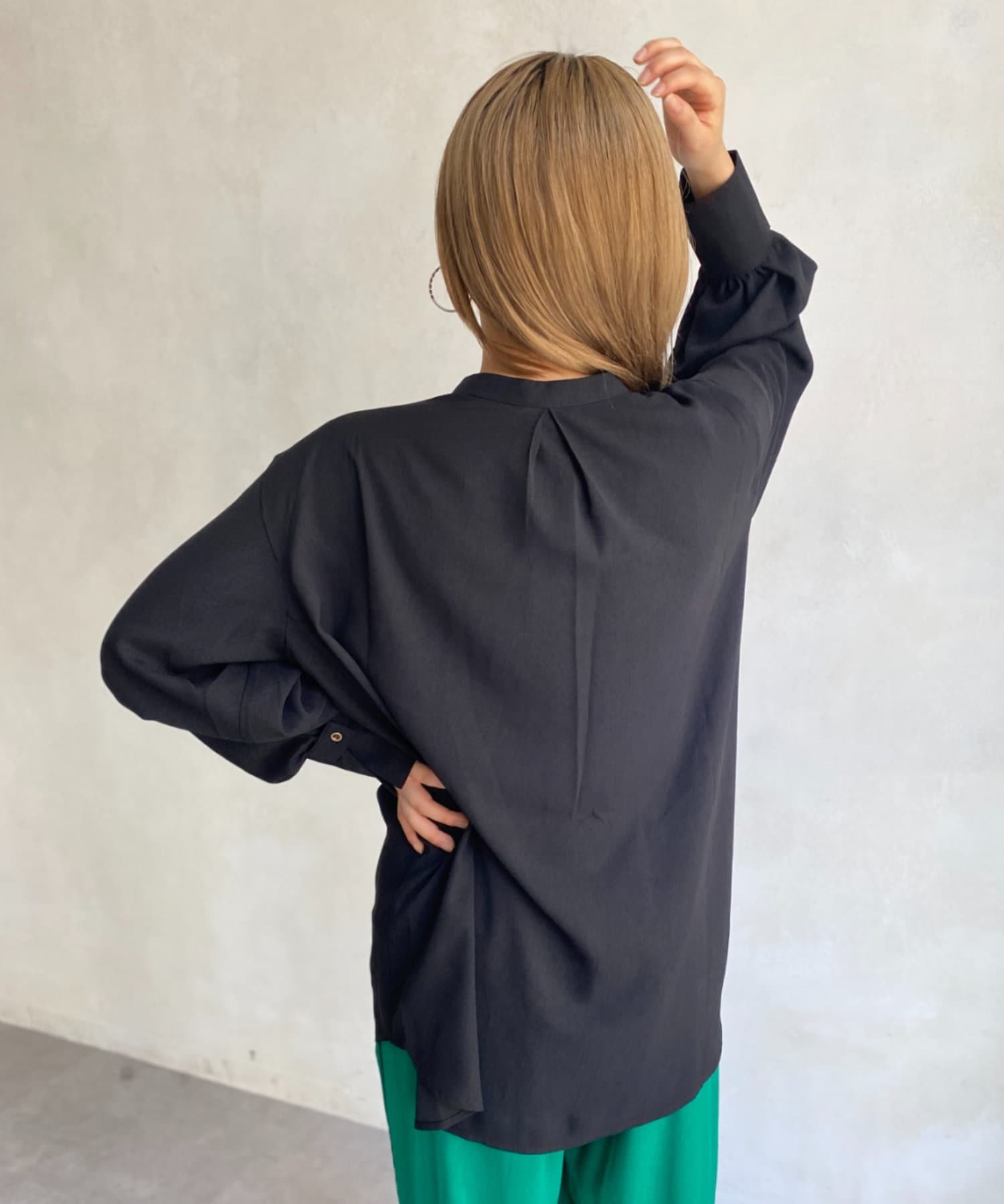 襟元は甘くなりすぎないバンドカラーなので、パンツスタイルにもピッタリな1枚です◎