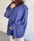 少しレトロな幅広カフスがスタイリングに程よい抜け感を与えてくれます。袖口のベルトがアクセントになり、コーデをワンランクアップ。よく見ると表面変化のあるエンボス加工を施しており、シワ感さえもナチュラルな風合いに感じられる上質な1枚です。