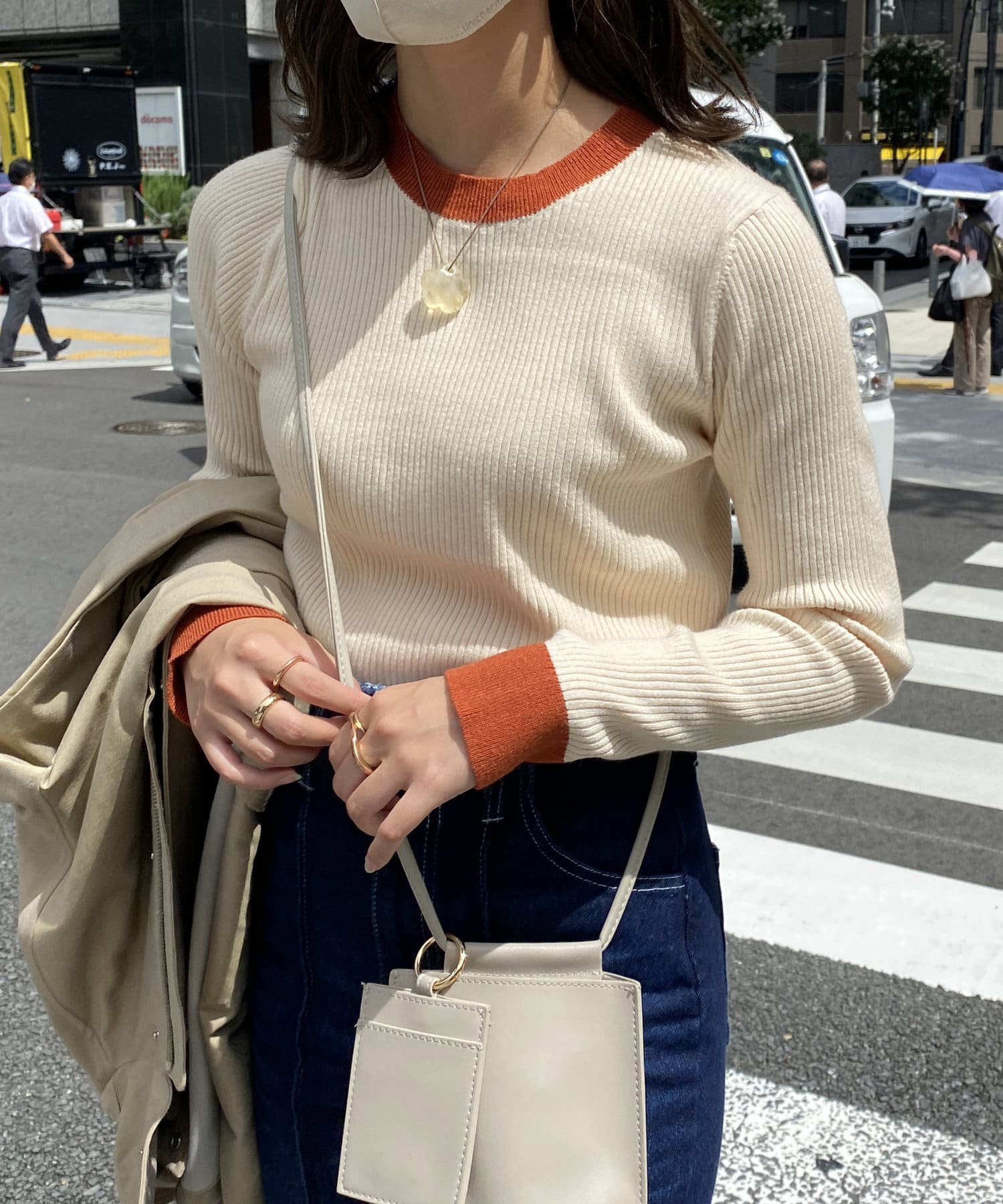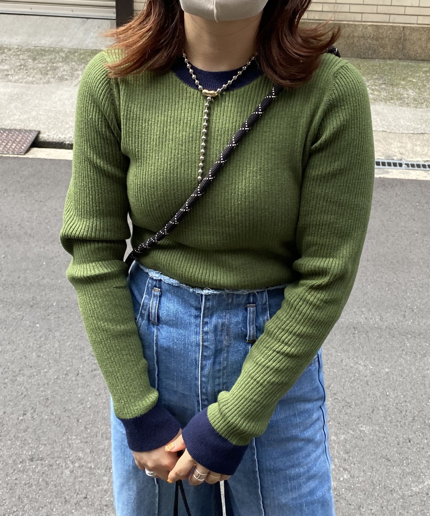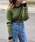 着回し力抜群なリブニット!配色デザインがアクセントになって可愛いポイント。