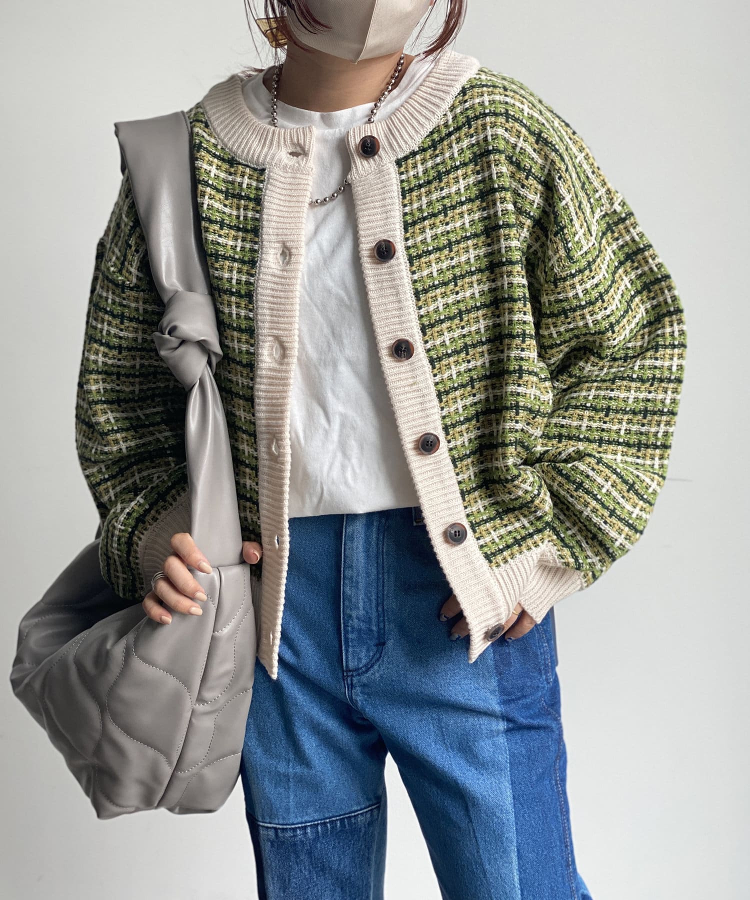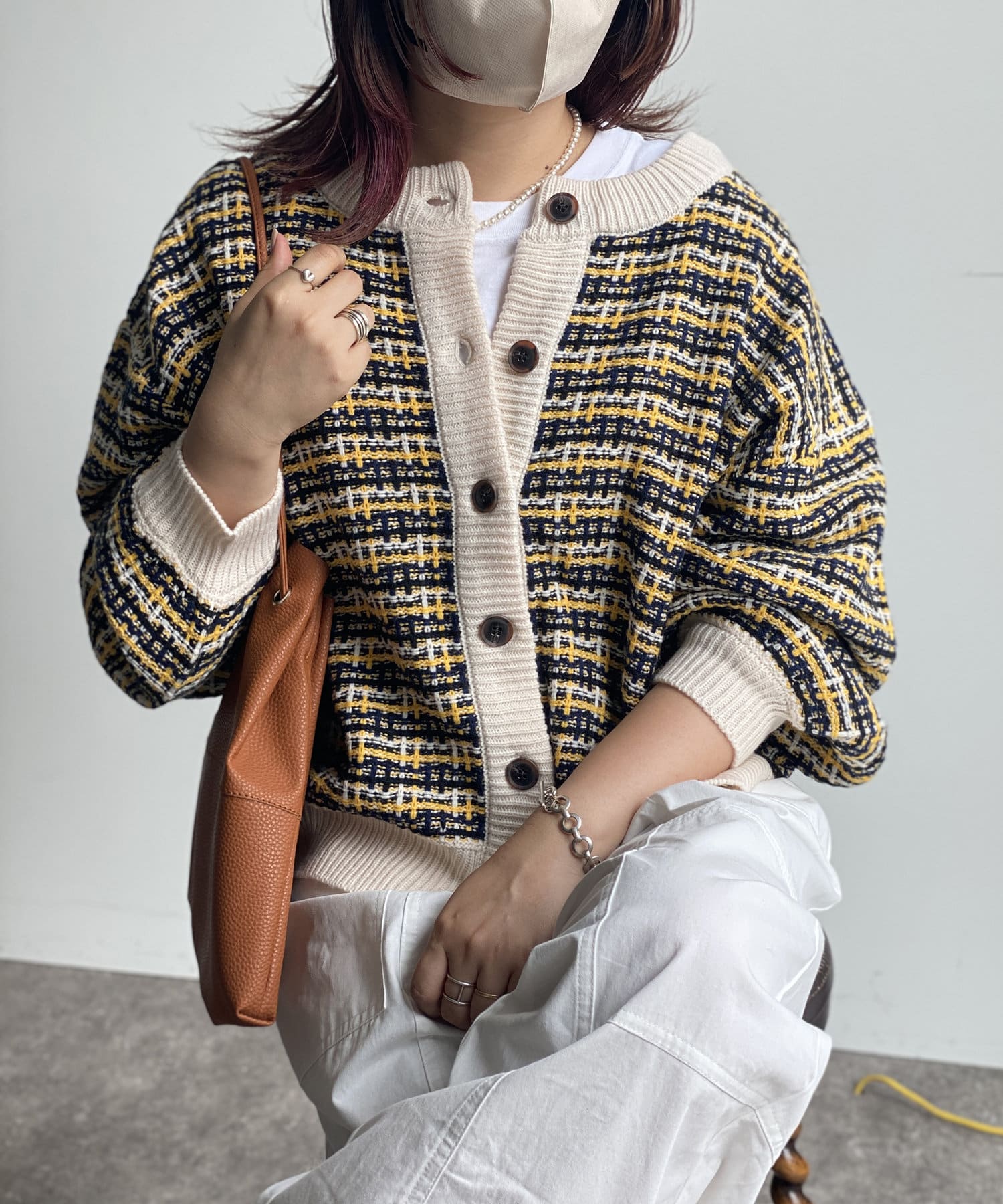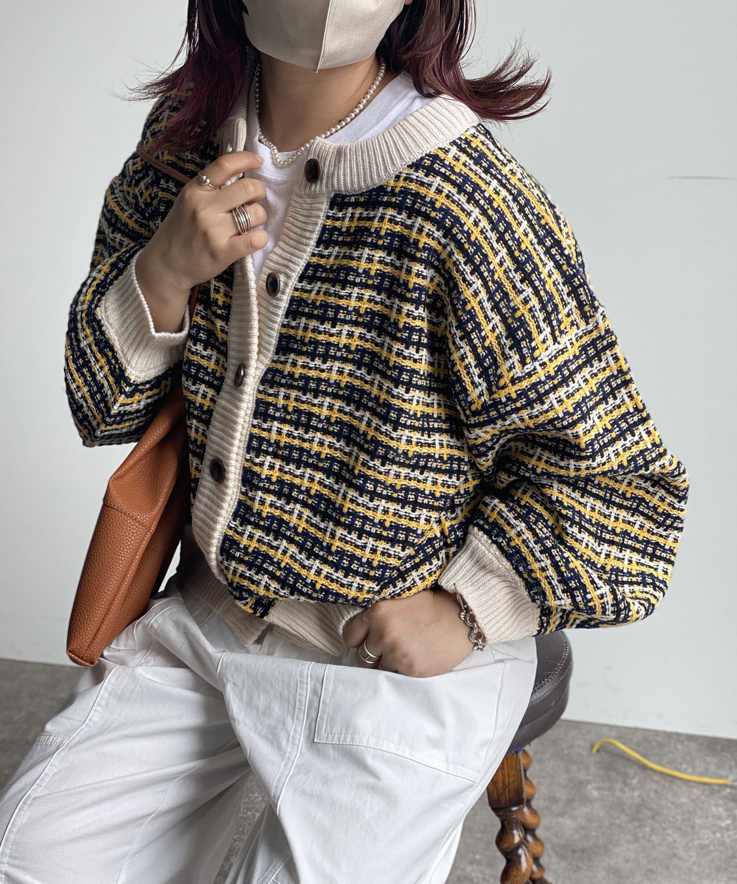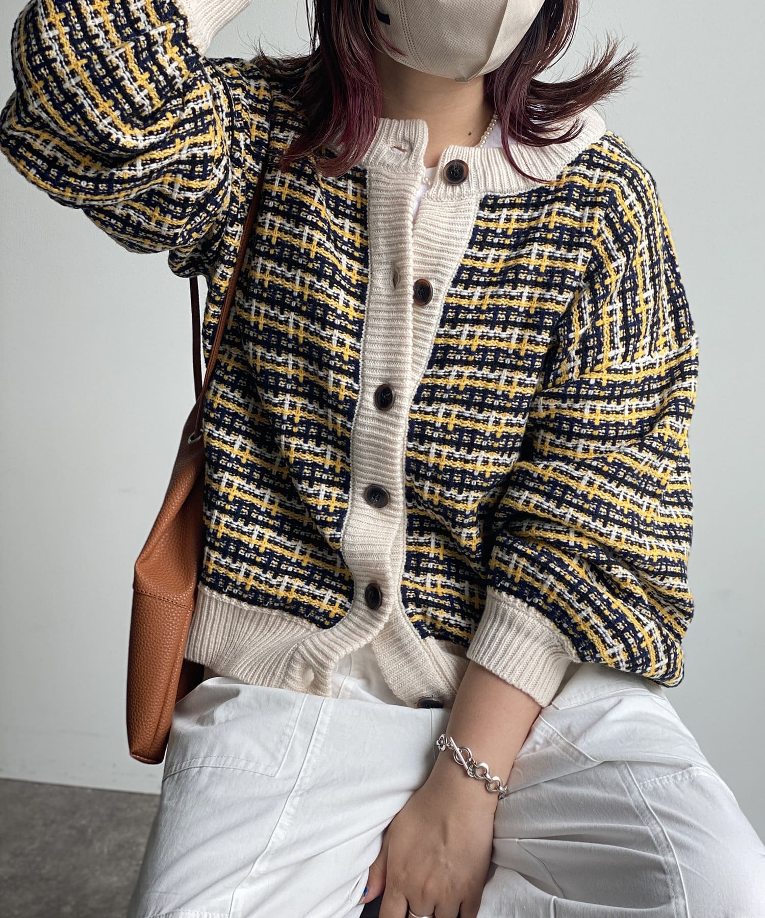 • CPCM(シーピーシーエム) カラージャガードニットカーディガン