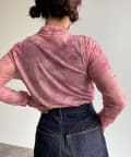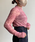 ソフトで柔らかく程よい透け感のシアー素材。袖口と襟元のメローデザインとセンターステッチがコーディネートのアクセントになります。