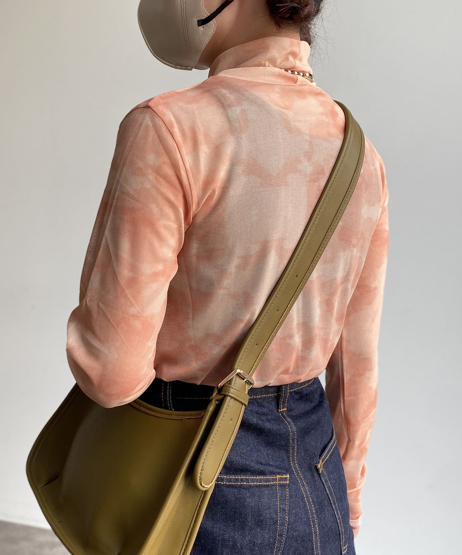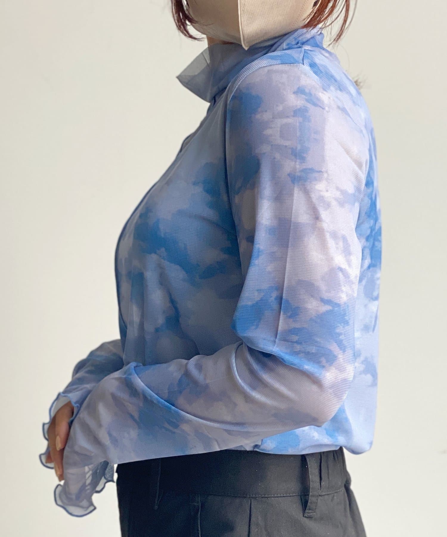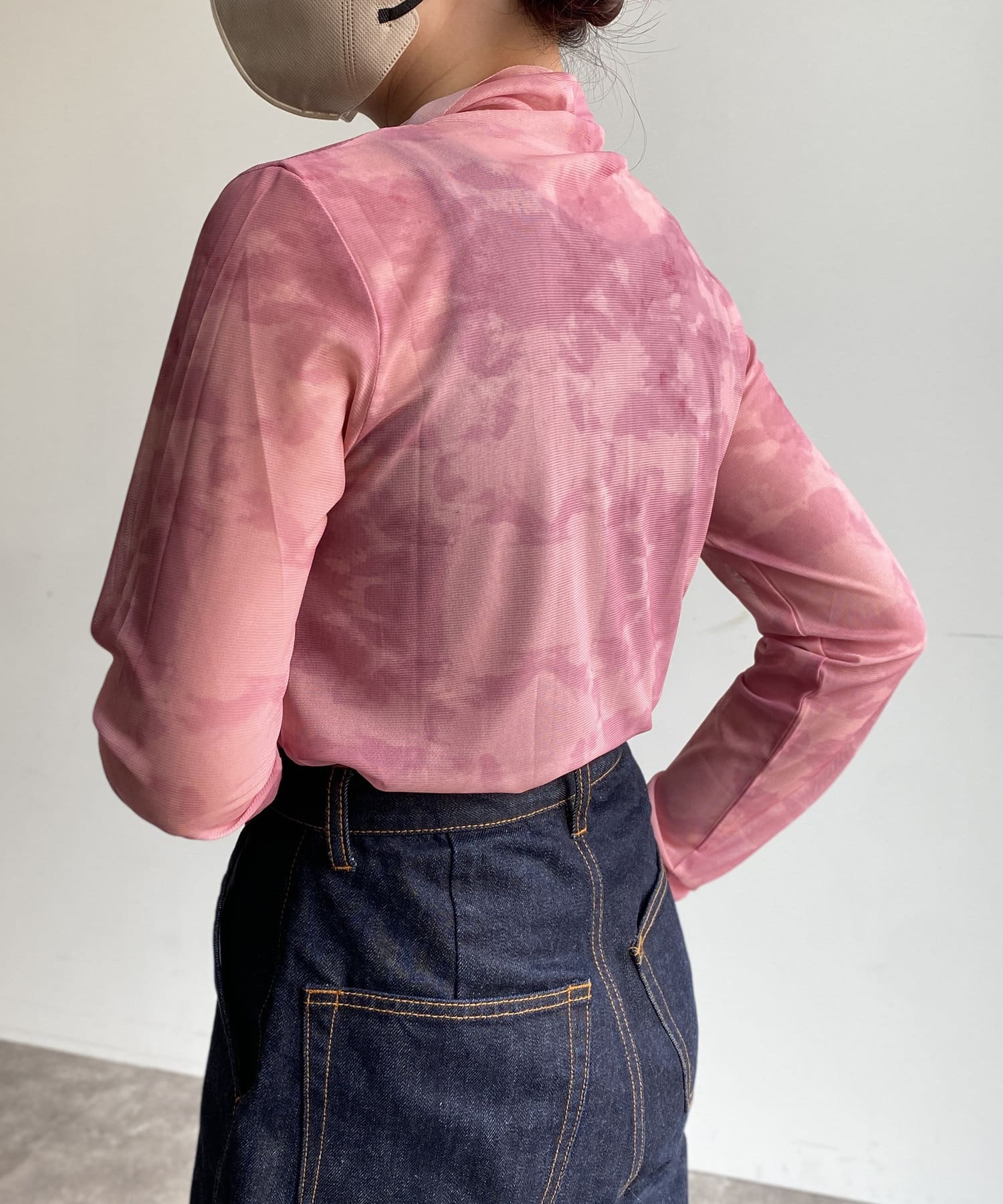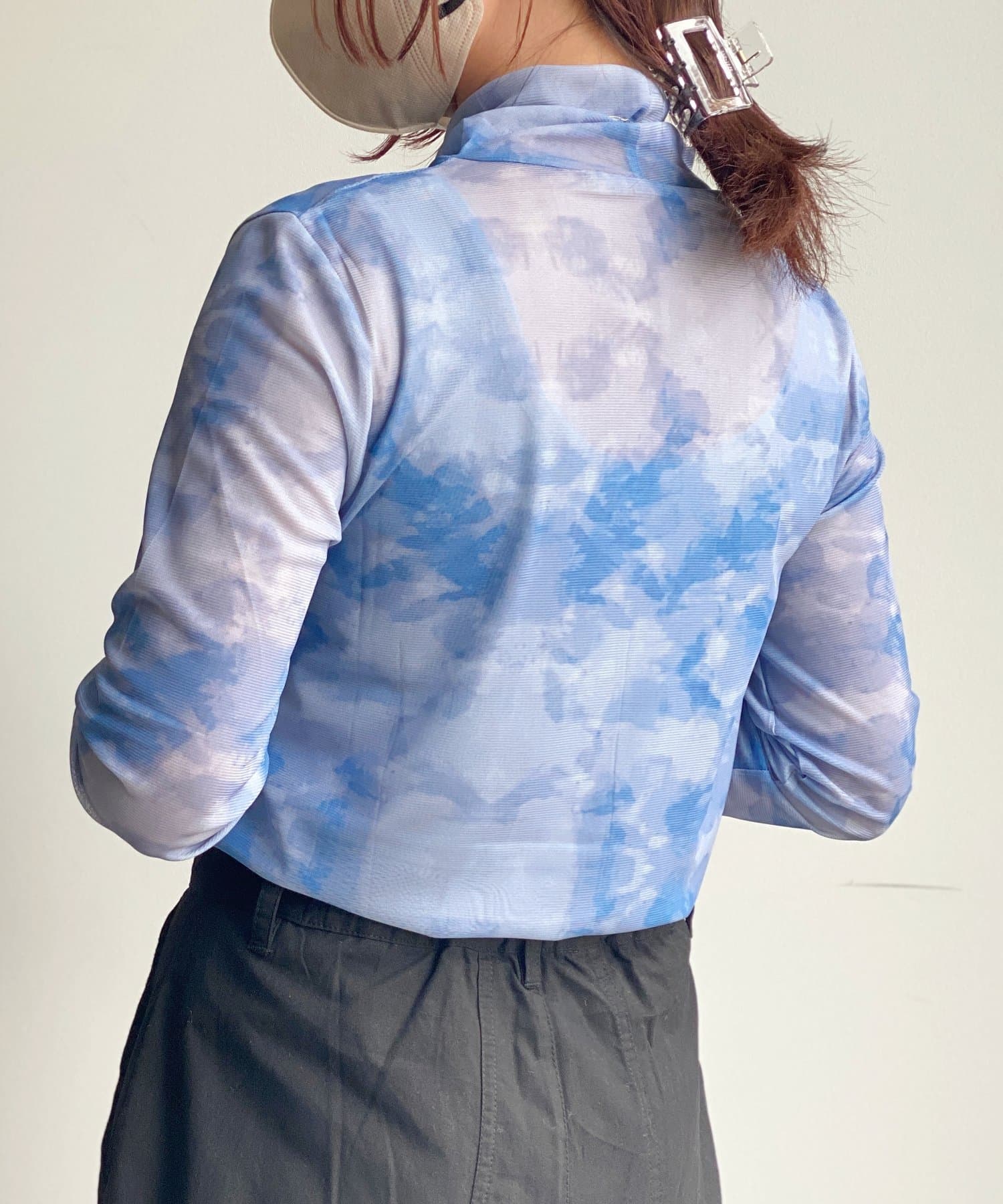 レイヤードコーデに欠かせないシアートップスに淡くアンニュイなマーブル柄が一気に旬なスタイリングにアップデート。