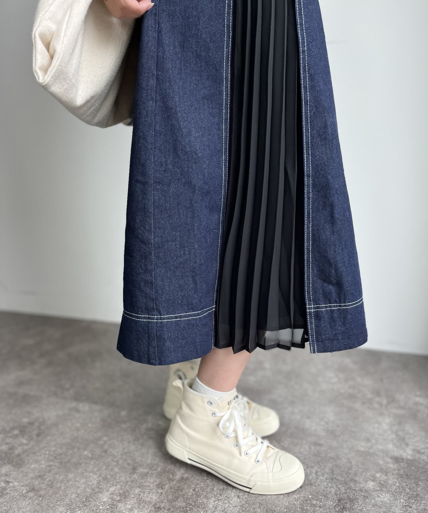 歩くたびにチラ見えする配色プリーツがかわいいポイント!
