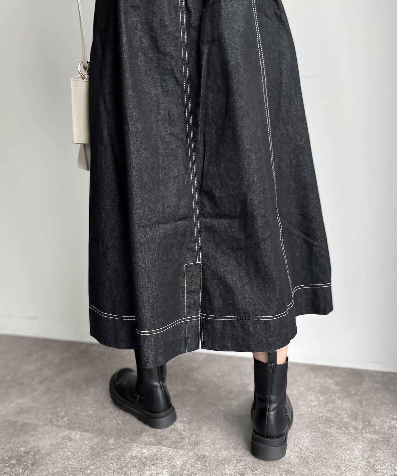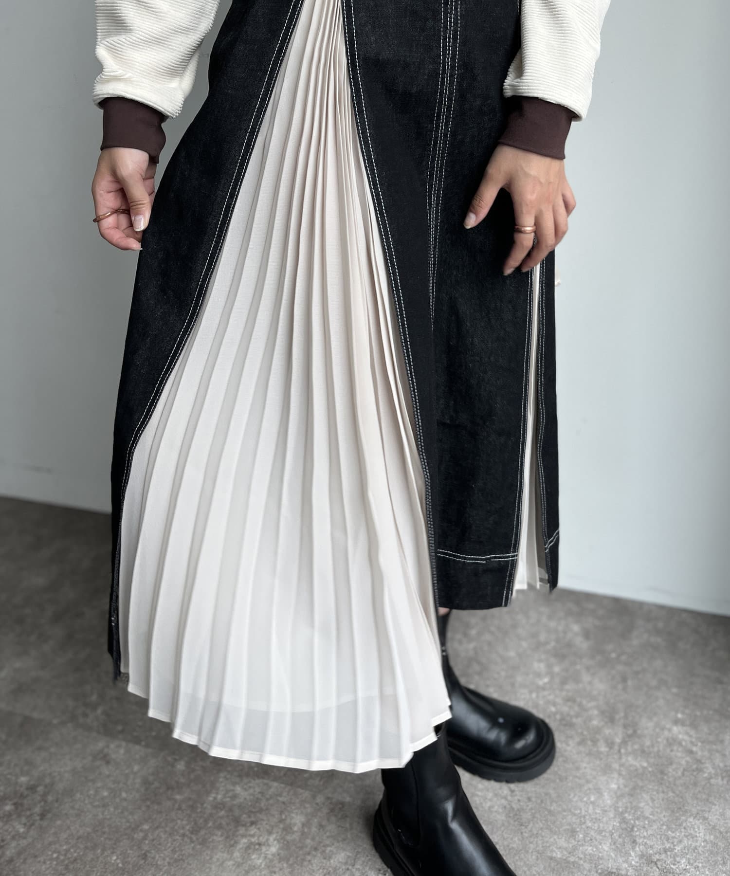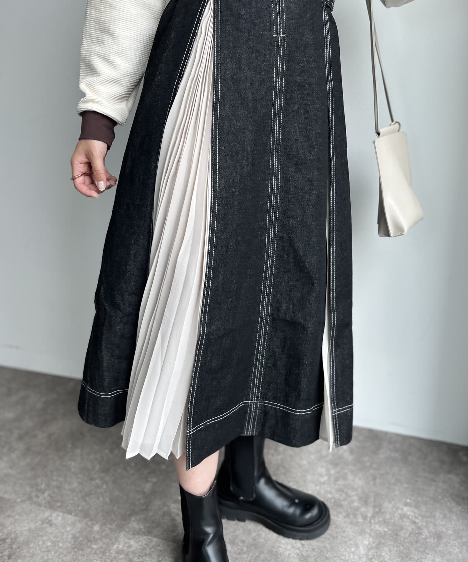 ZIP付プリーツ切替ステッチジャンスカ