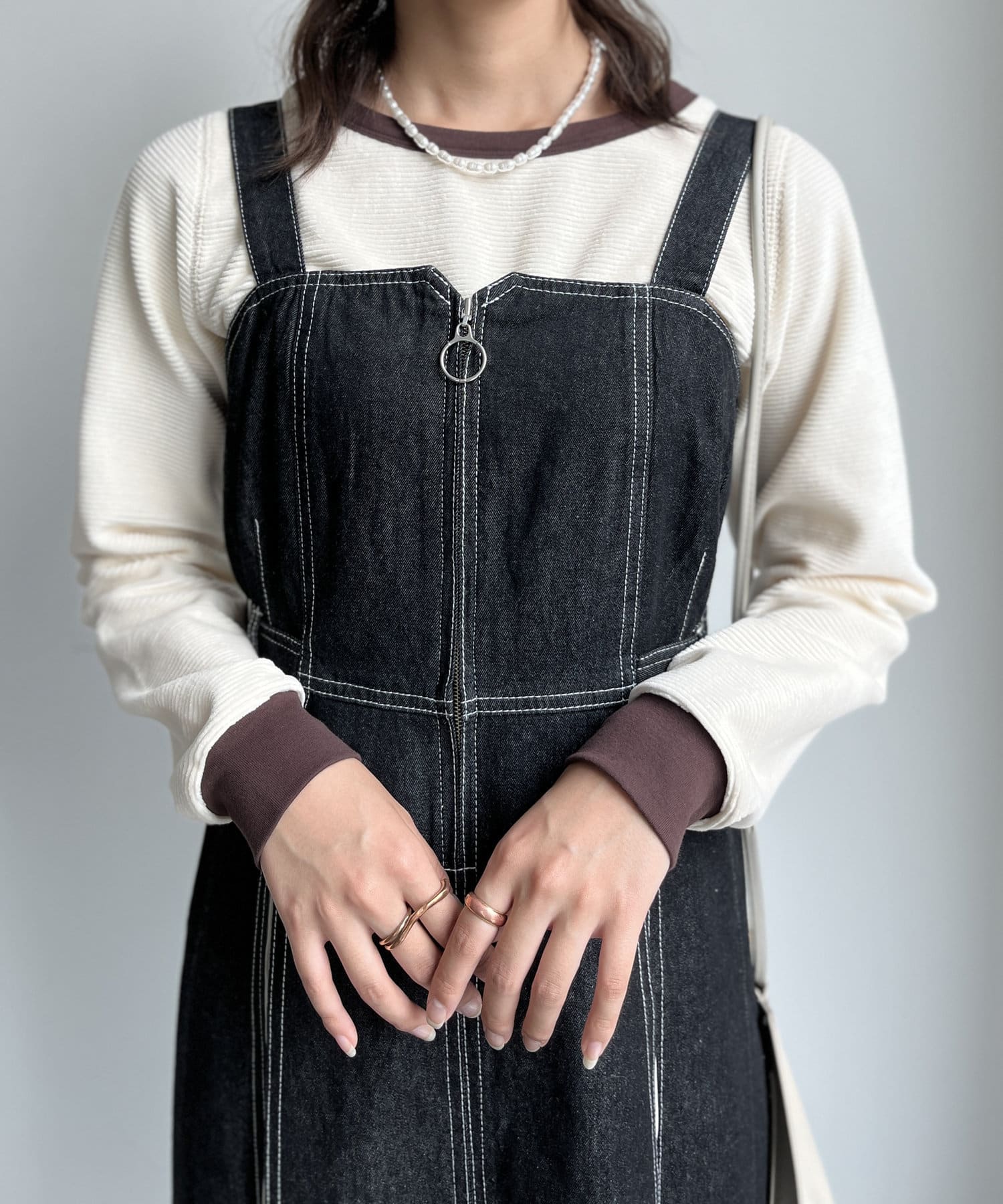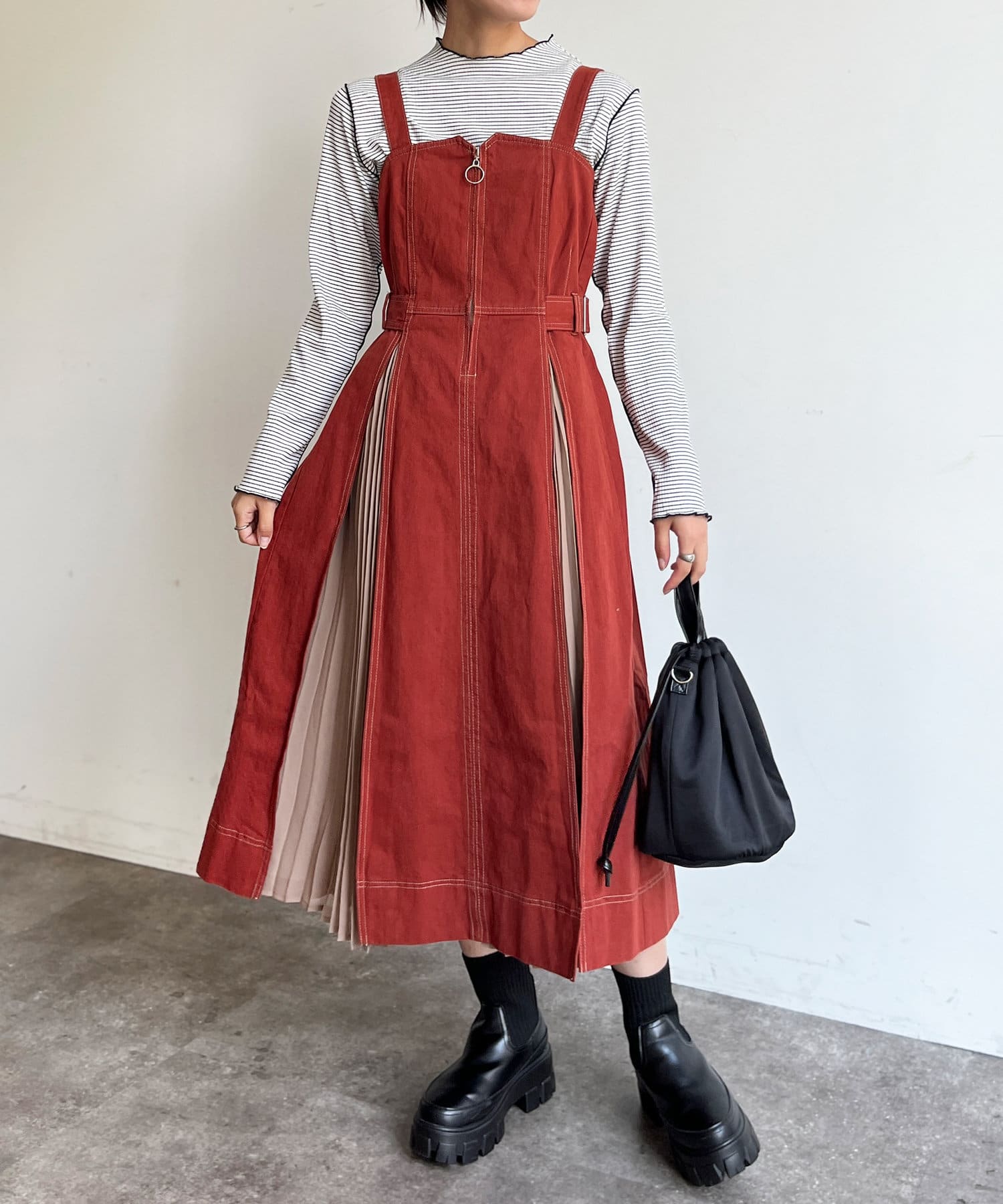 印象の変化をたのしめるジャンパースカートです◎
