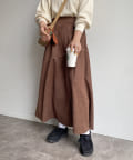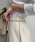 上品なフレアスカートは、トップスをタックインするのがスタイリングにメリハリが出ておすすめです。