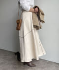 配色パイピングでアクセントを効かせながら、たっぷりと生地を使用した上品なフレアシルエットが風に揺れるたびに気分を高めてくれます。