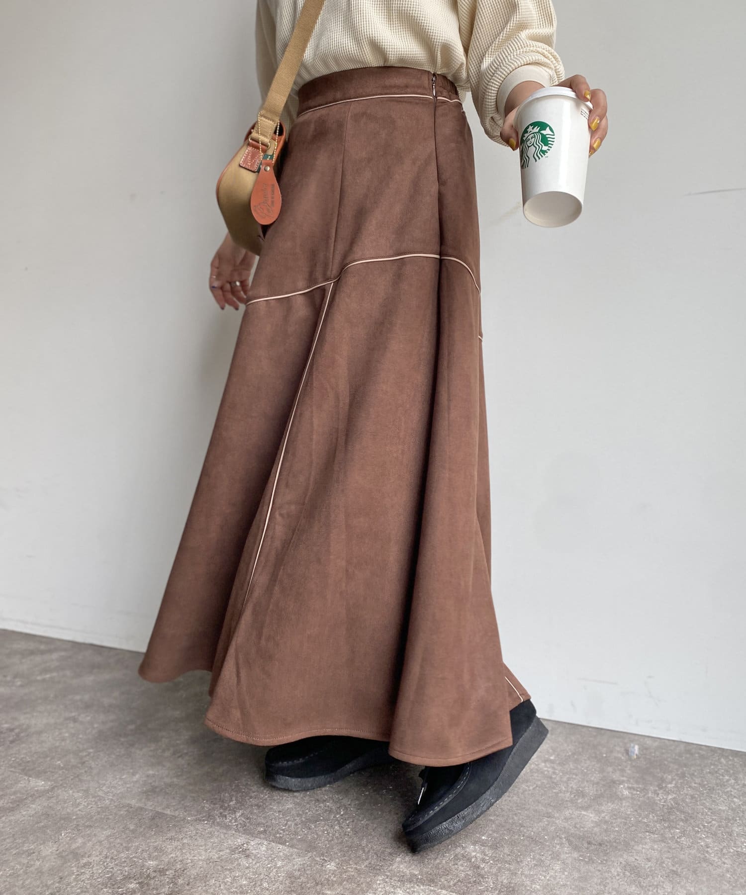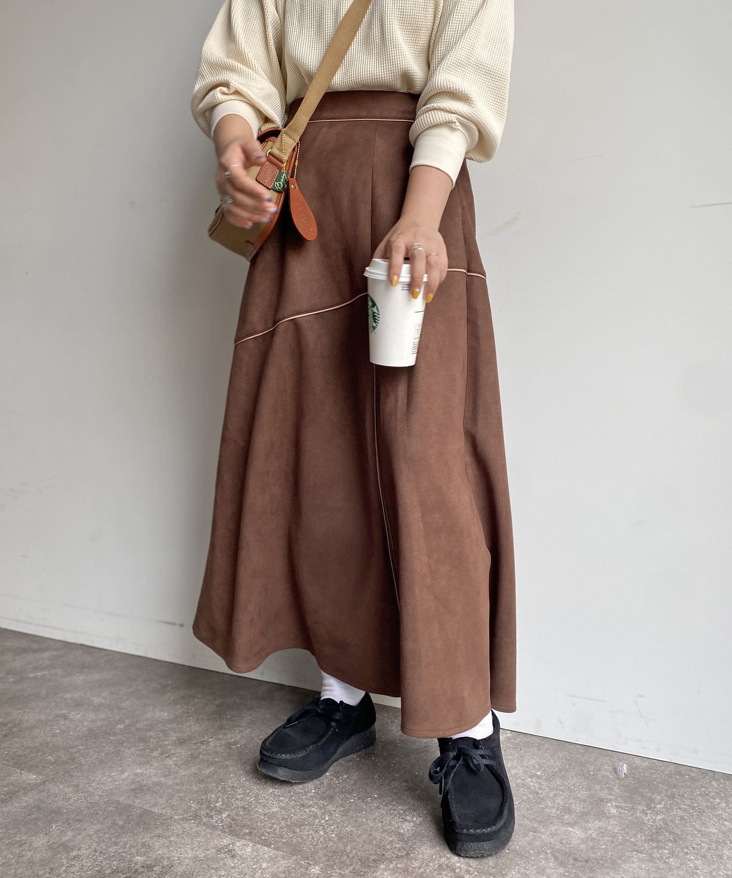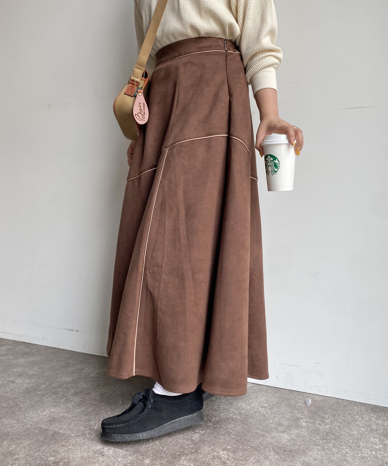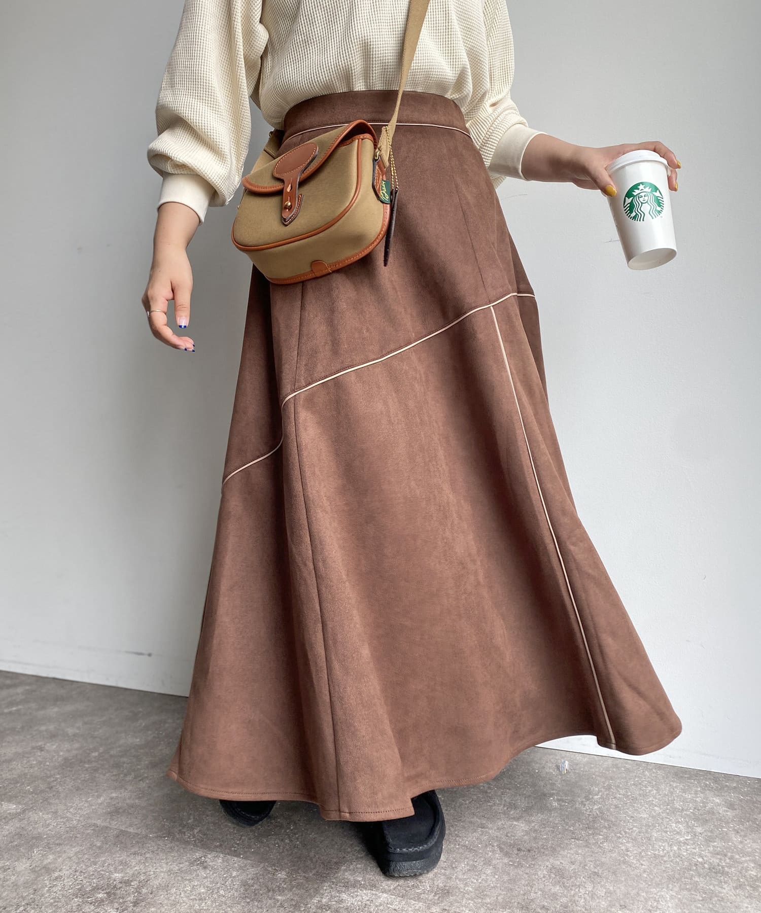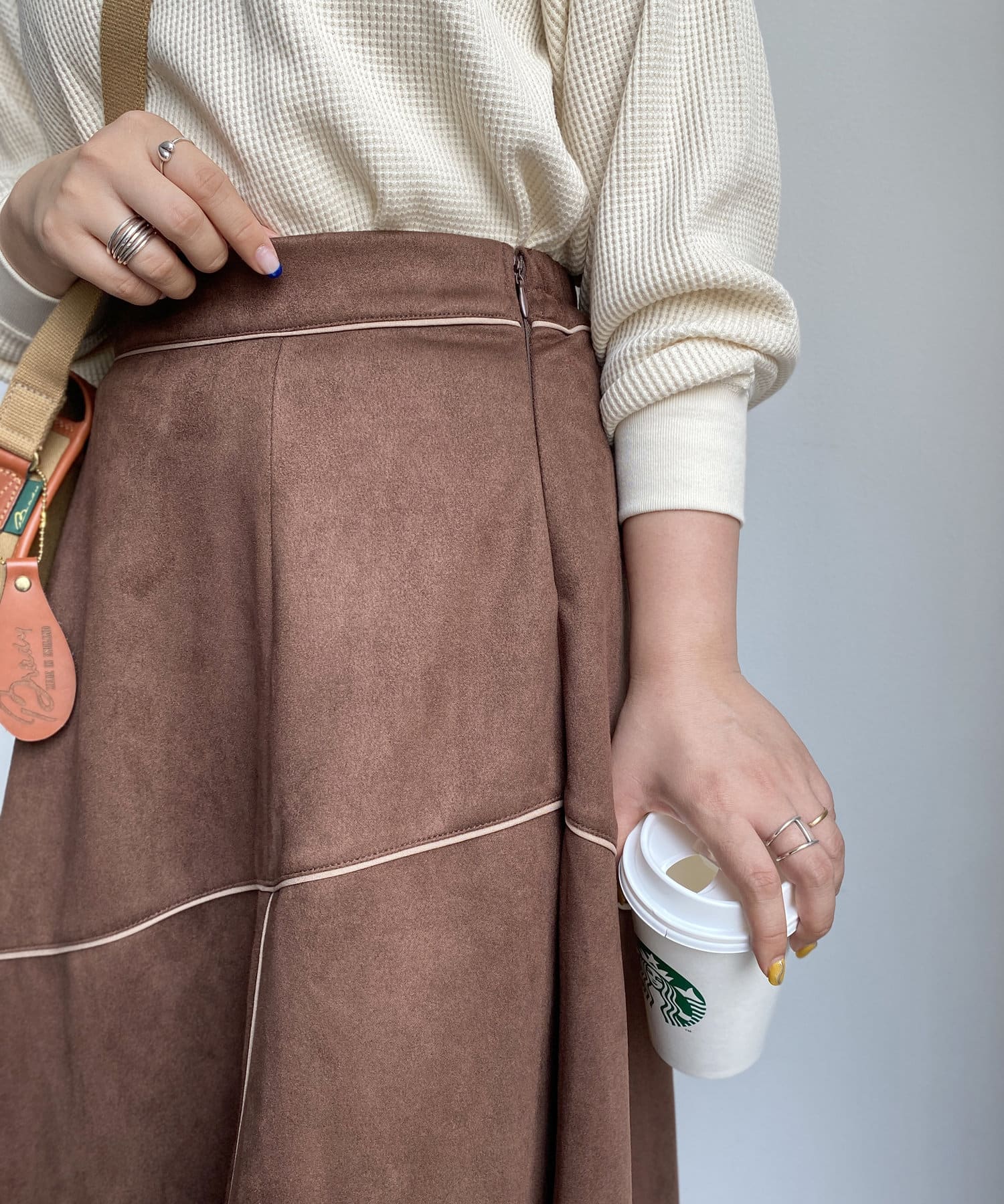 フェイクスエードの生地が季節感たっぷりのフレアスカート。