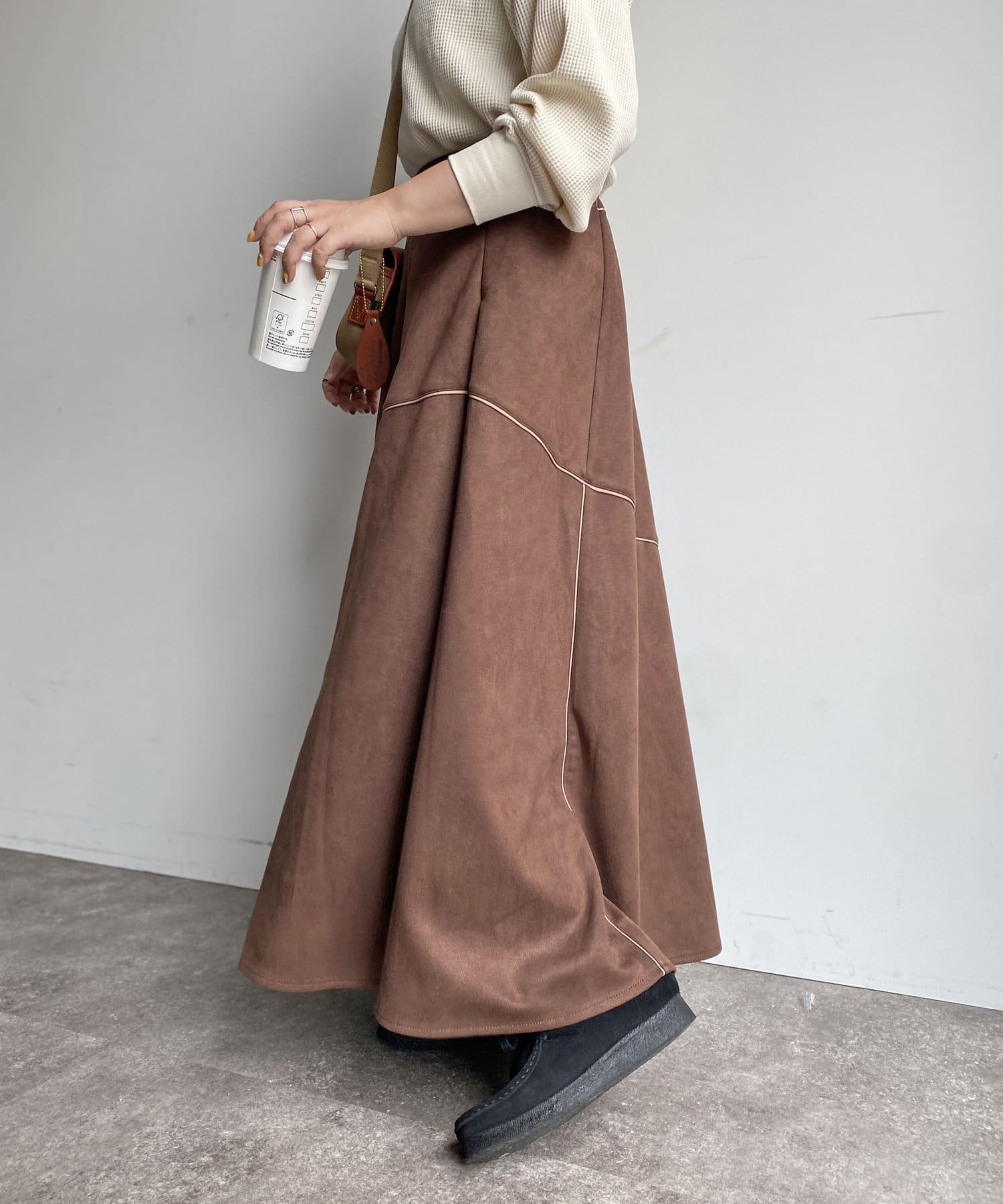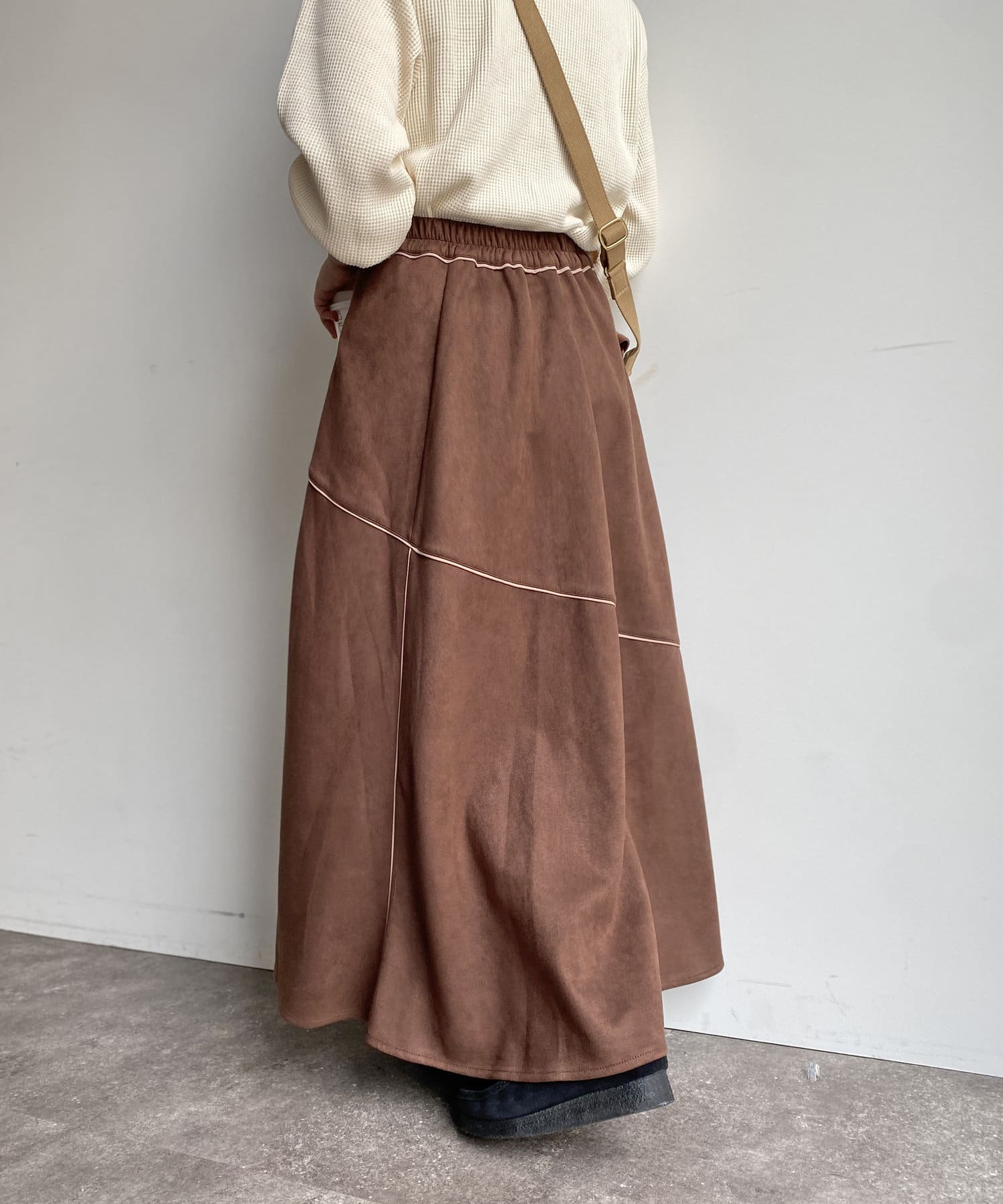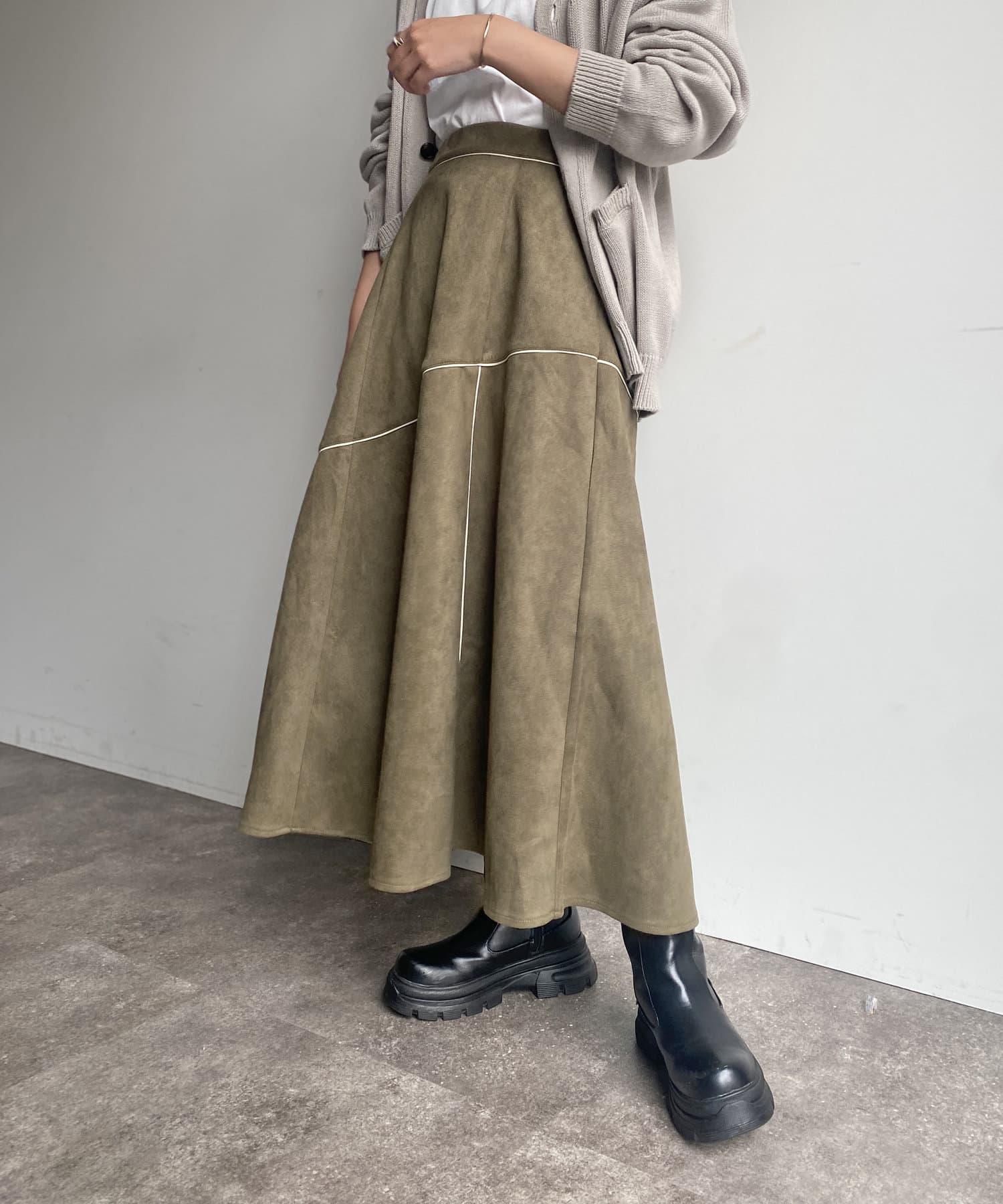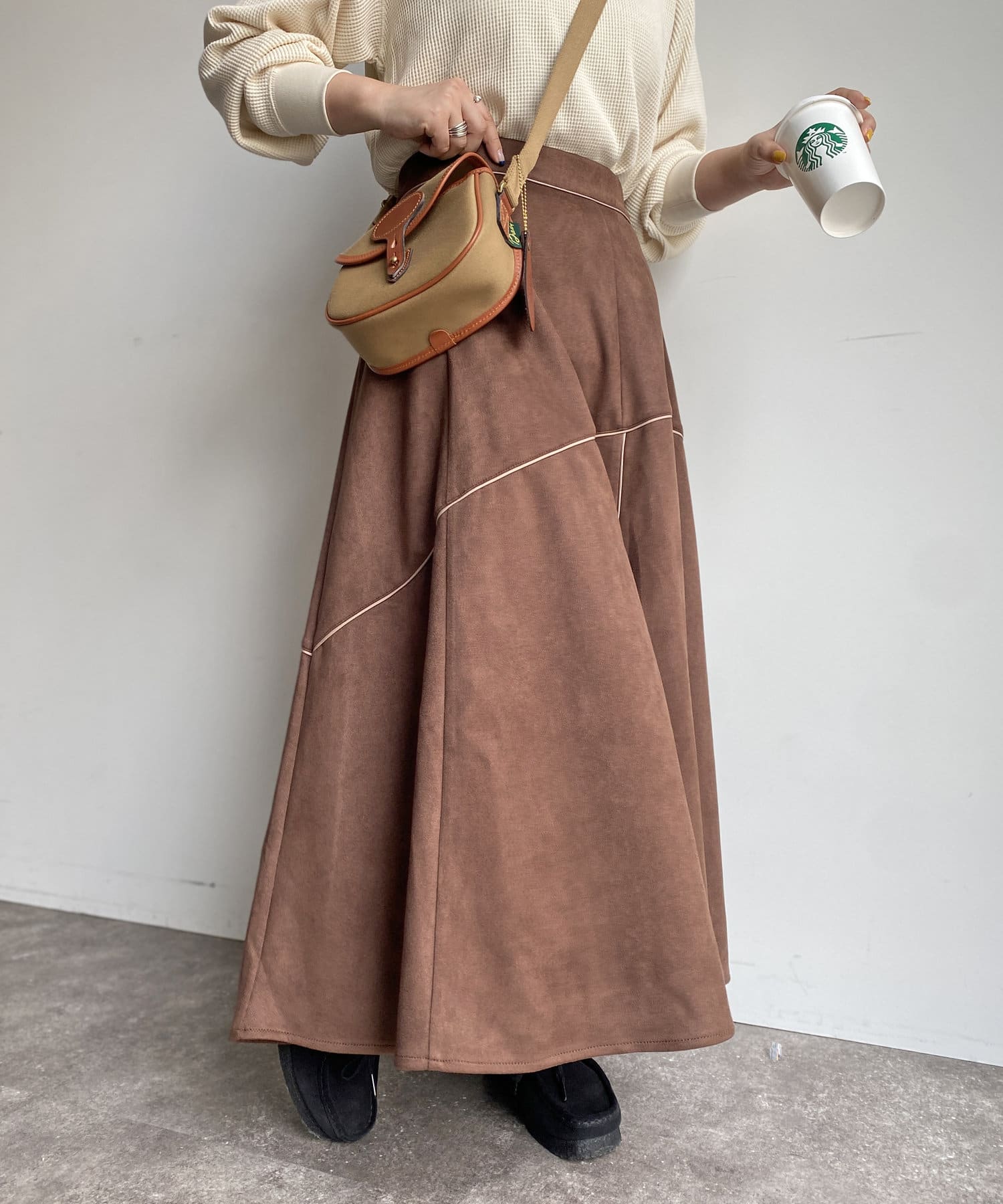 フェイクスエードの生地が季節感たっぷりのフレアスカート。