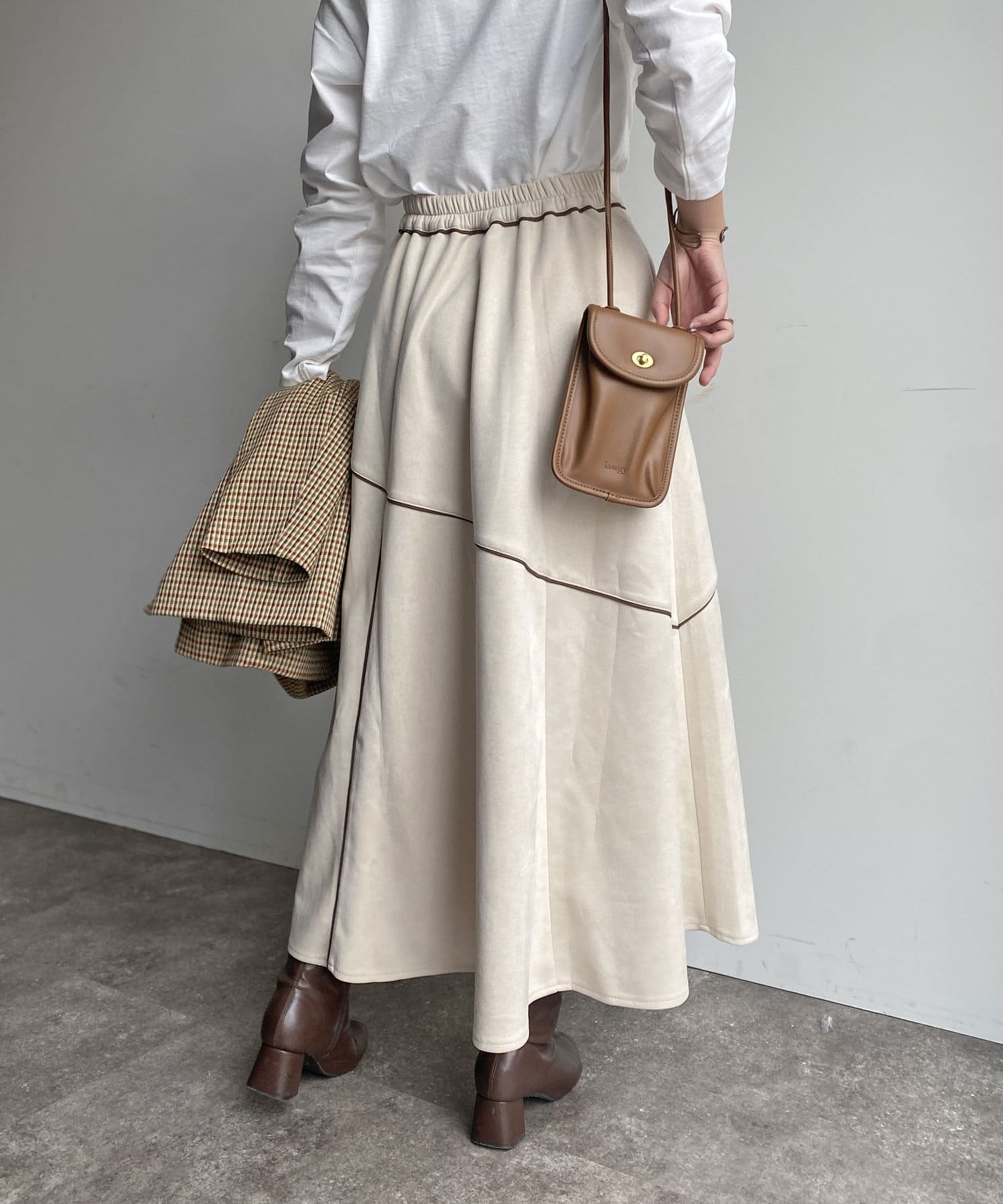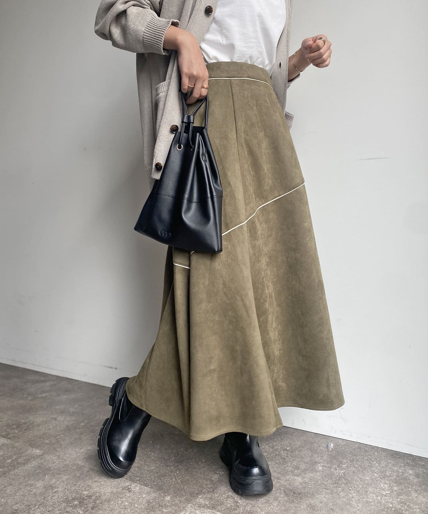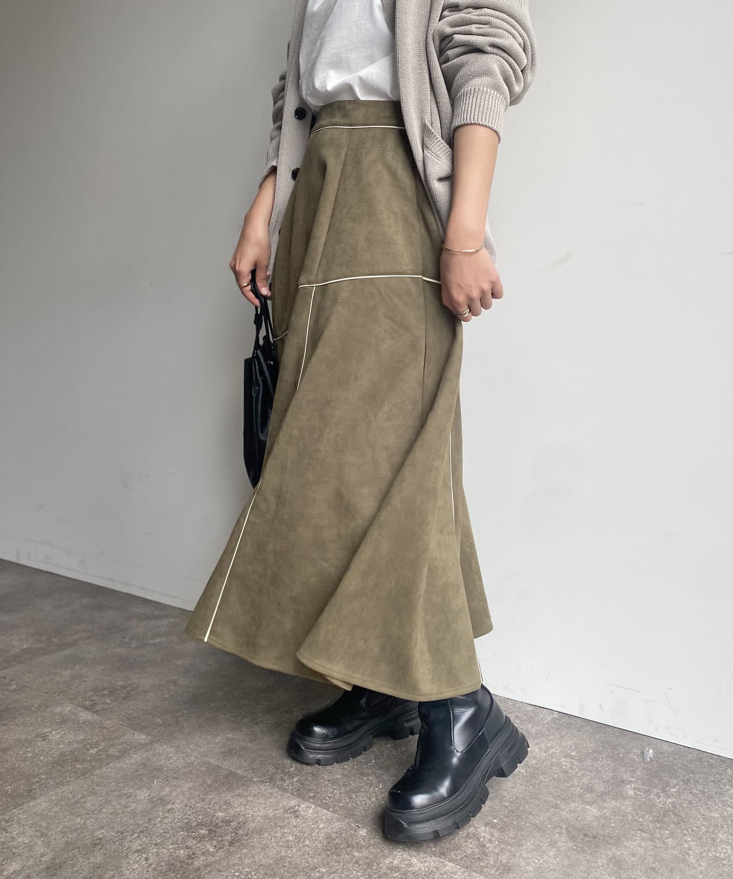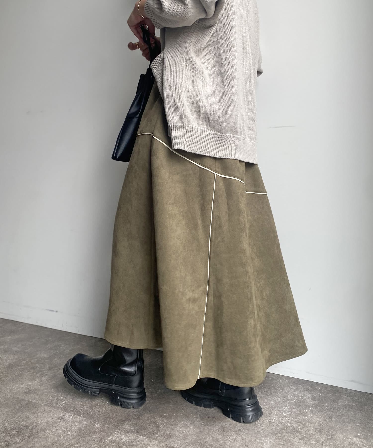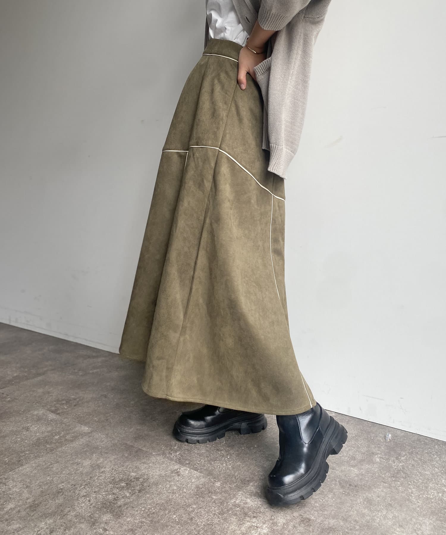 フェイクスエードの生地が季節感たっぷりのフレアスカート。
