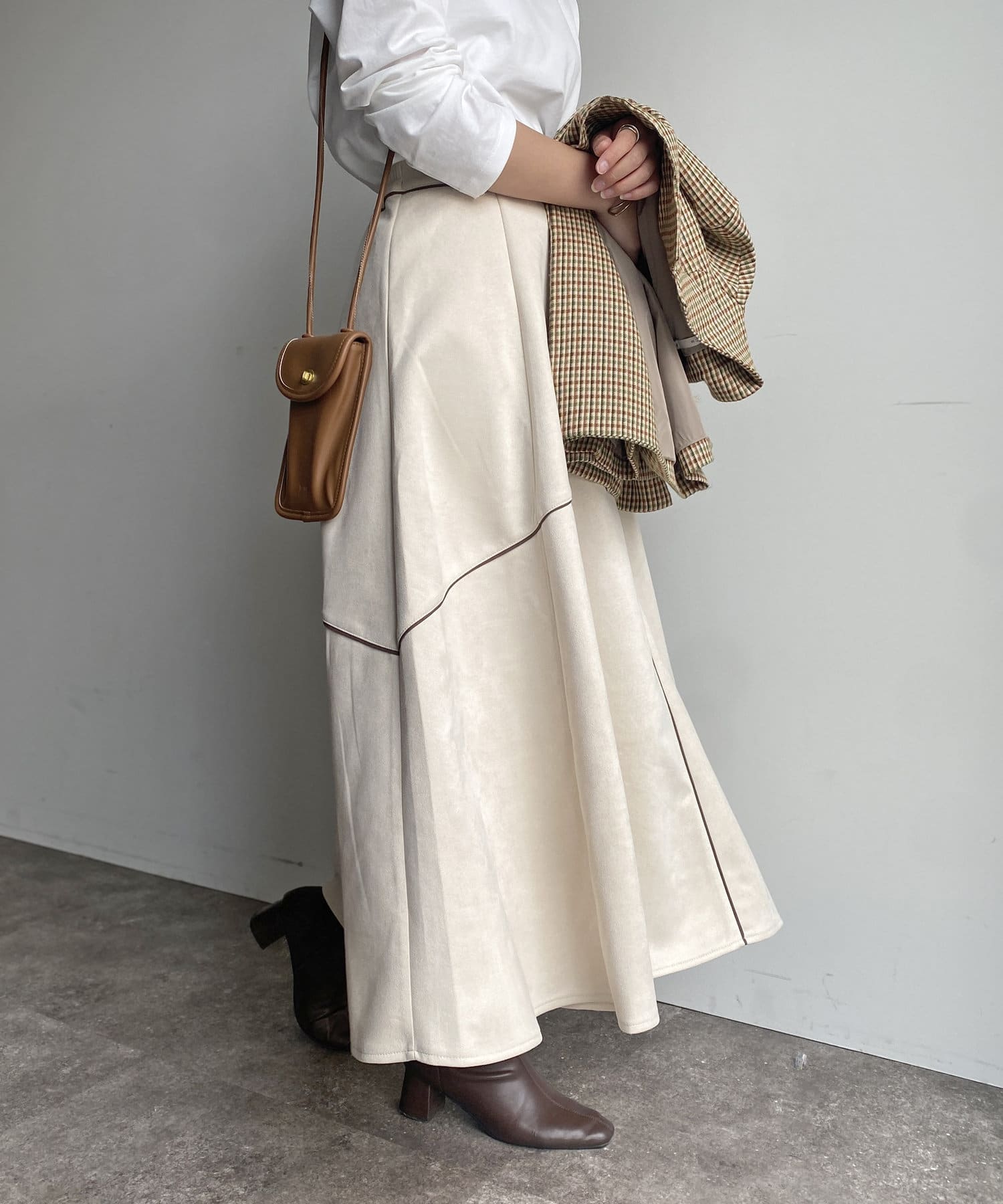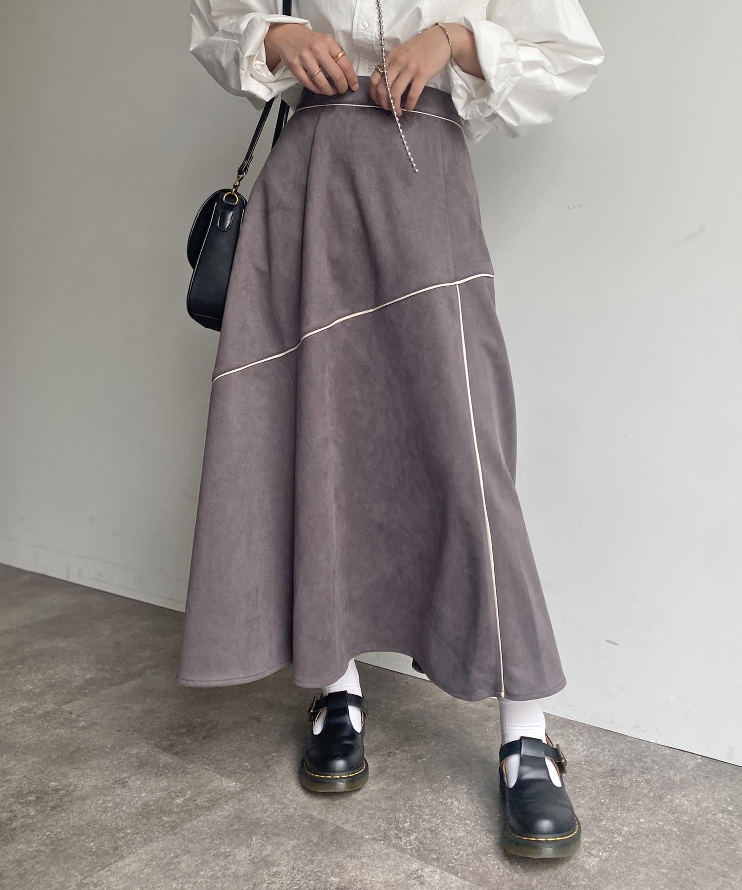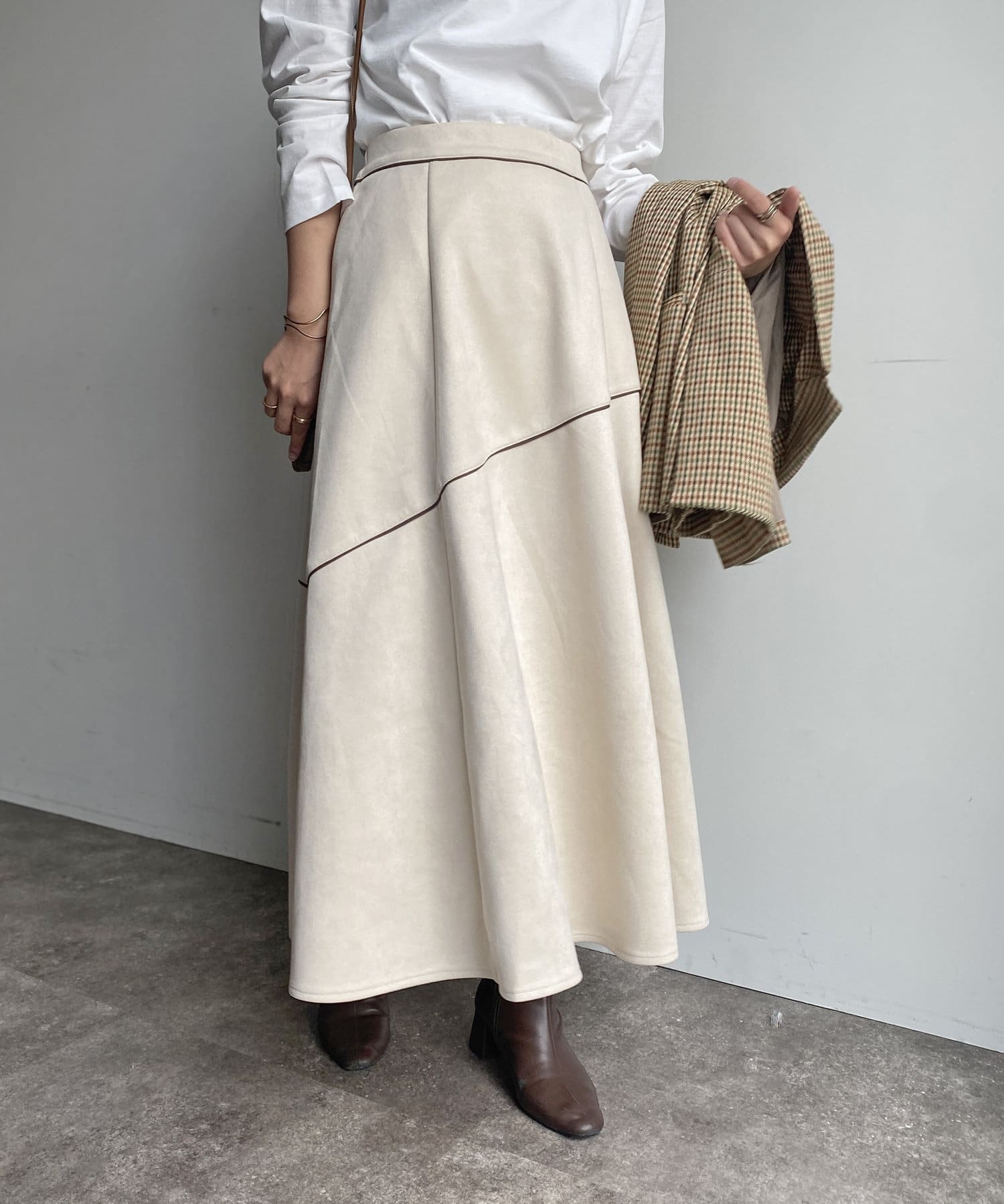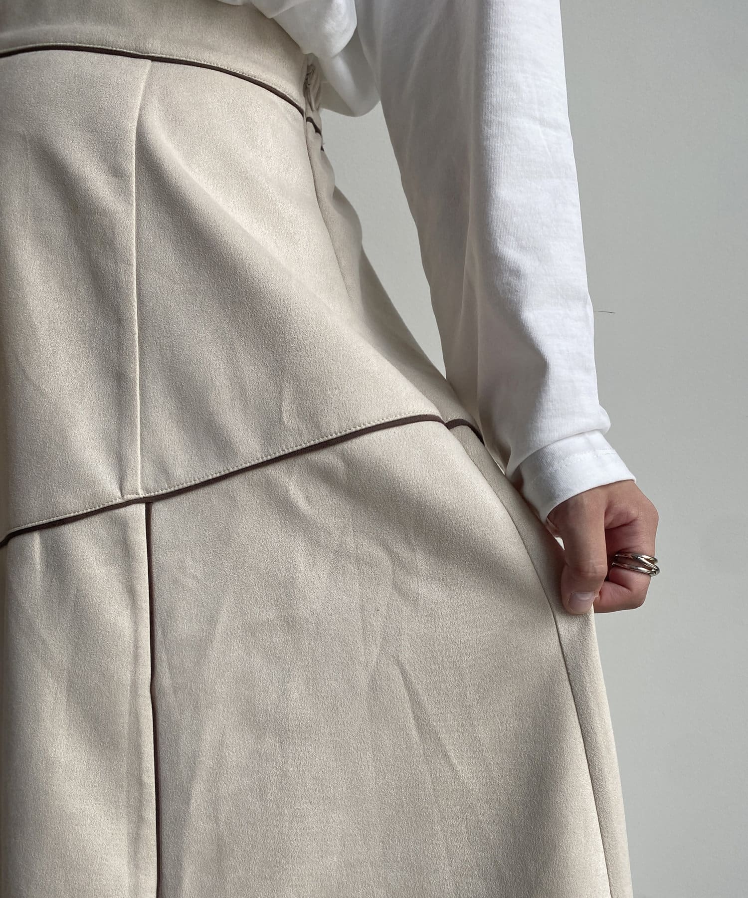 フェイクスエードの生地が季節感たっぷりのフレアスカート。