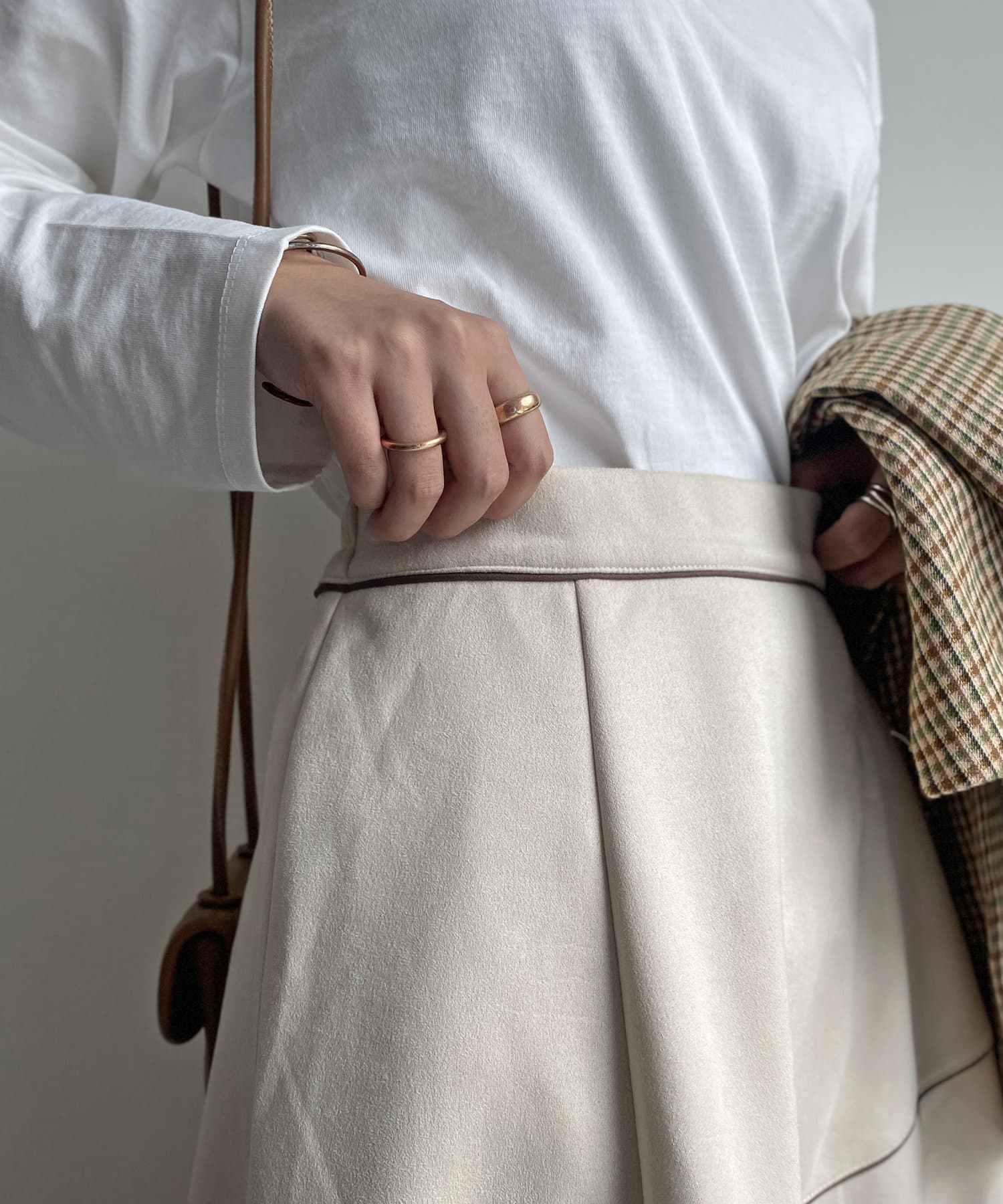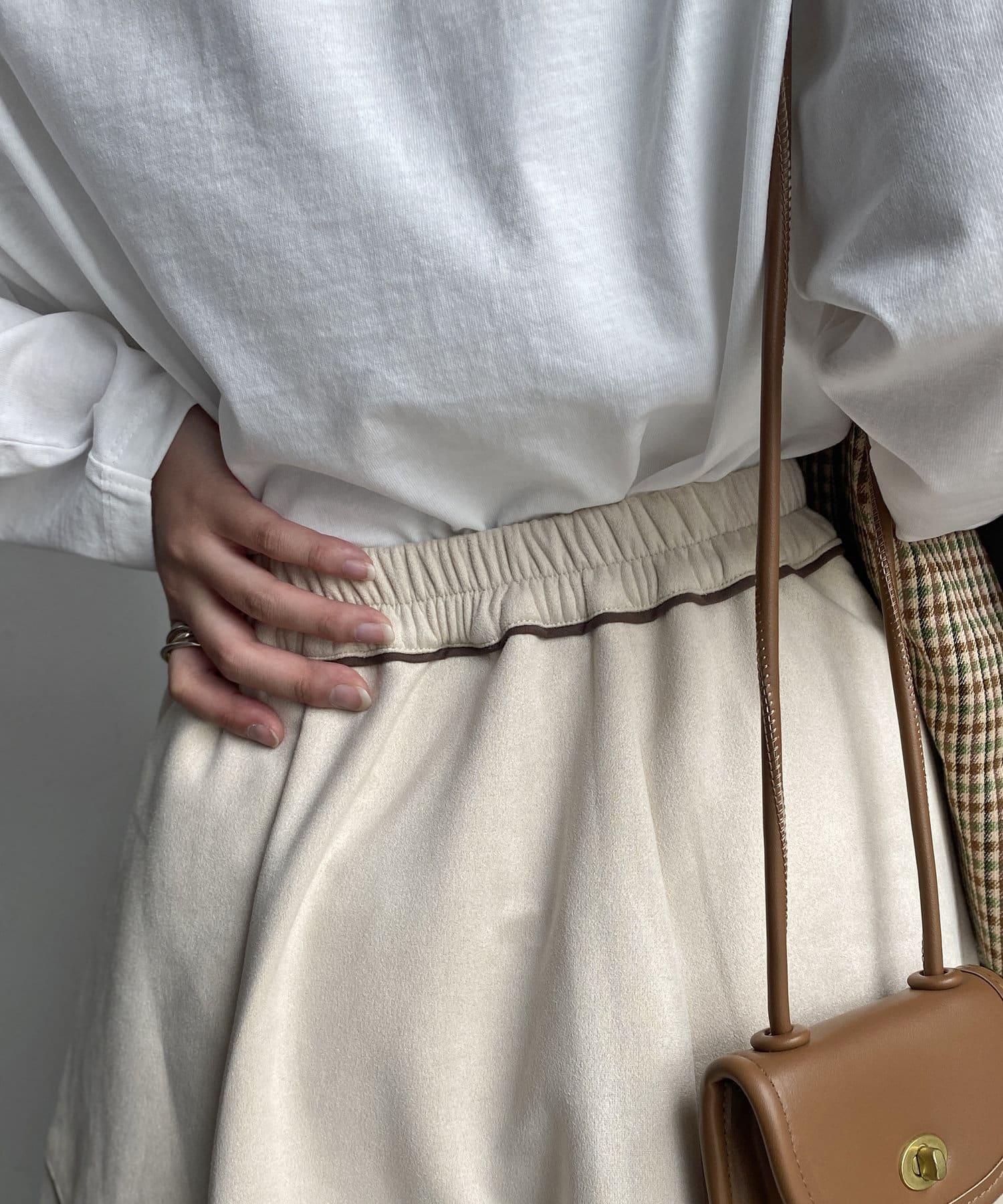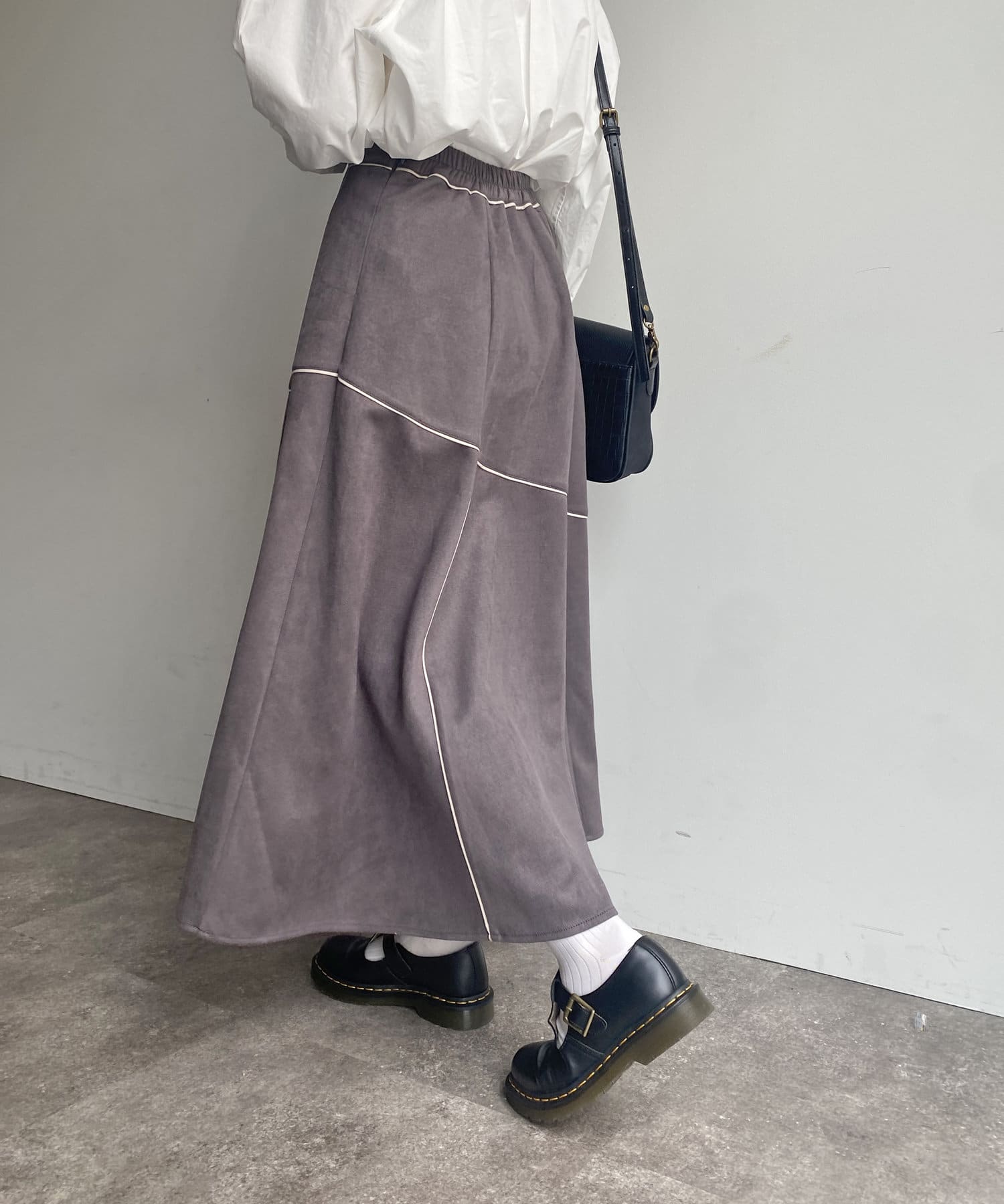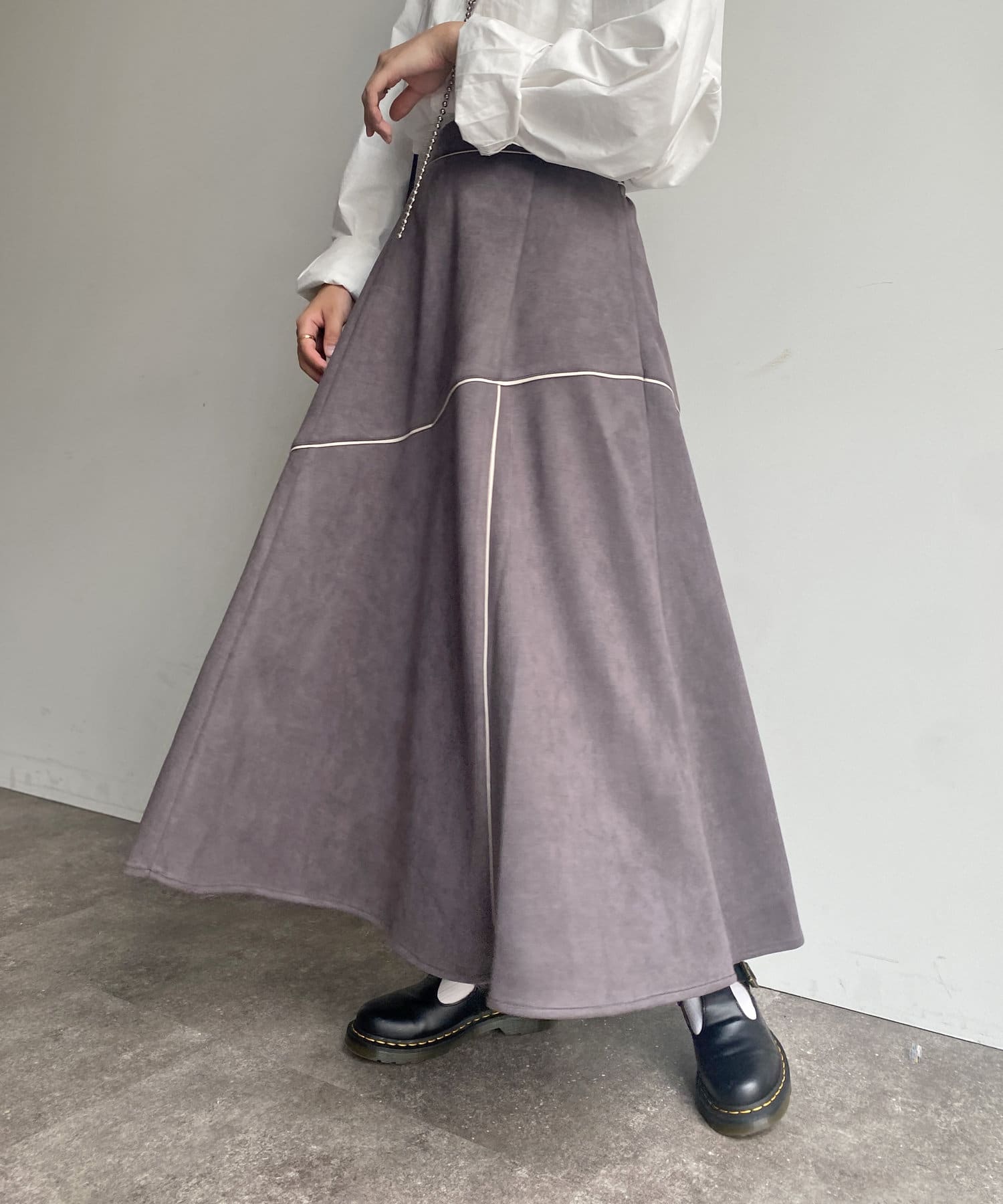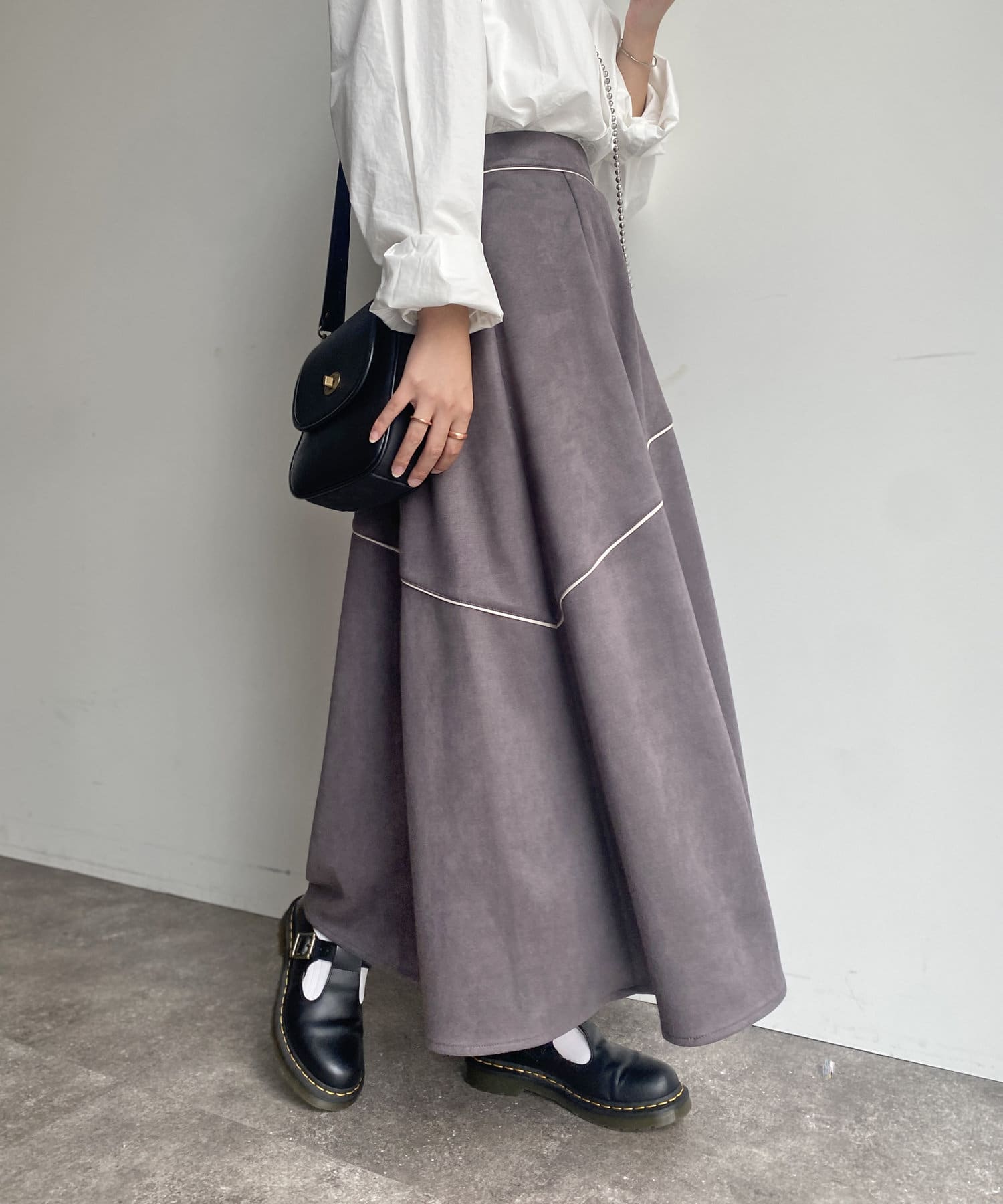 フェイクスエードの生地が季節感たっぷりのフレアスカート。