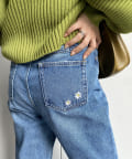 ヒップにデイジー刺繍があるのでトップスをタックインしてチラ見せするのがおすすめ◎