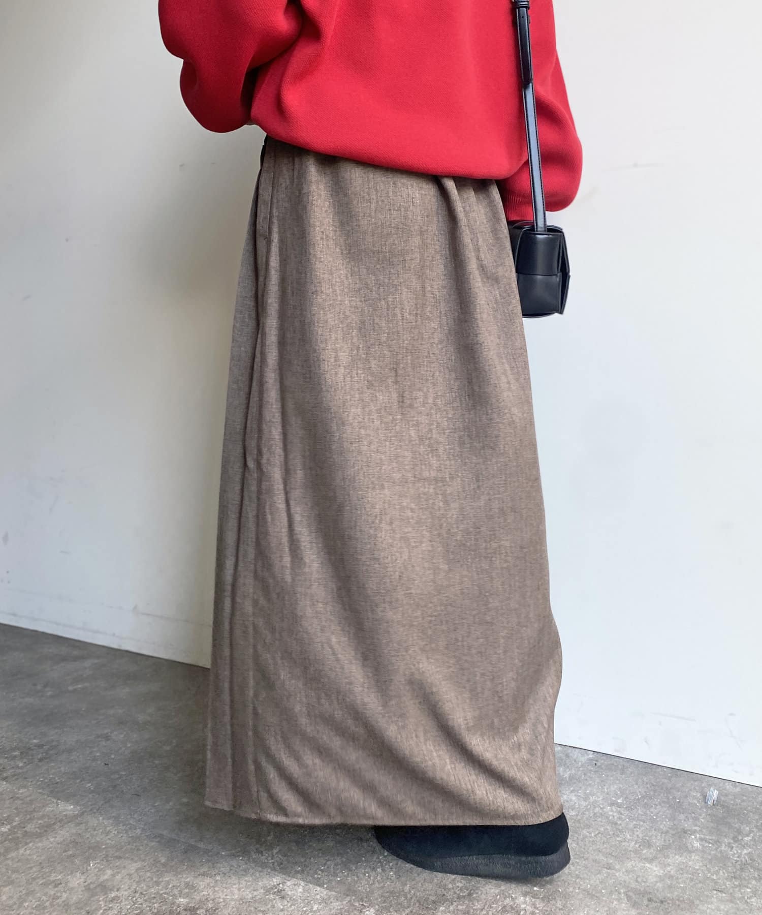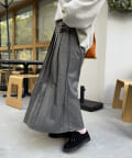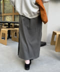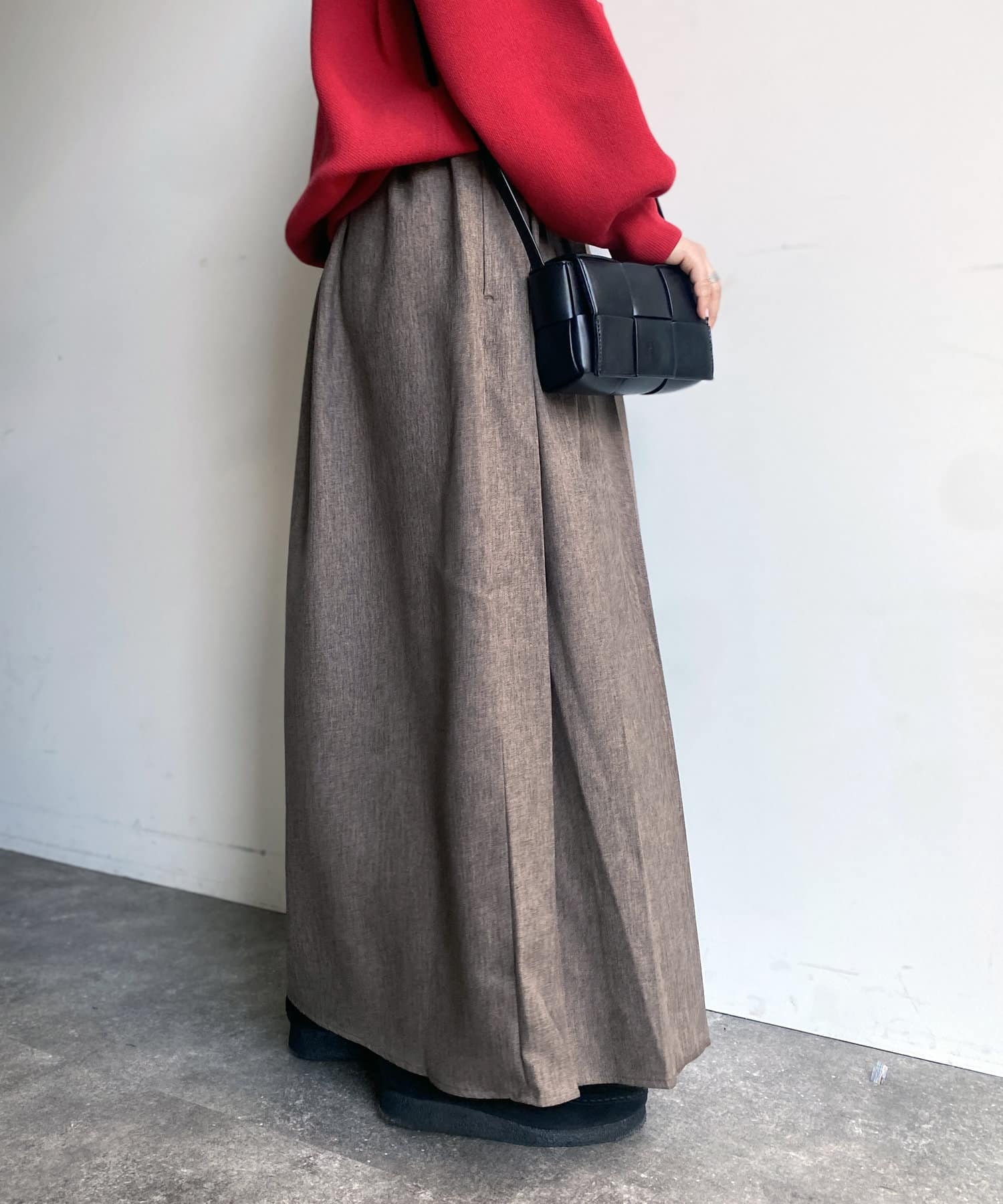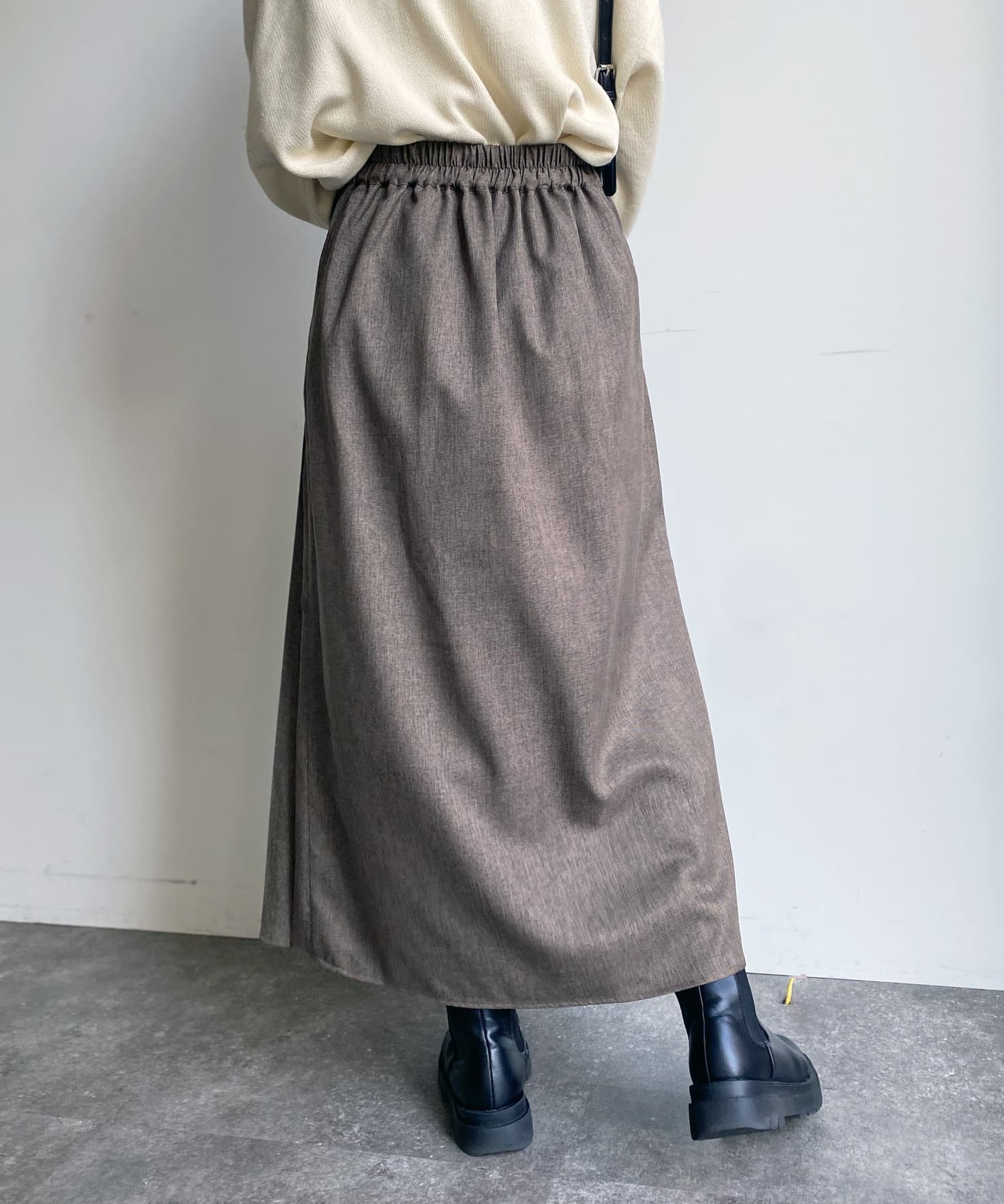 ハイウエストなので脚長効果も期待でき、下半身のラインを拾いにくいシルエットなのも魅力的なロングスカートです。