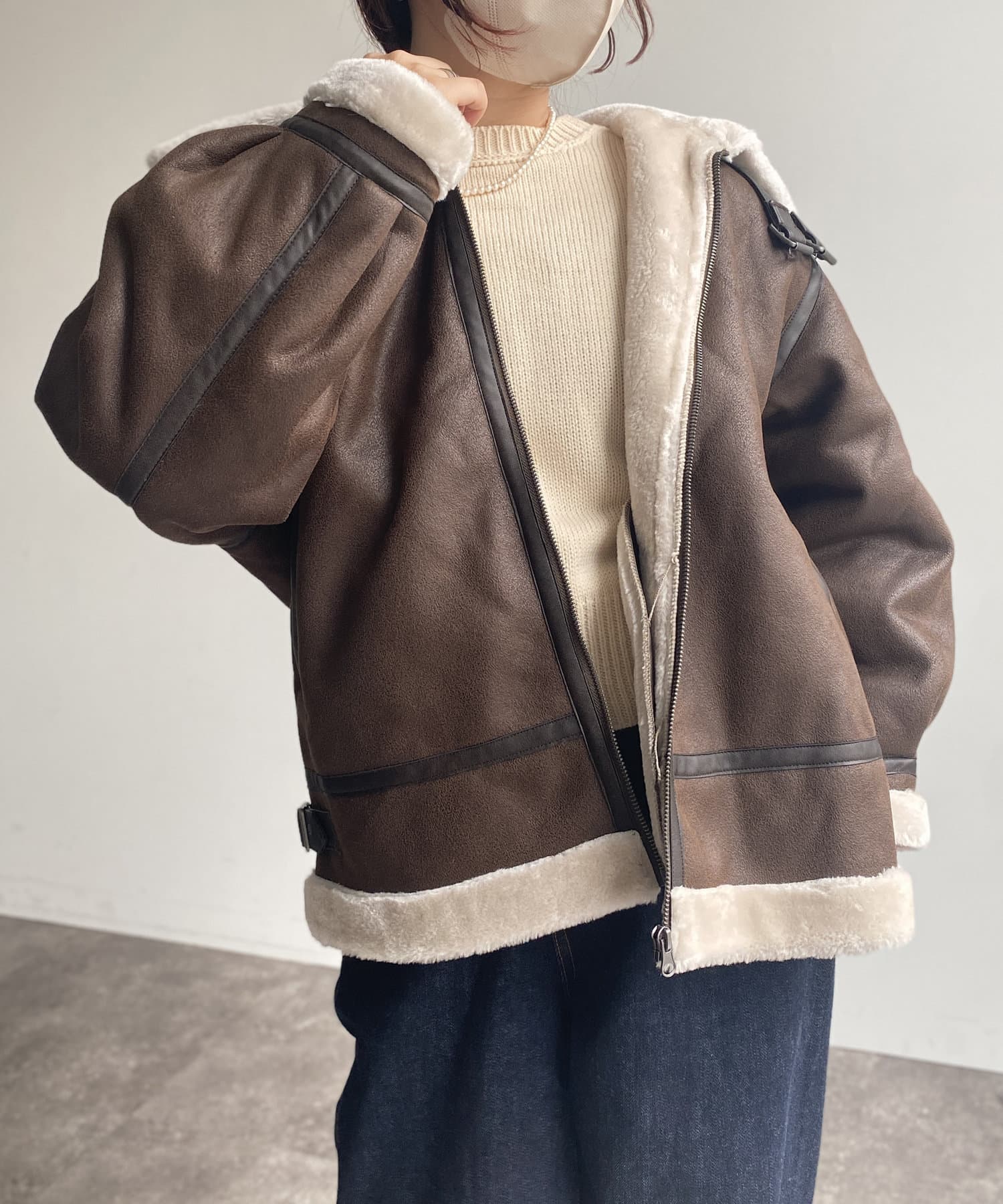 ハイネック仕様にもなるので風を通さず、中に着こみやすいサイズ感でスタイリングを楽しめる万能アウターです。