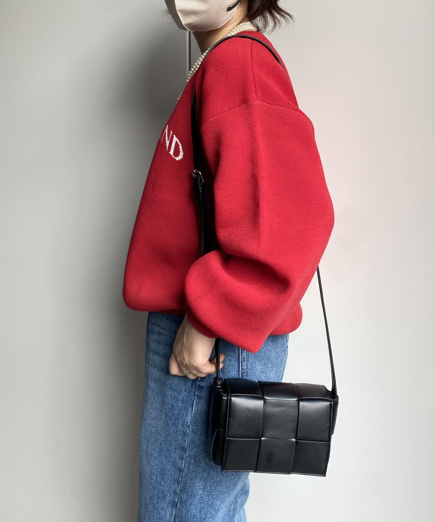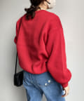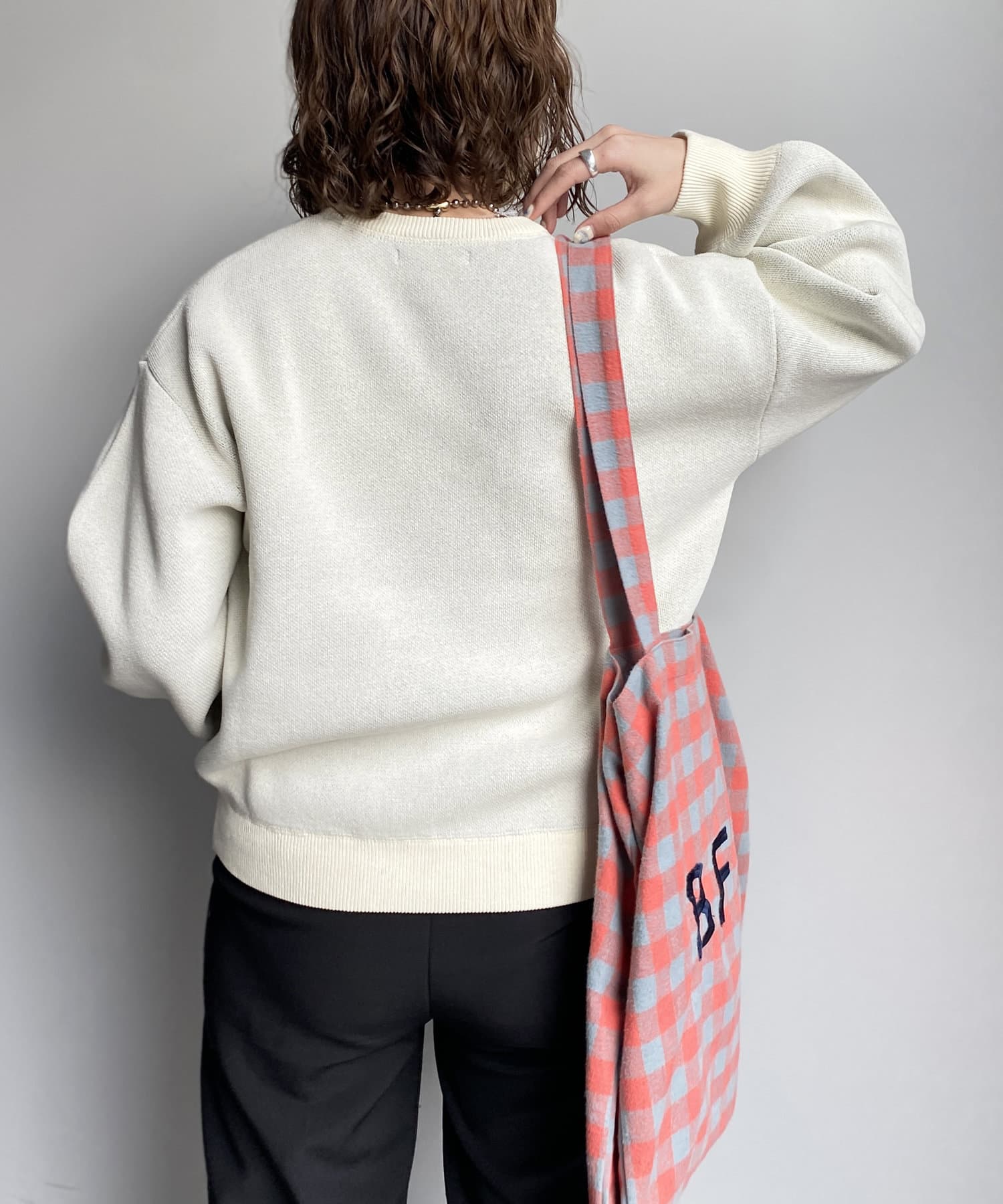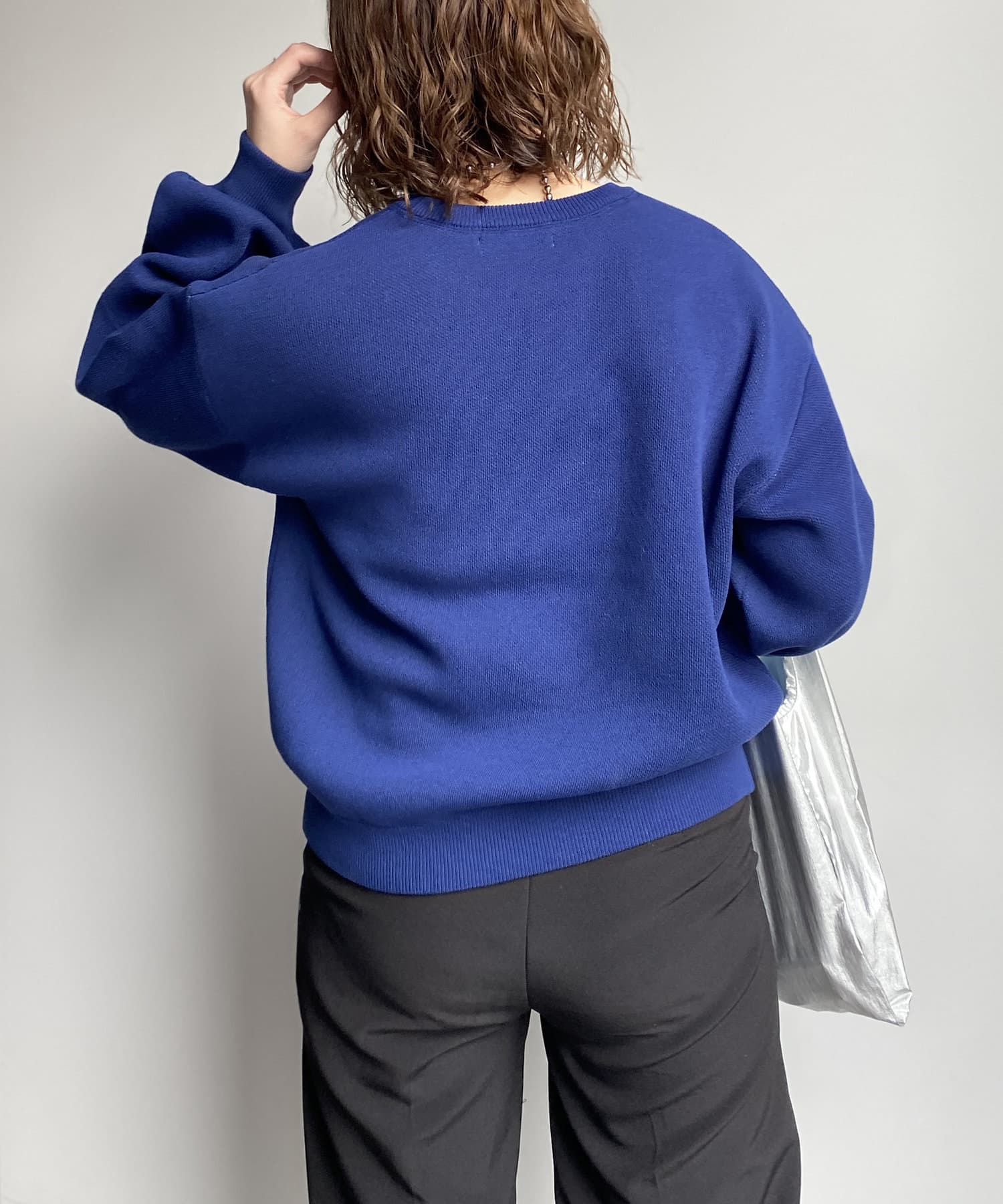 カジュアルすぎない、シンプルなロゴデザインで、幅広くスタイリングに馴染むニットプルオーバー
